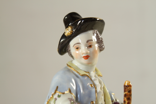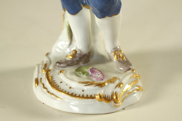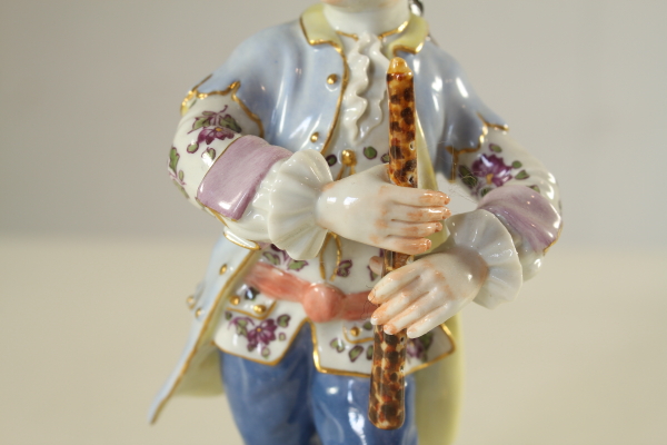 Pair of figures, two young musicians with violin and flute polychrome porcelain, Meissen manufactory. Factory brand under the base. The price is for sale in pairs (cod. ANTOGG0000424 and cod. ANTOGG0000405).