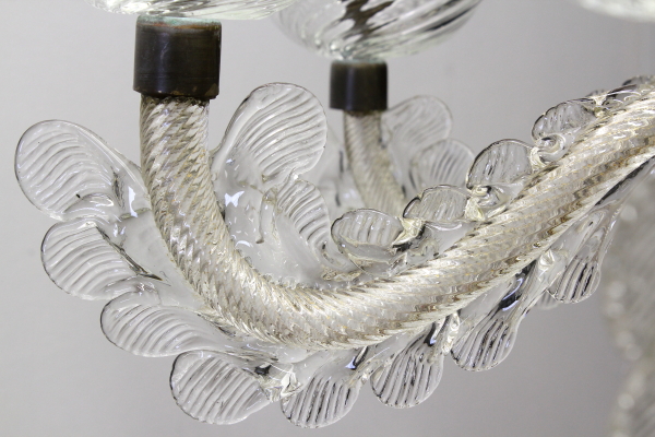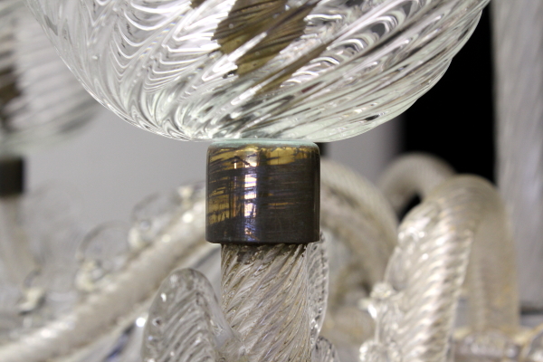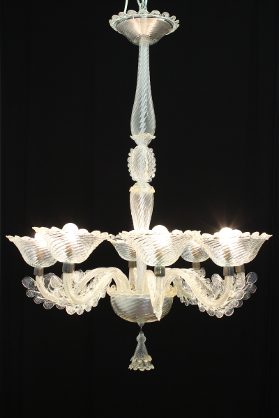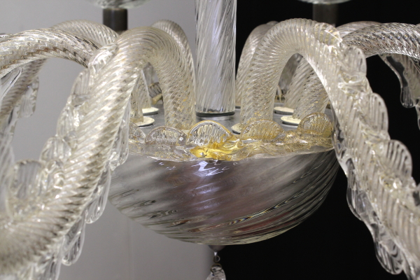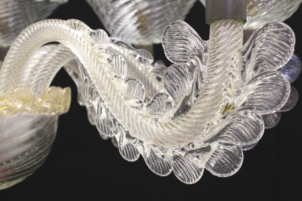 Venetian chandelier 8 transparent arms gold. handmade Crystal leaves arms. Including 8 clear 40W E14 bulbs.