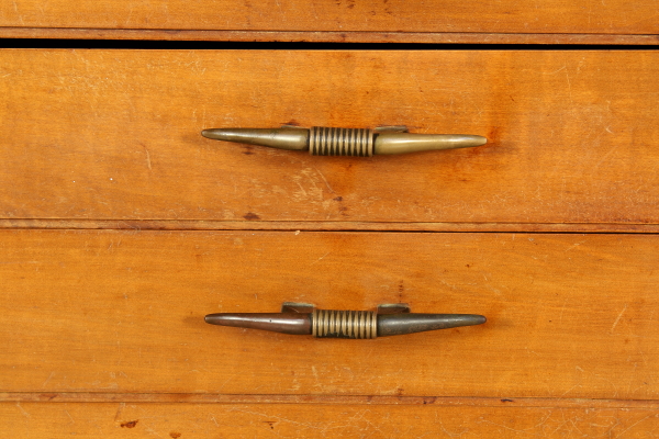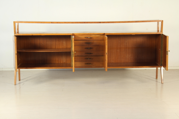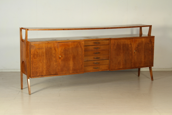 Mobile buffet 50 years; Maple veneered wood, brass handles. Fair condition, has some signs of wear.