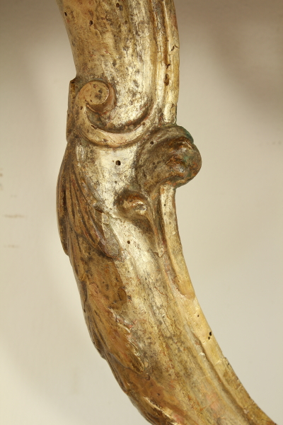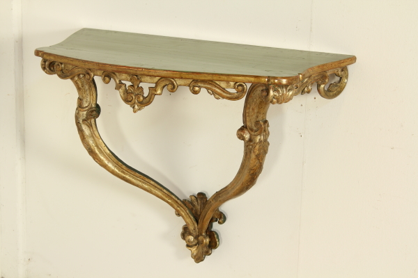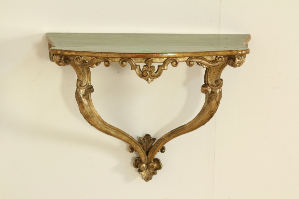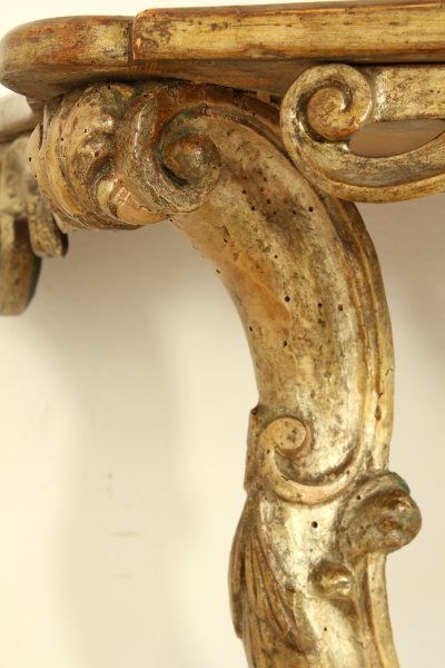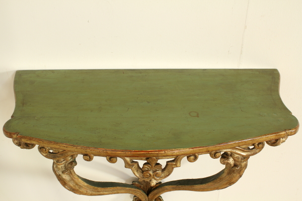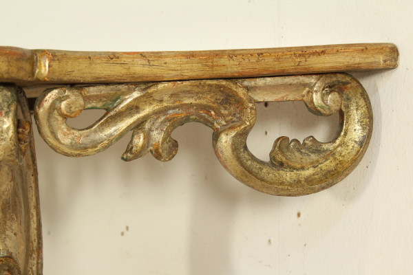 Drip line console from them carved legs. Lacquered plan and shaped carved floor below frame. Golden mecca. Assembled with old parts.