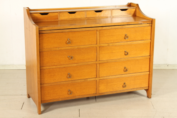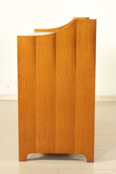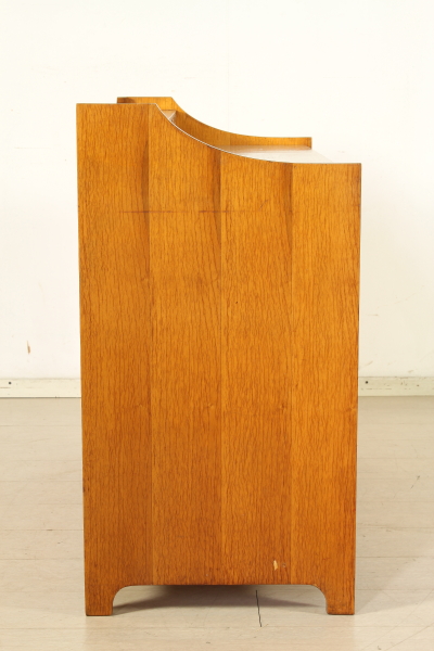 40 years, chest of drawers with folding desk; Walnut veneered wood desk covered with formica. Good condition, shows little signs of wear. Depth measurement with open 80 desk.