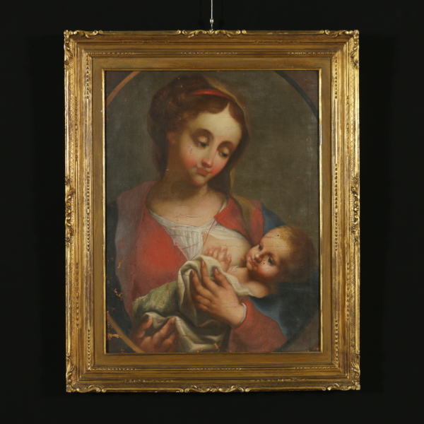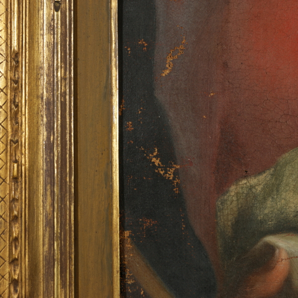 Oil on canvas. Original not framed, the canvas was stretched out on a wooden panel. Unrestored. In frame.
