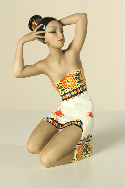 Ceramic female figure. The strong resemblance models Lenci derives from the fact that the Potter Windfall worked as plasticatrice and Decorator at the Lal, founding chased, in the early 30 's, his own laboratory.