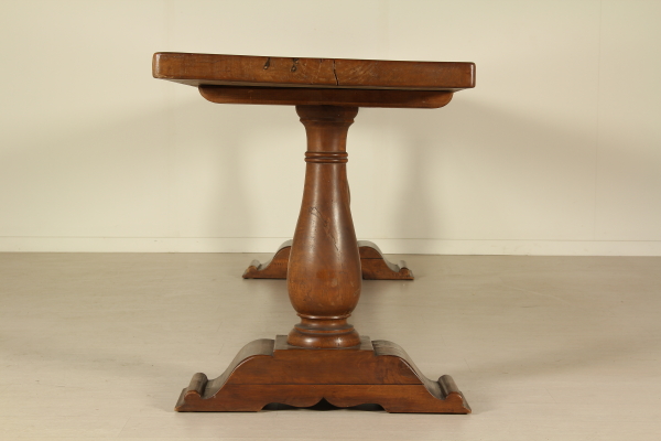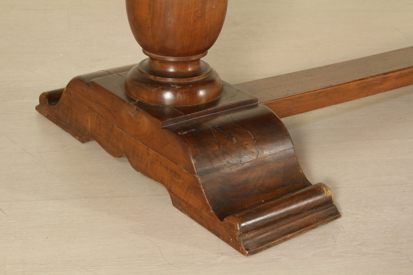 Scorniciato plan consists of an entire ancient Walnut axis. The base of the last century has couple of balusters with ciabatta and cross.