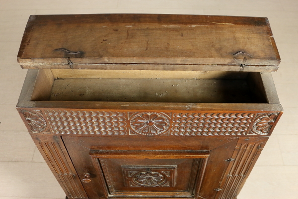 Knee Pad flap opening. Richly carved front door. Floor opening.