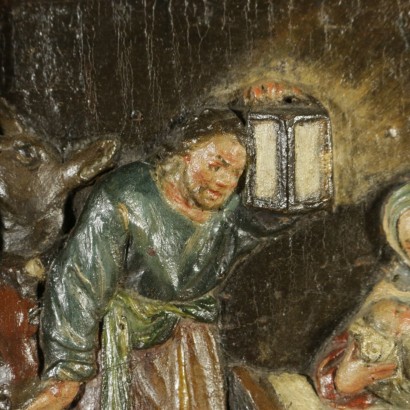 La natividad, el bajorrelieve tallado en madera