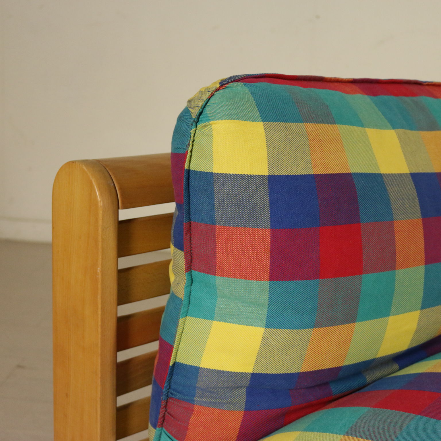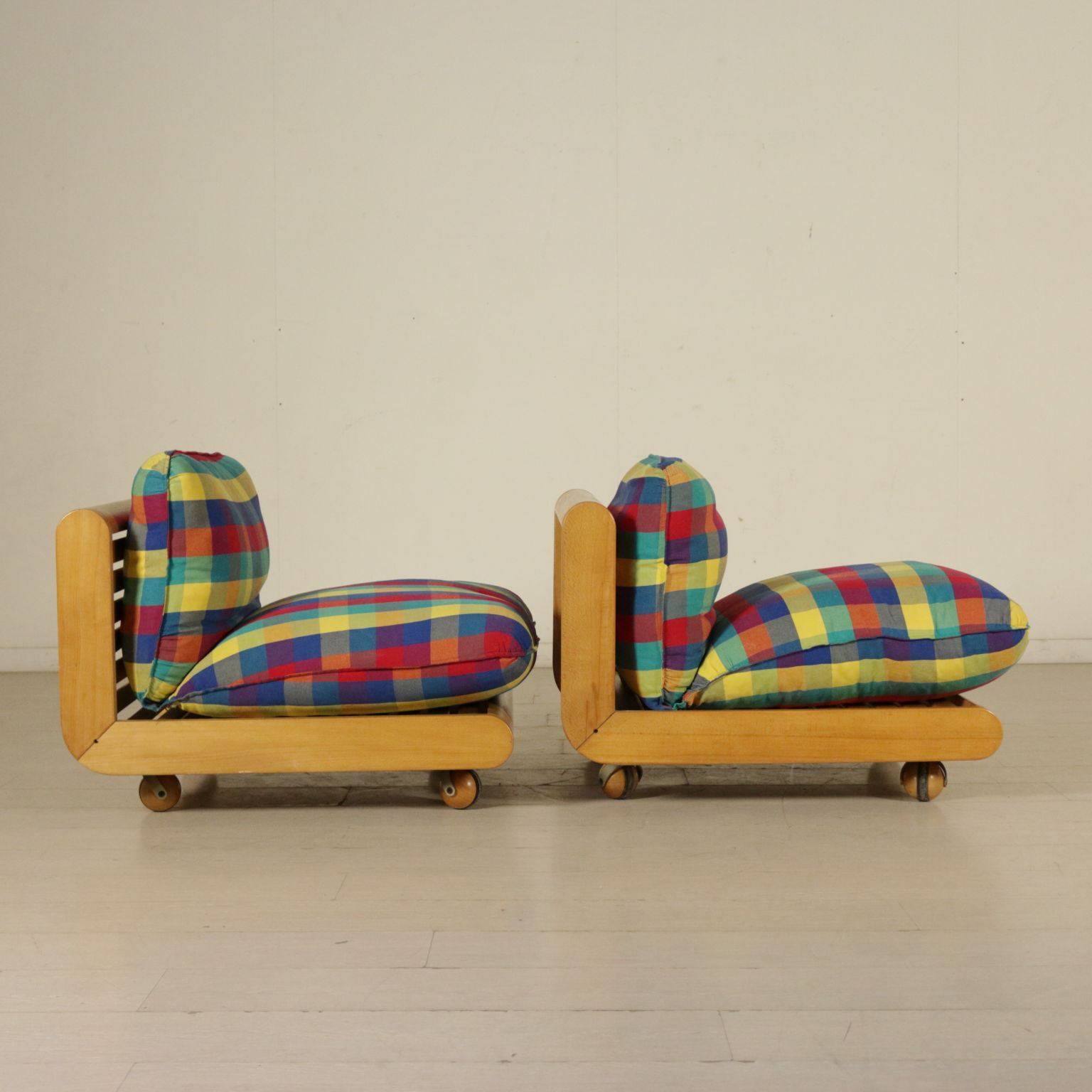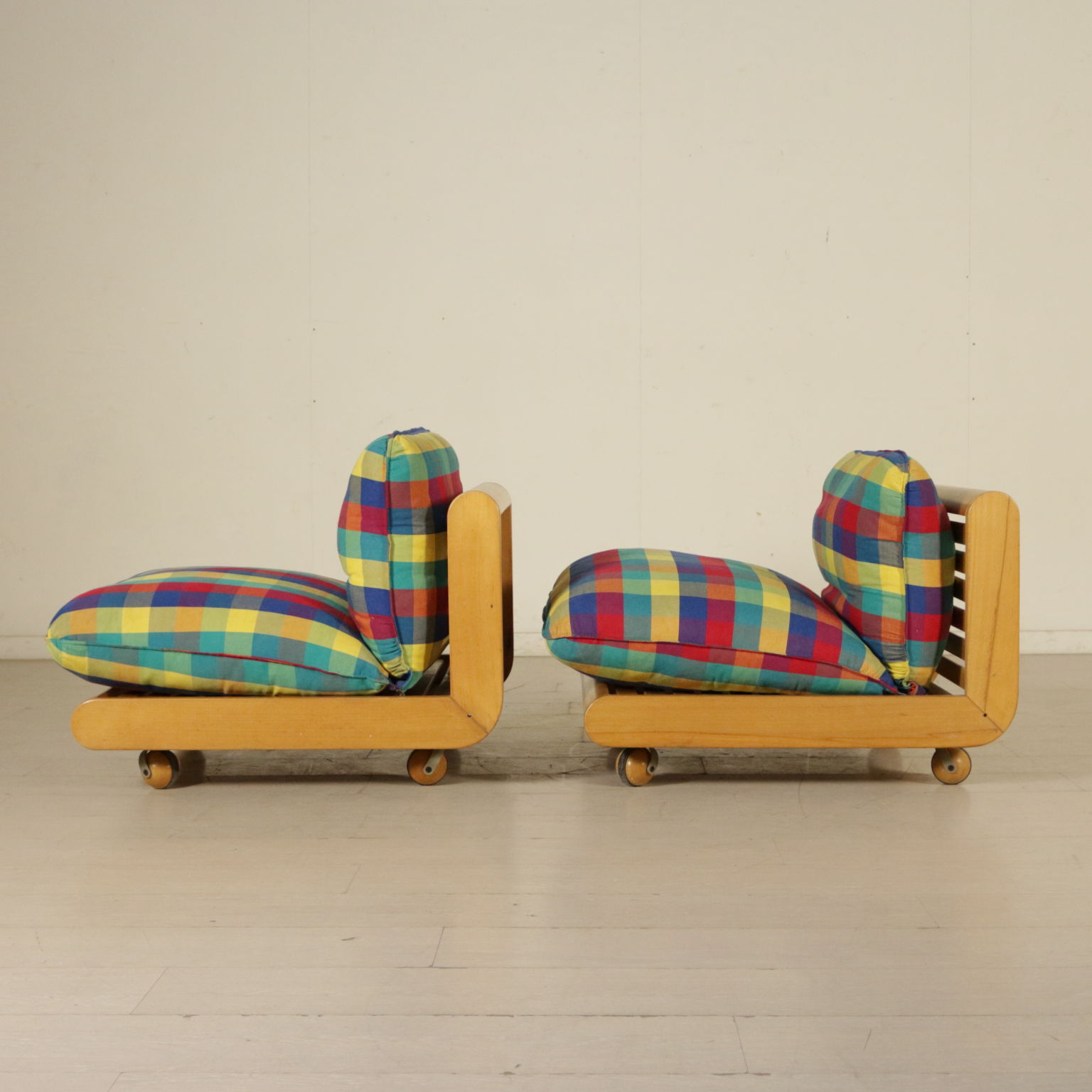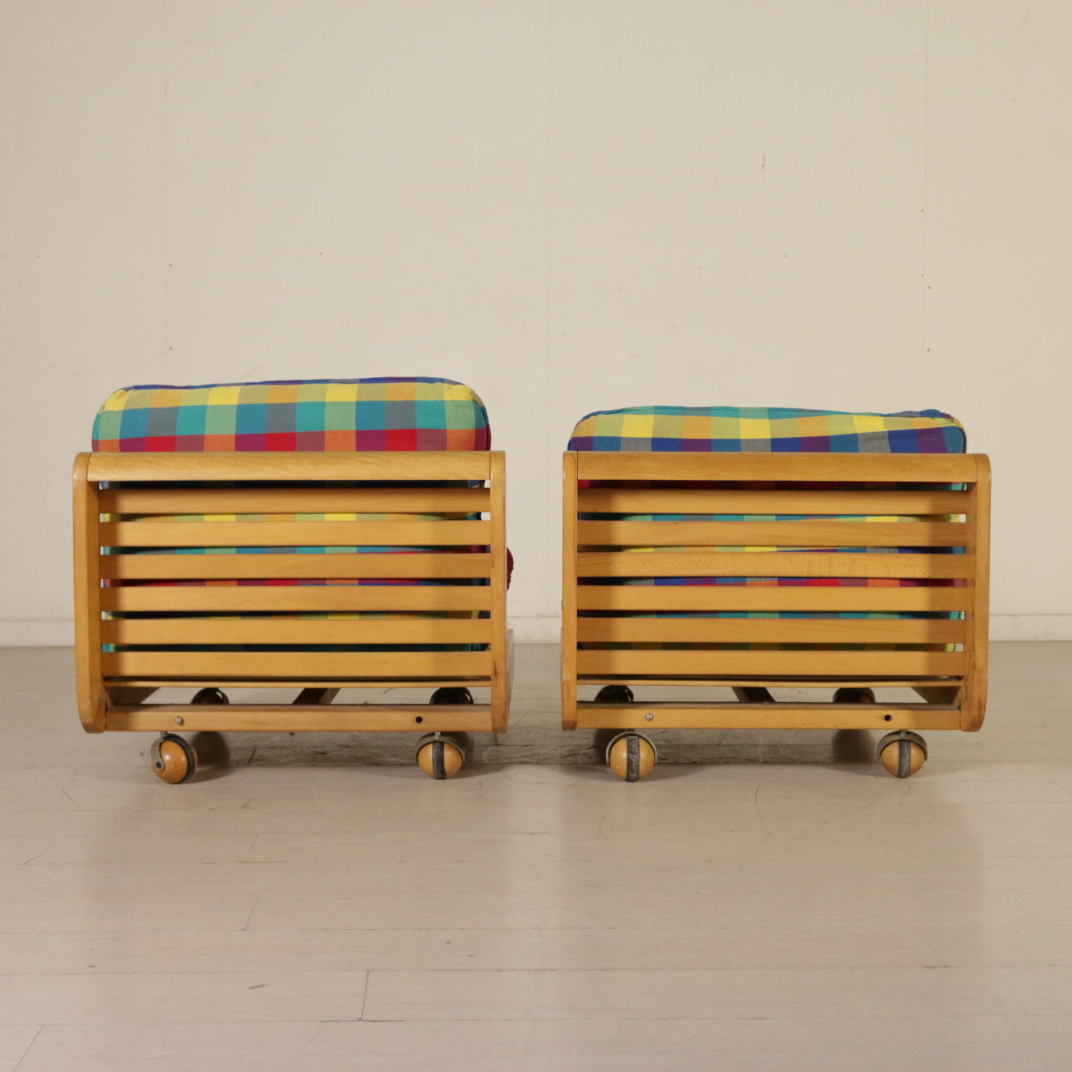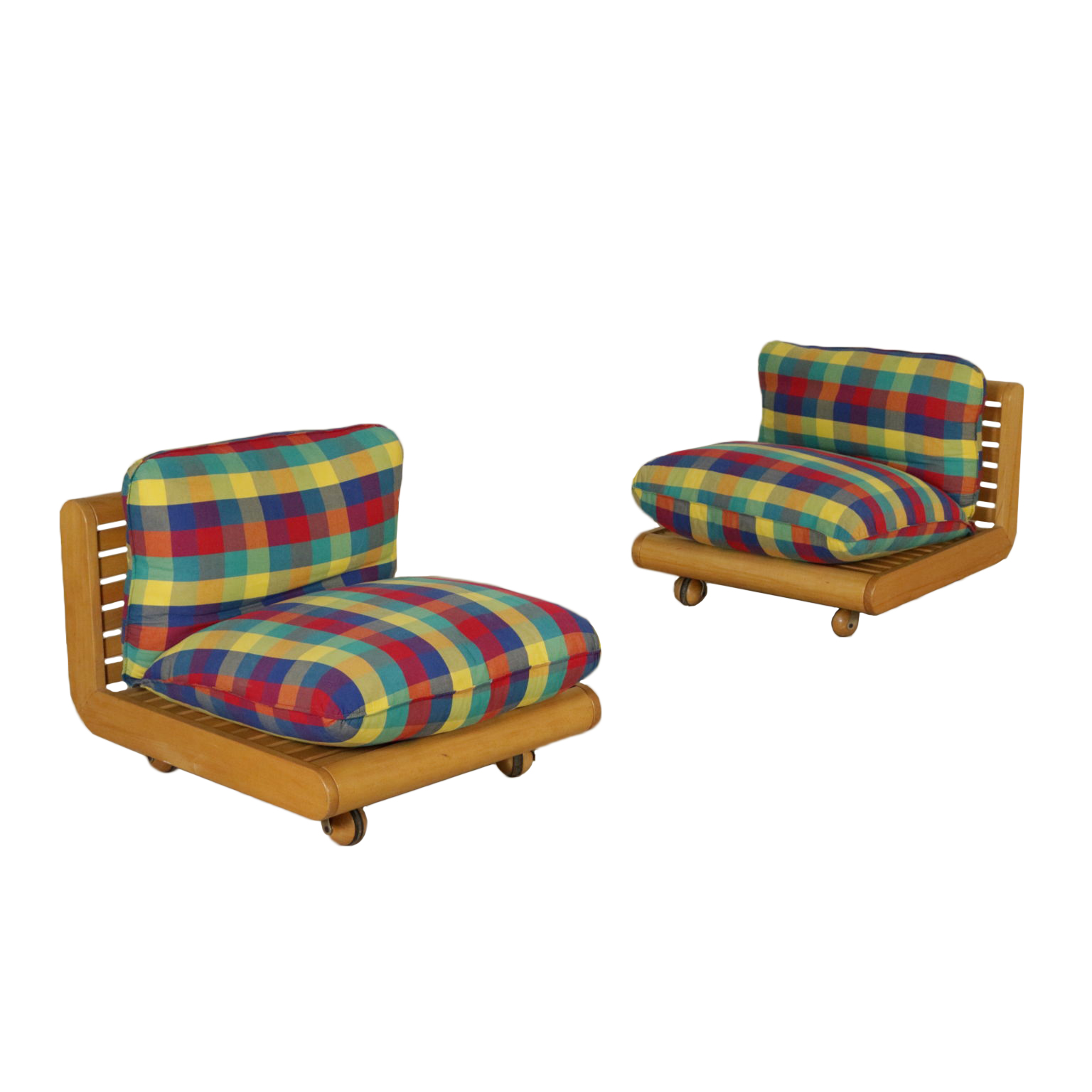 Par de sillones, de madera de haya, tapizado de espuma, tela de tapicería.