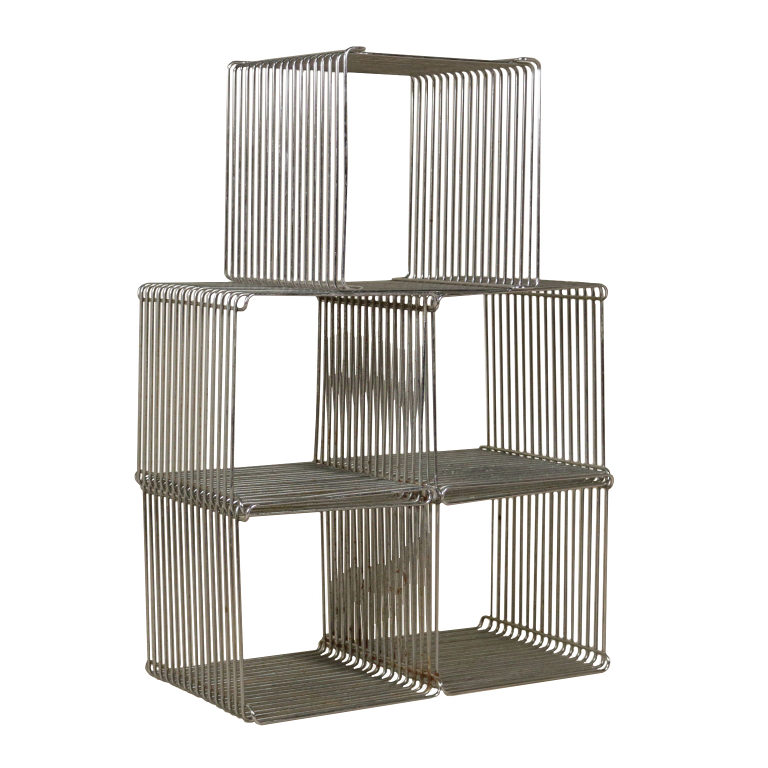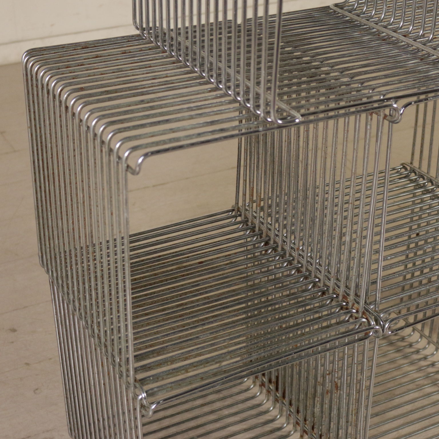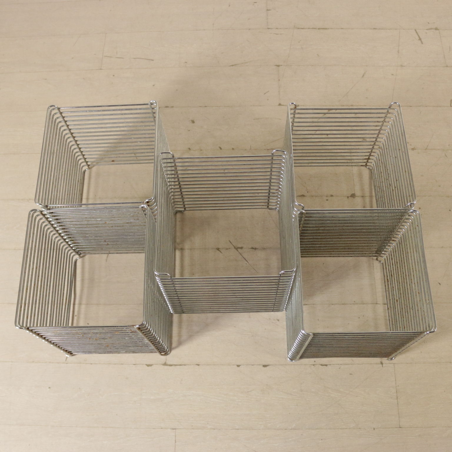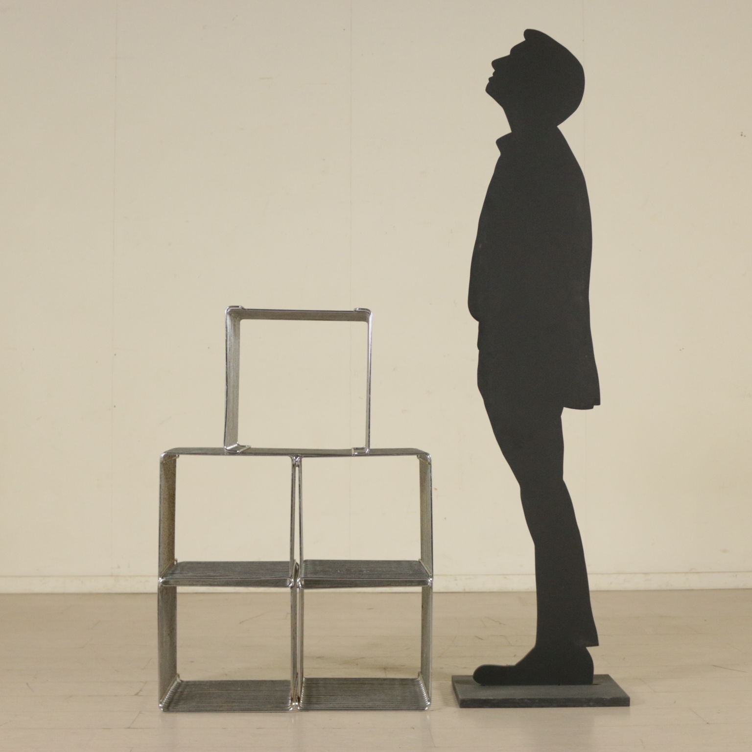 El grupo de elementos modulares, bibliotecas contenedores en metal cromado.