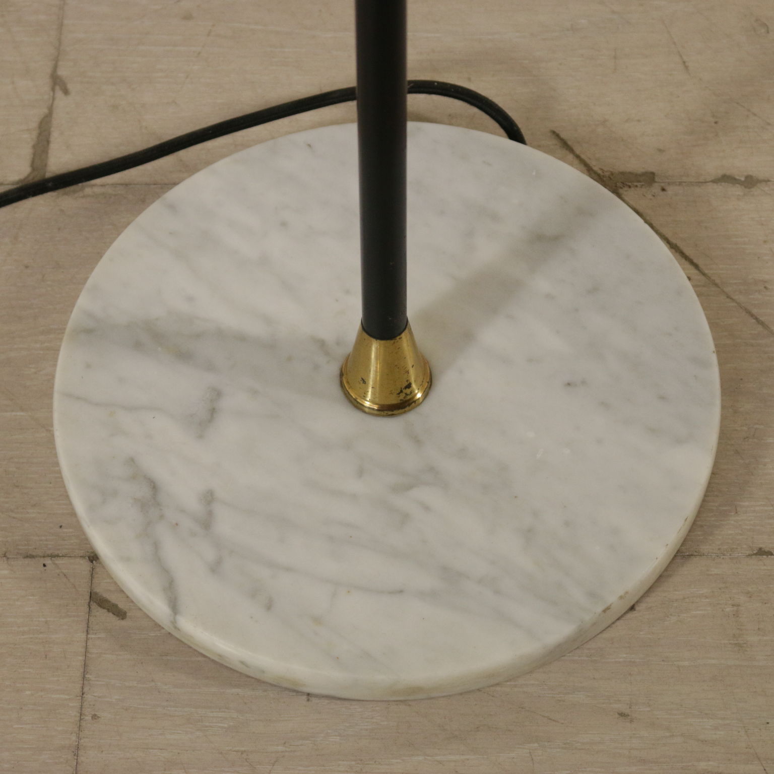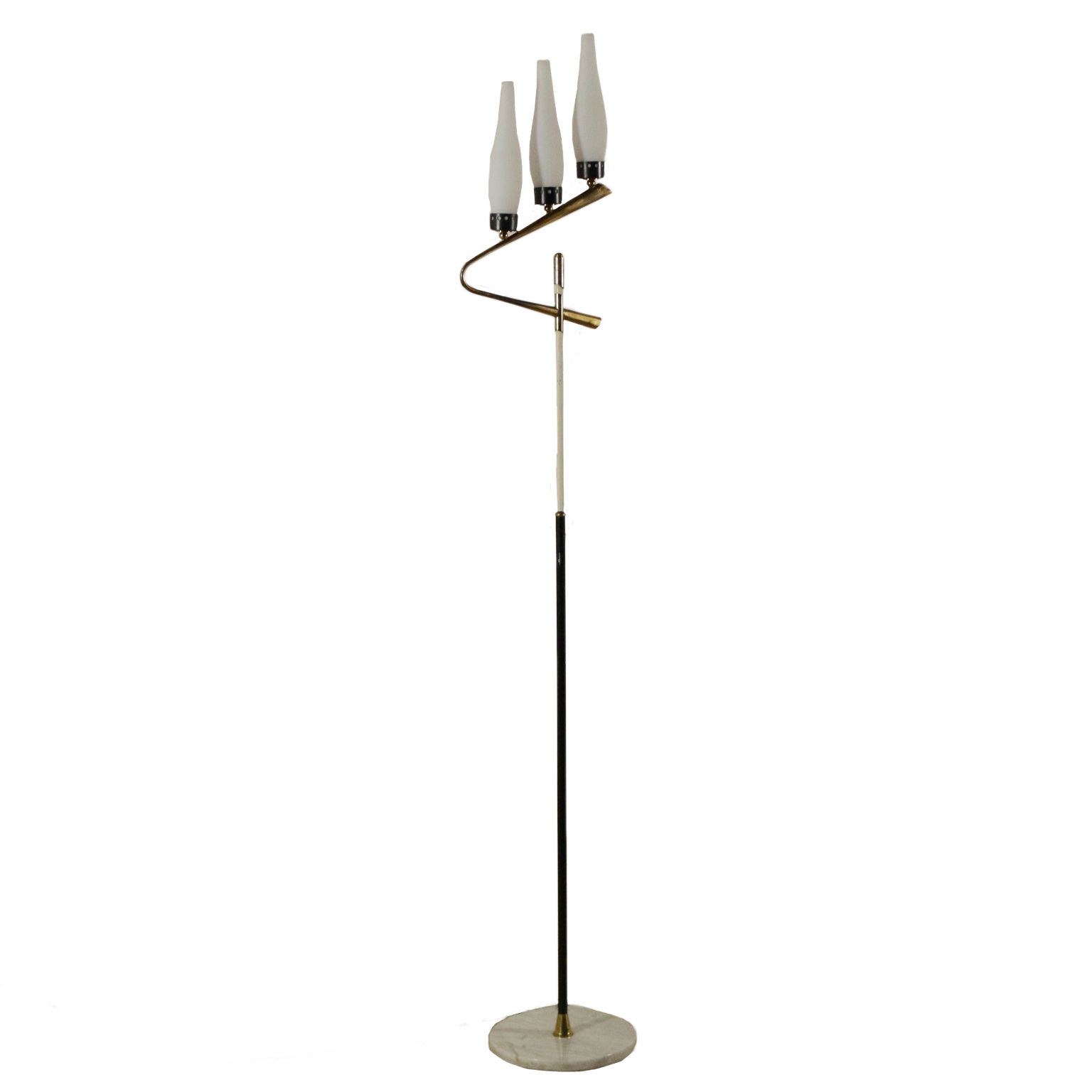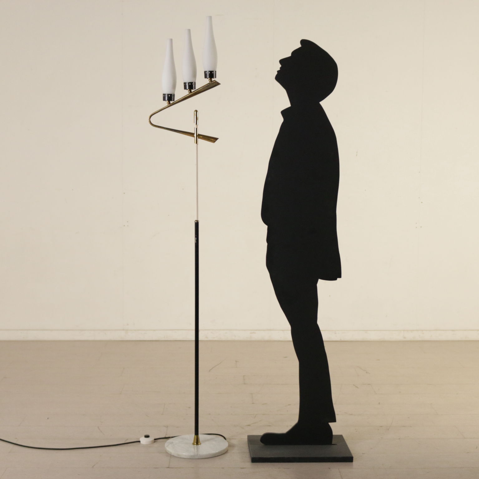 Lámpara de piso; base de mármol, metal, latón, opalina de vidrio.