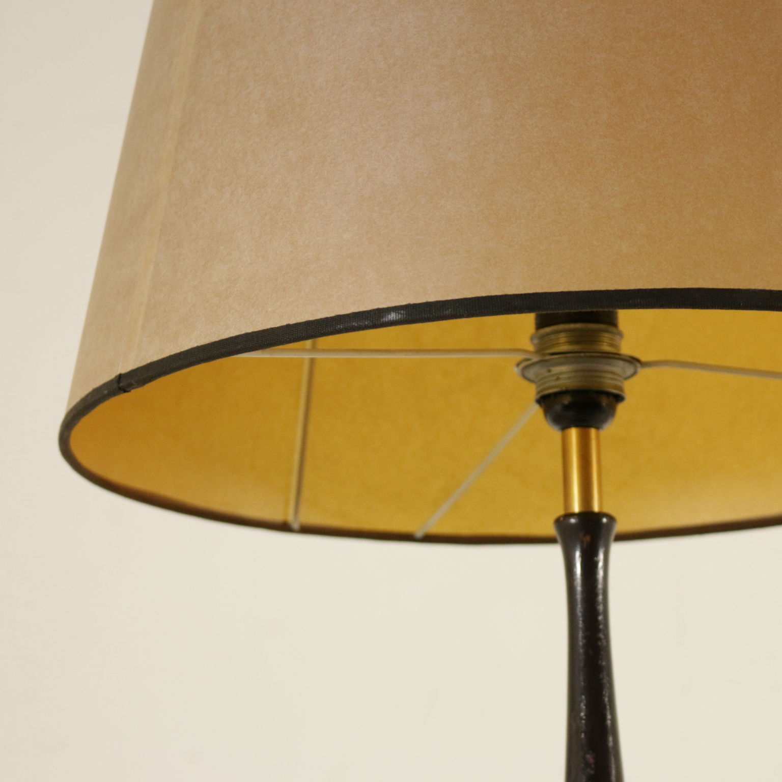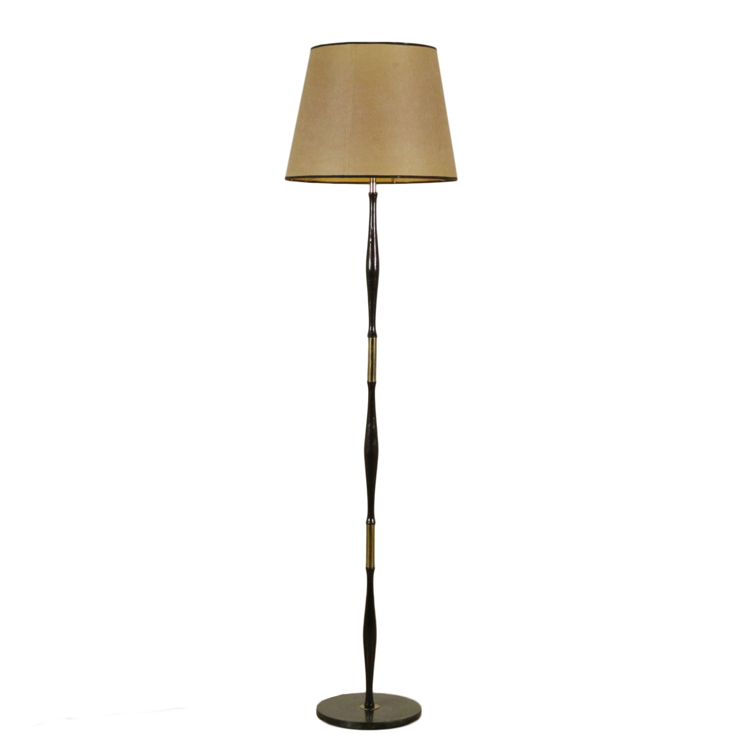 Lámpara de piso, la madera manchada de ébano, de bronce, el mármol y el papel de la sombra.