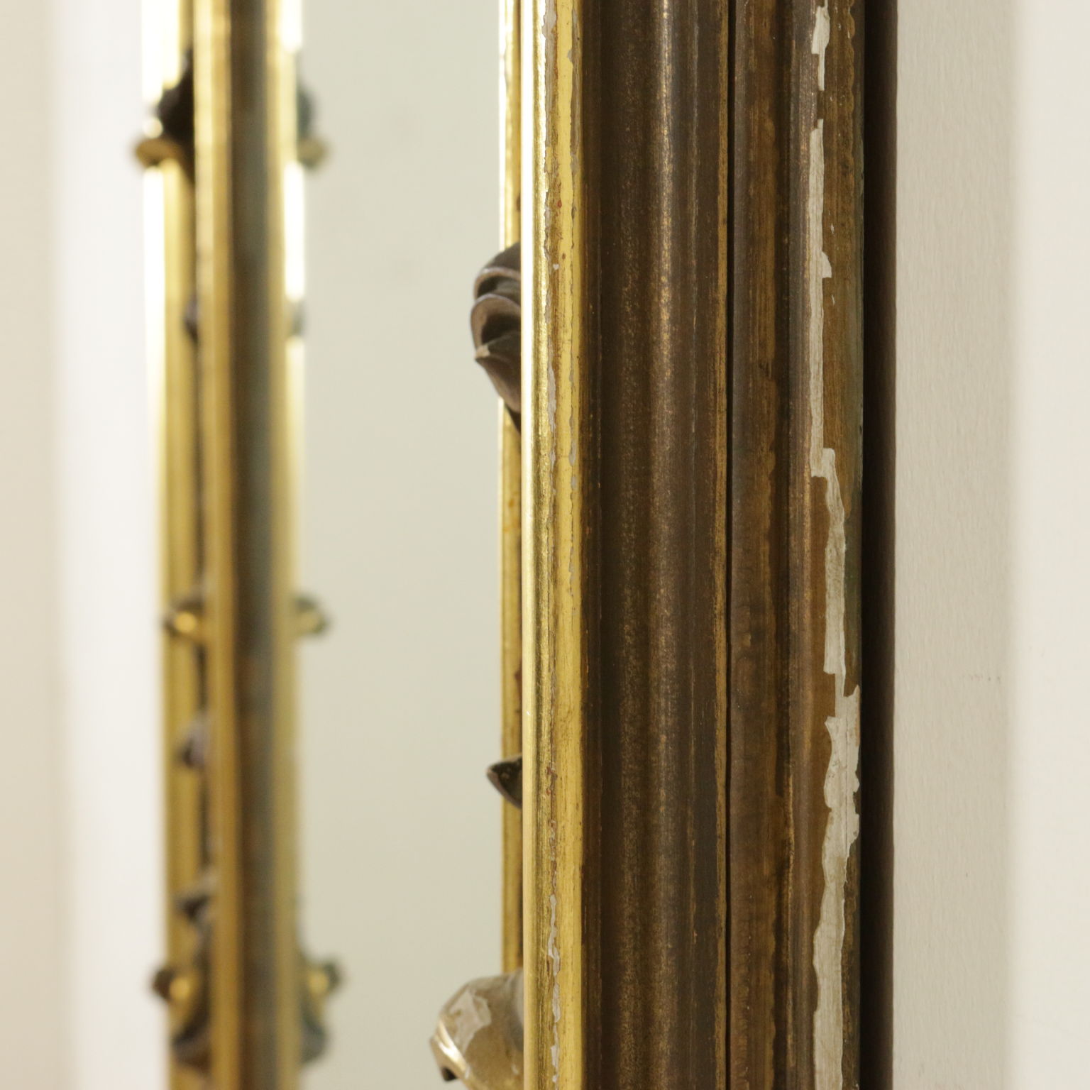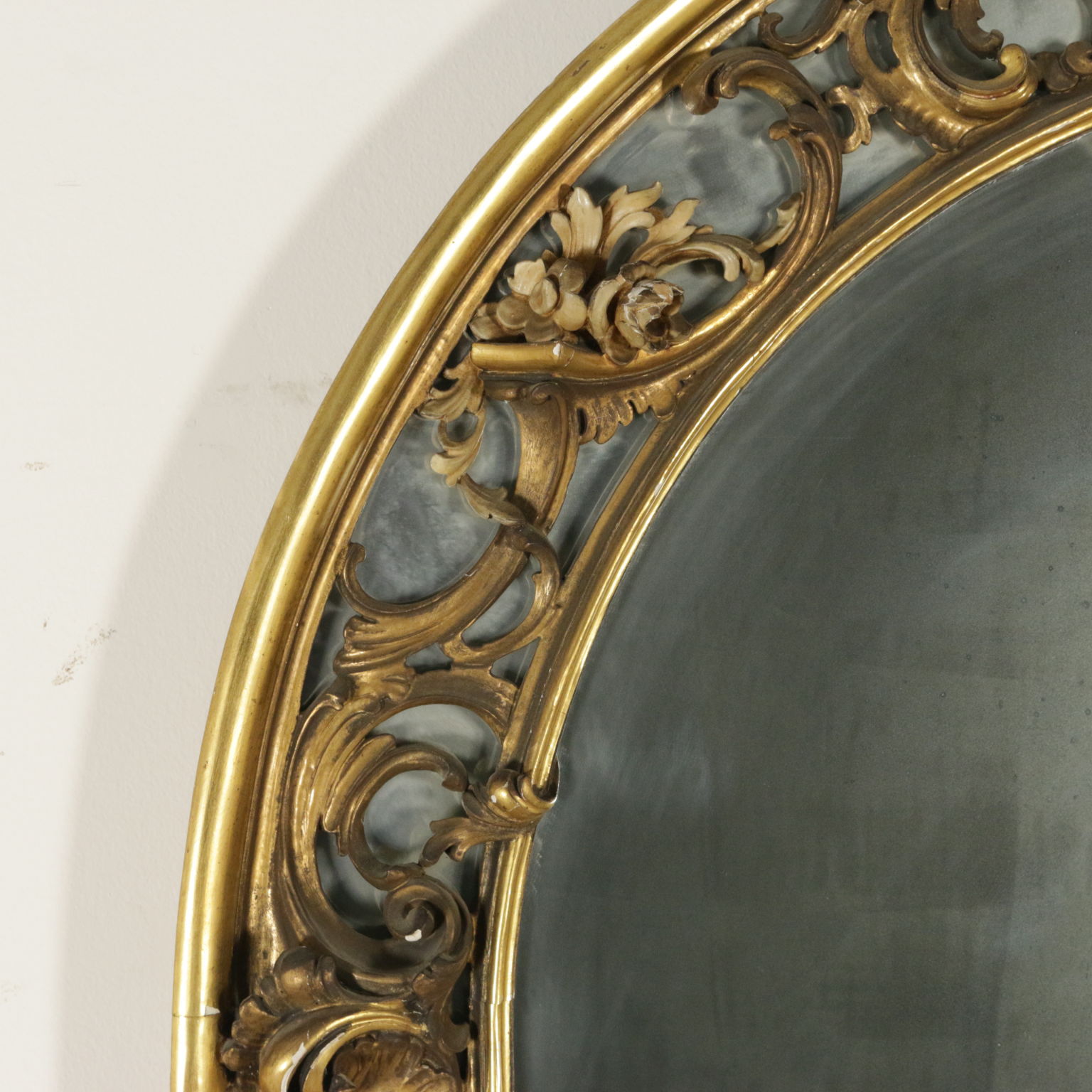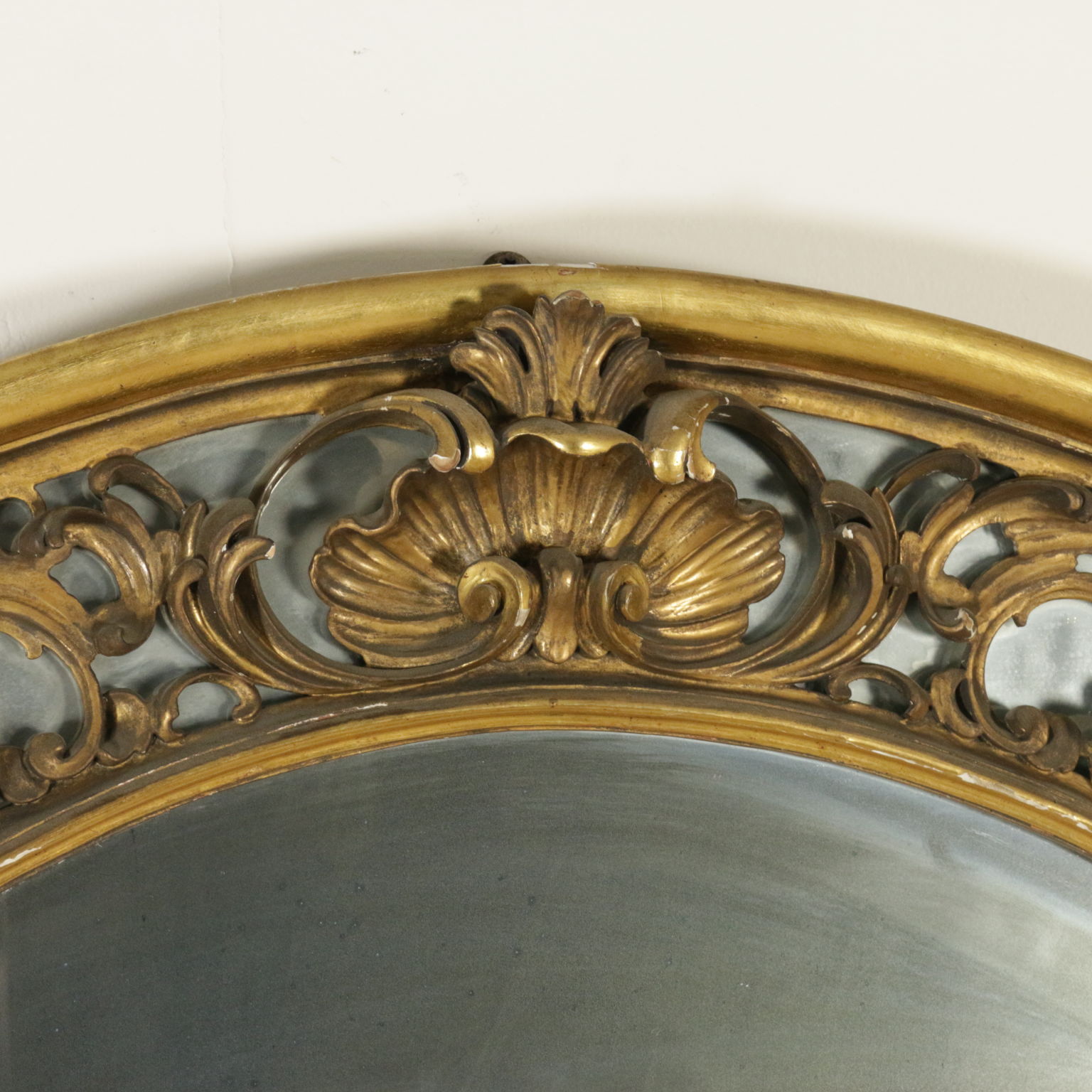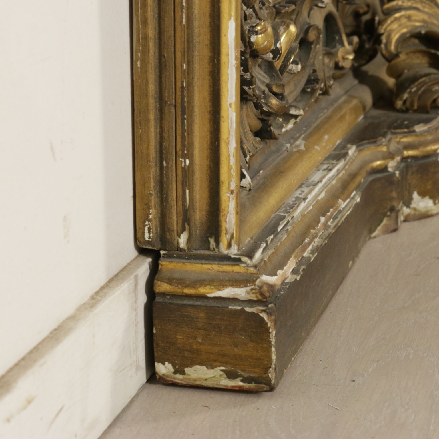 Gran espejo de la raya ricamente tallada con motivos foliáceas y cornucopias y lacado. La pequeña consola de mesa con forma de tapa de mármol corte de pierna recta. Cyma arcos.