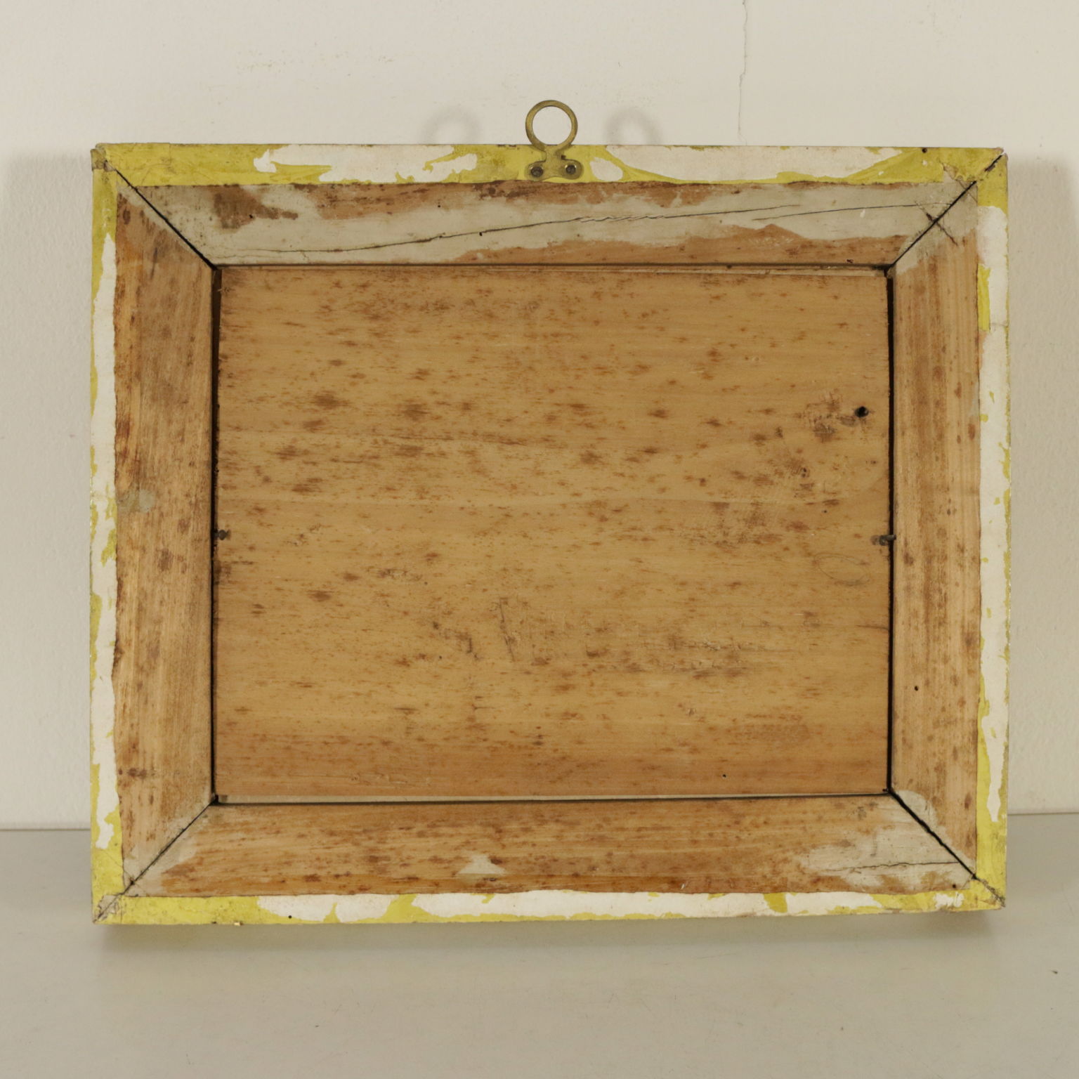 Óleo sobre papel aplicado a bordo. Parecería representar a la capilla de un edificio y/o en un convento, ya que está situado en una secuencia de corredores que abrir diferentes puertas. Presentado en contemporáneo marco que requiere restauración.