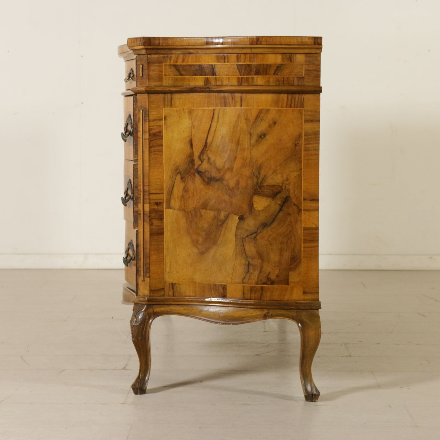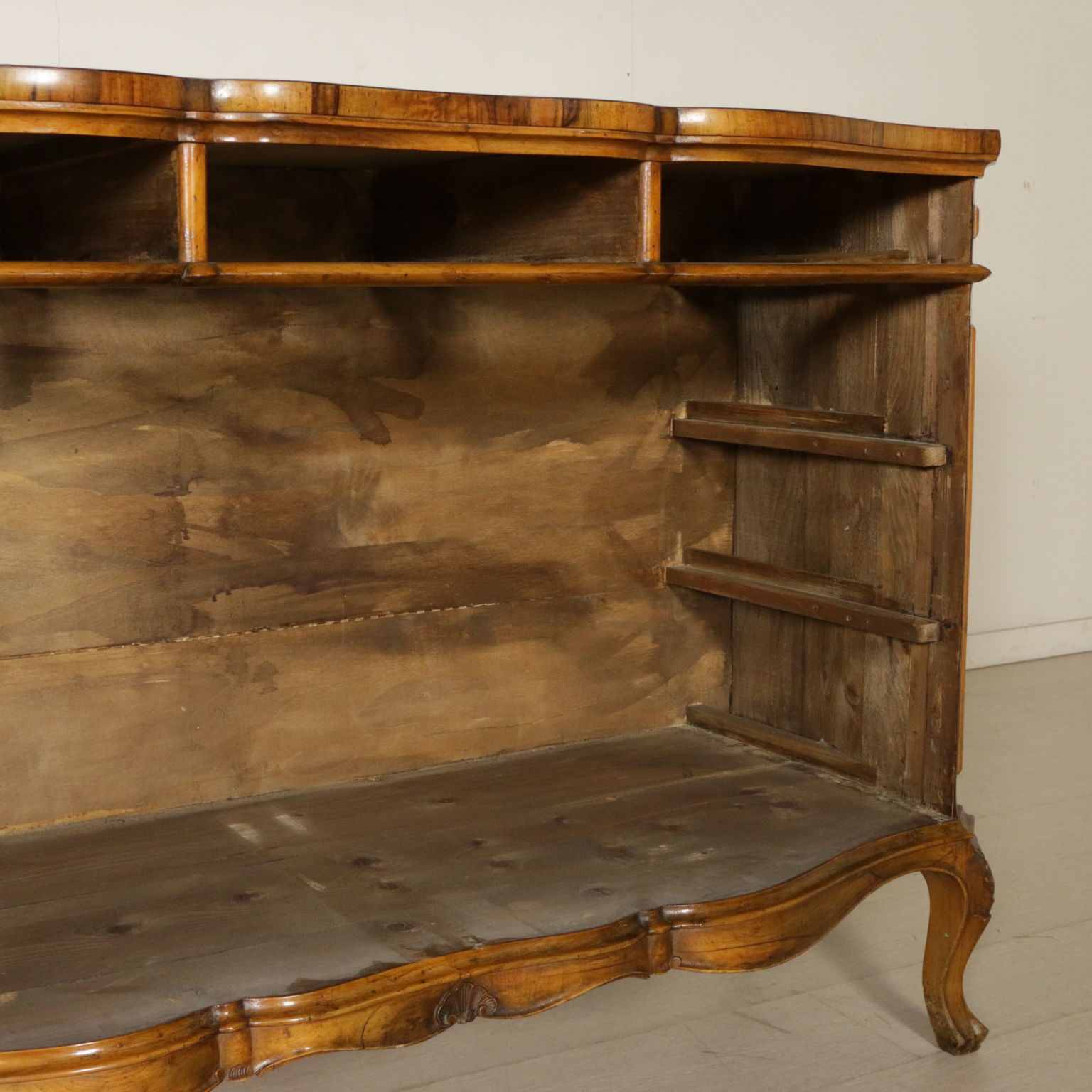 El vestidor se trasladó a la parte delantera y los laterales, y cuenta con tres cajones y tres pequeños cajones forrados de la mesada de la cocina. Forma parte de arriba, la reserva de la madera de nogal.