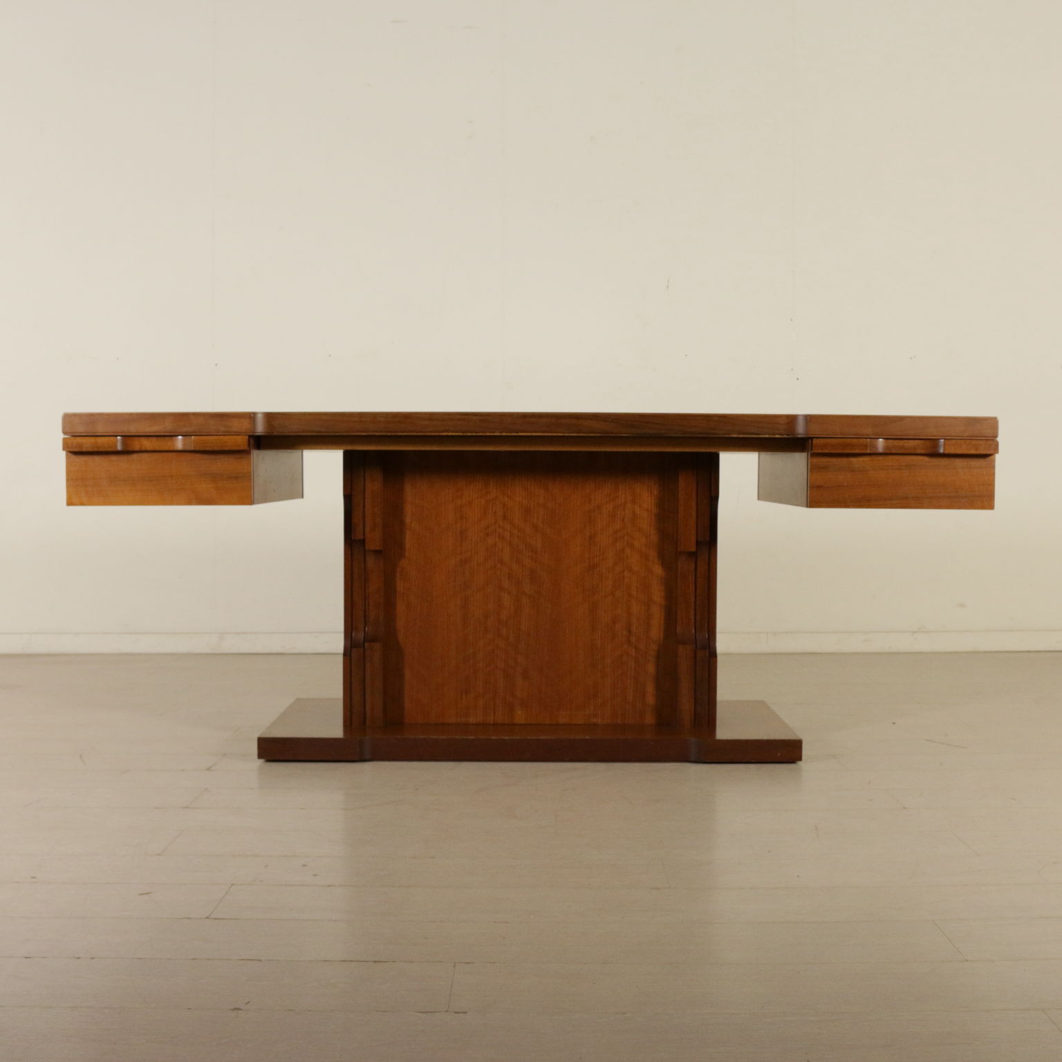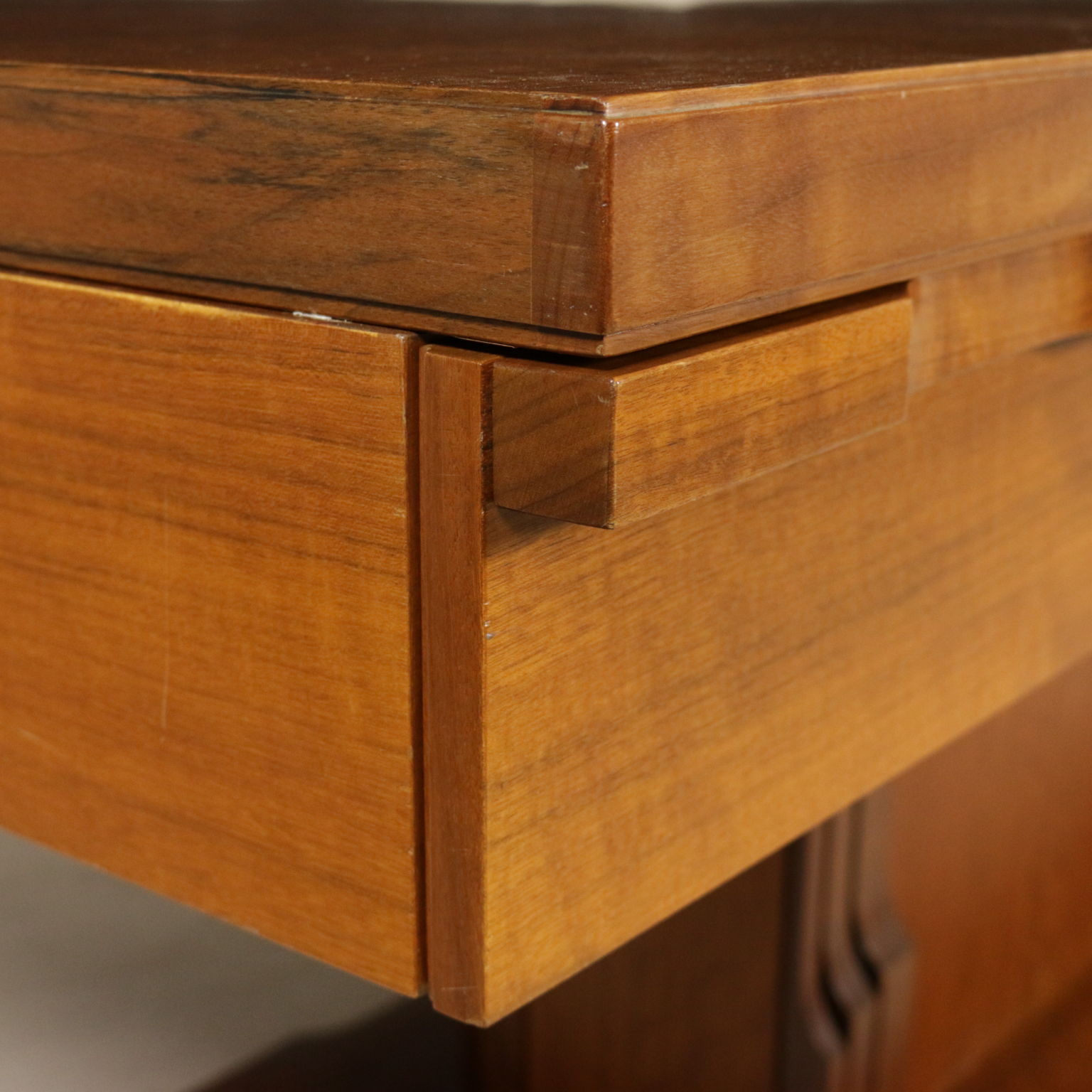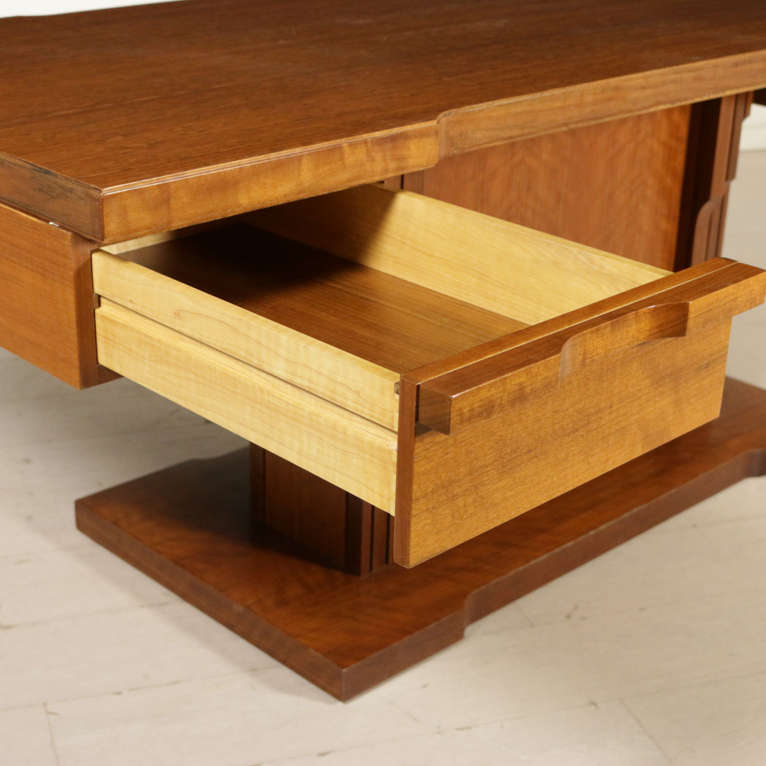 Escritorio con cajones laterales; madera maciza y chapa de nogal de África.
