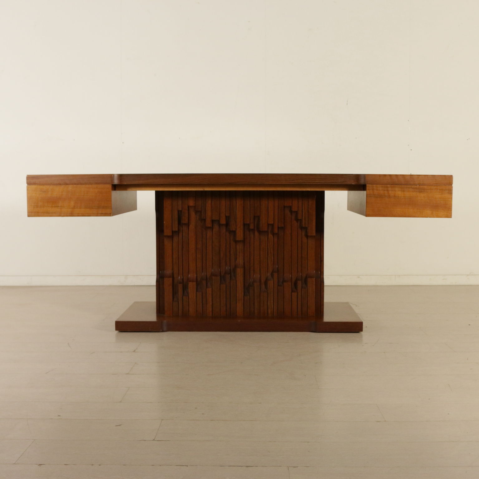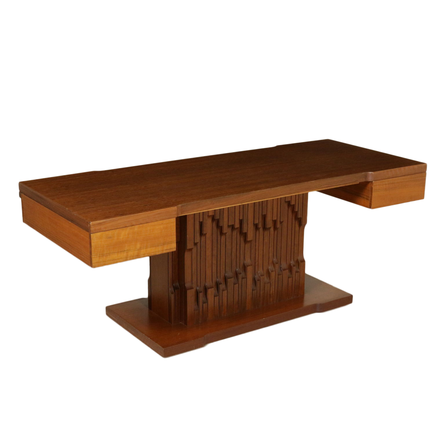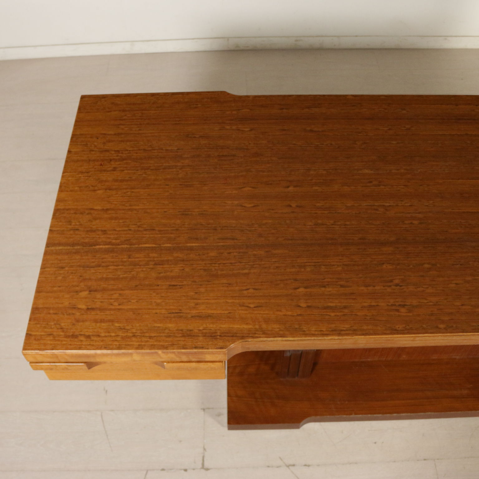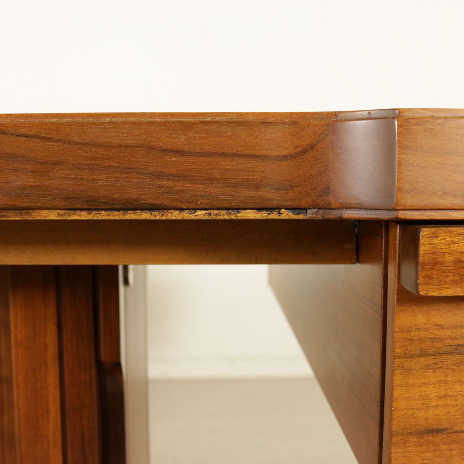 Escritorio con cajones laterales; madera maciza y chapa de nogal de África.