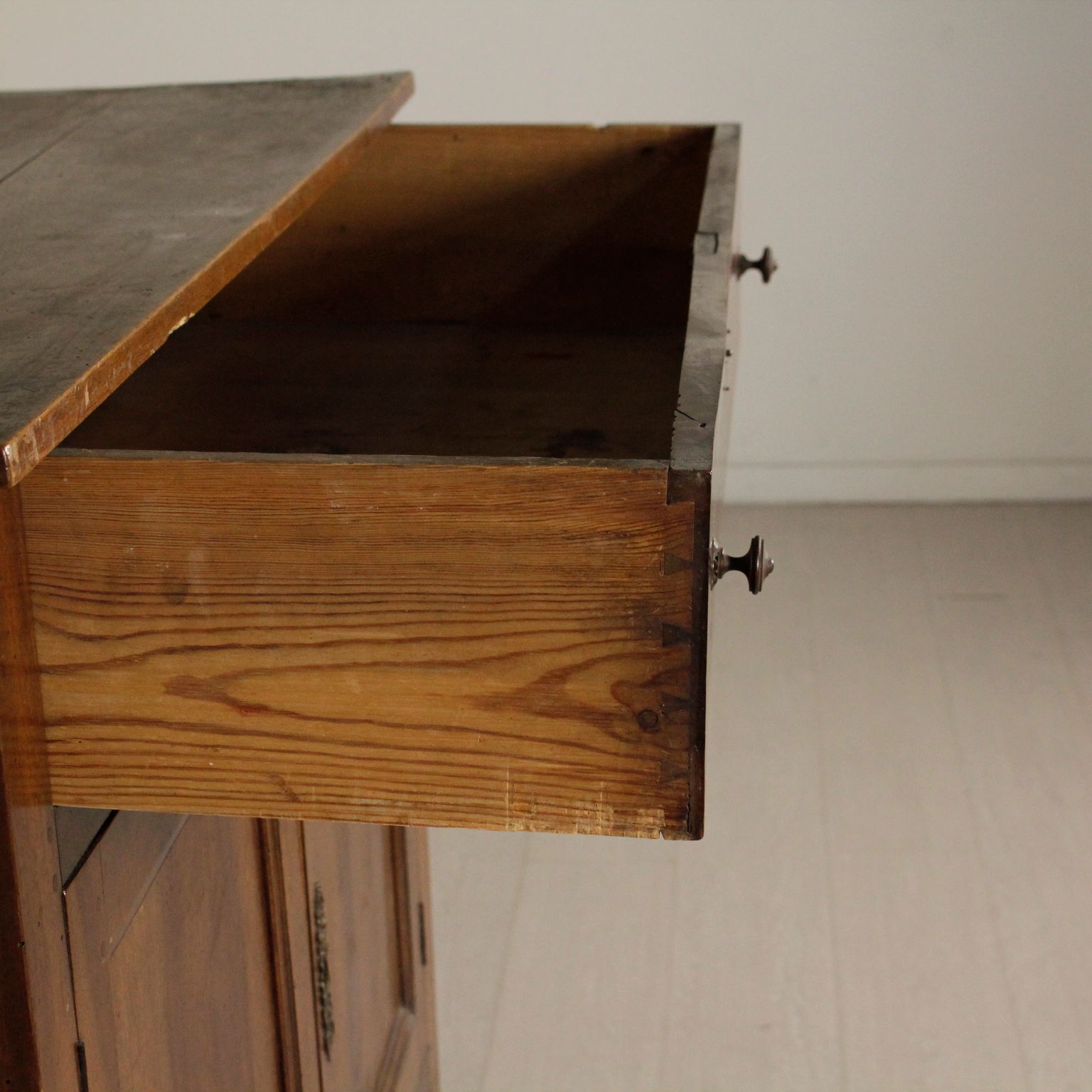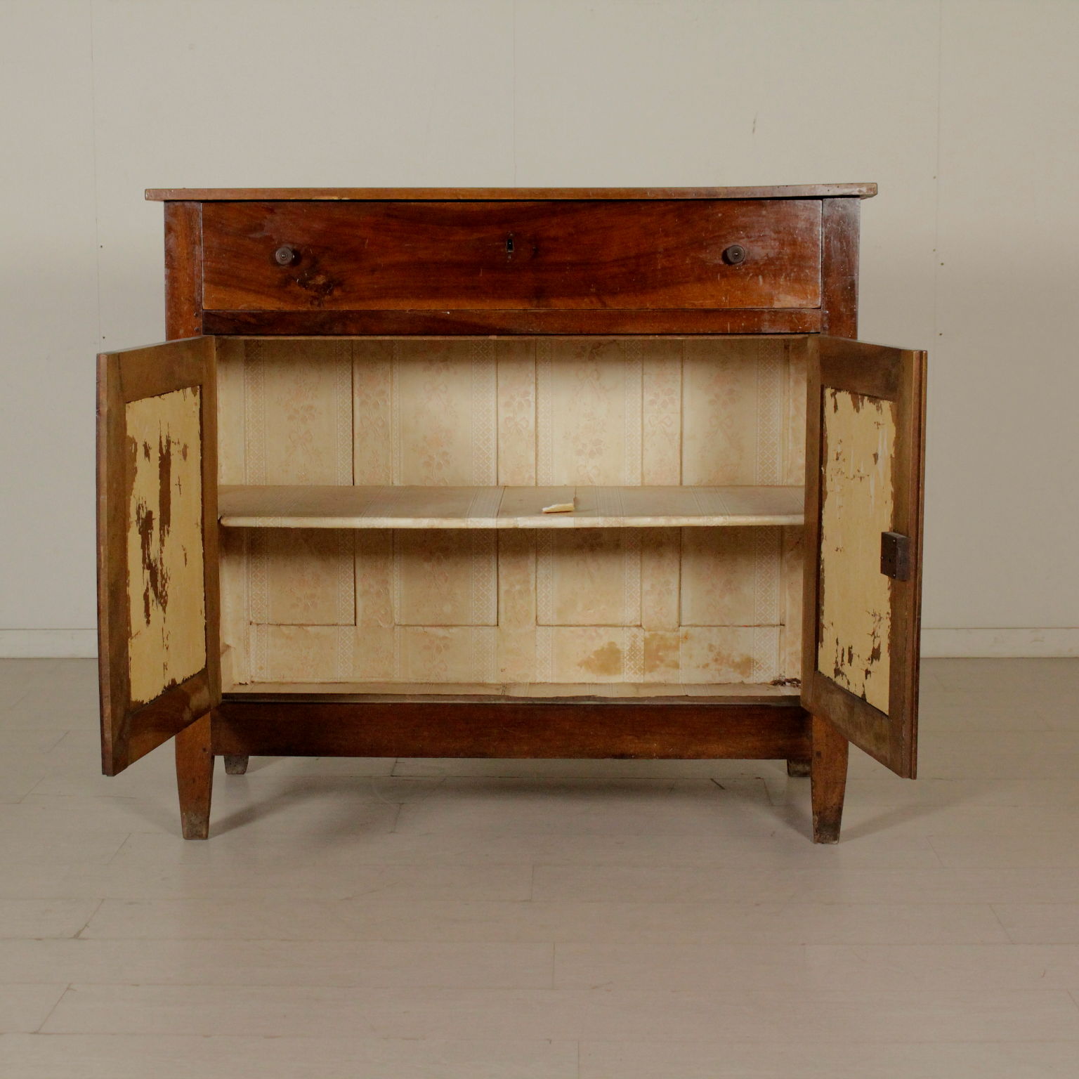 Aparador con dos puertas y un cajón de la derecha de los pies de una pirámide truncada de la estructura. Un estante en el interior.