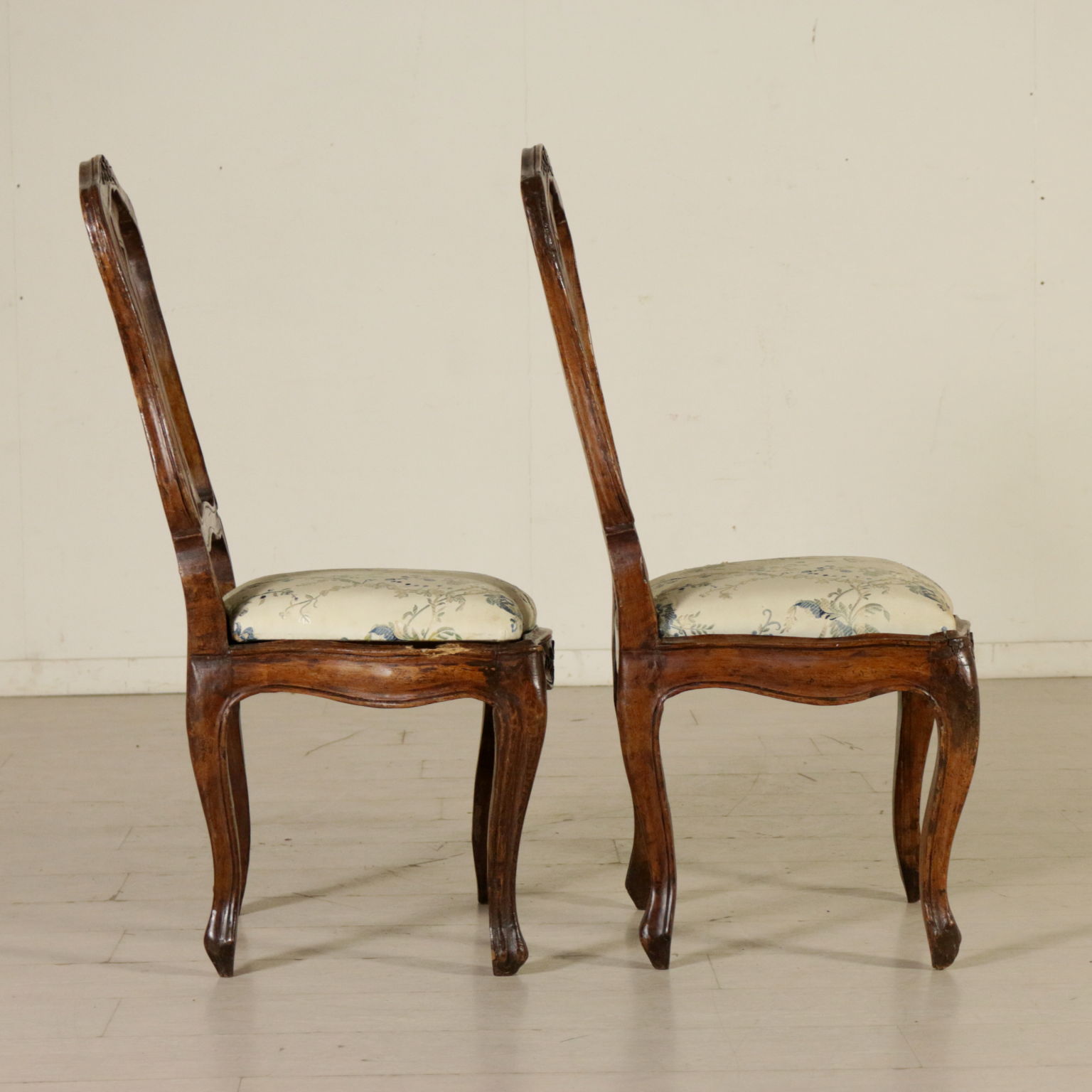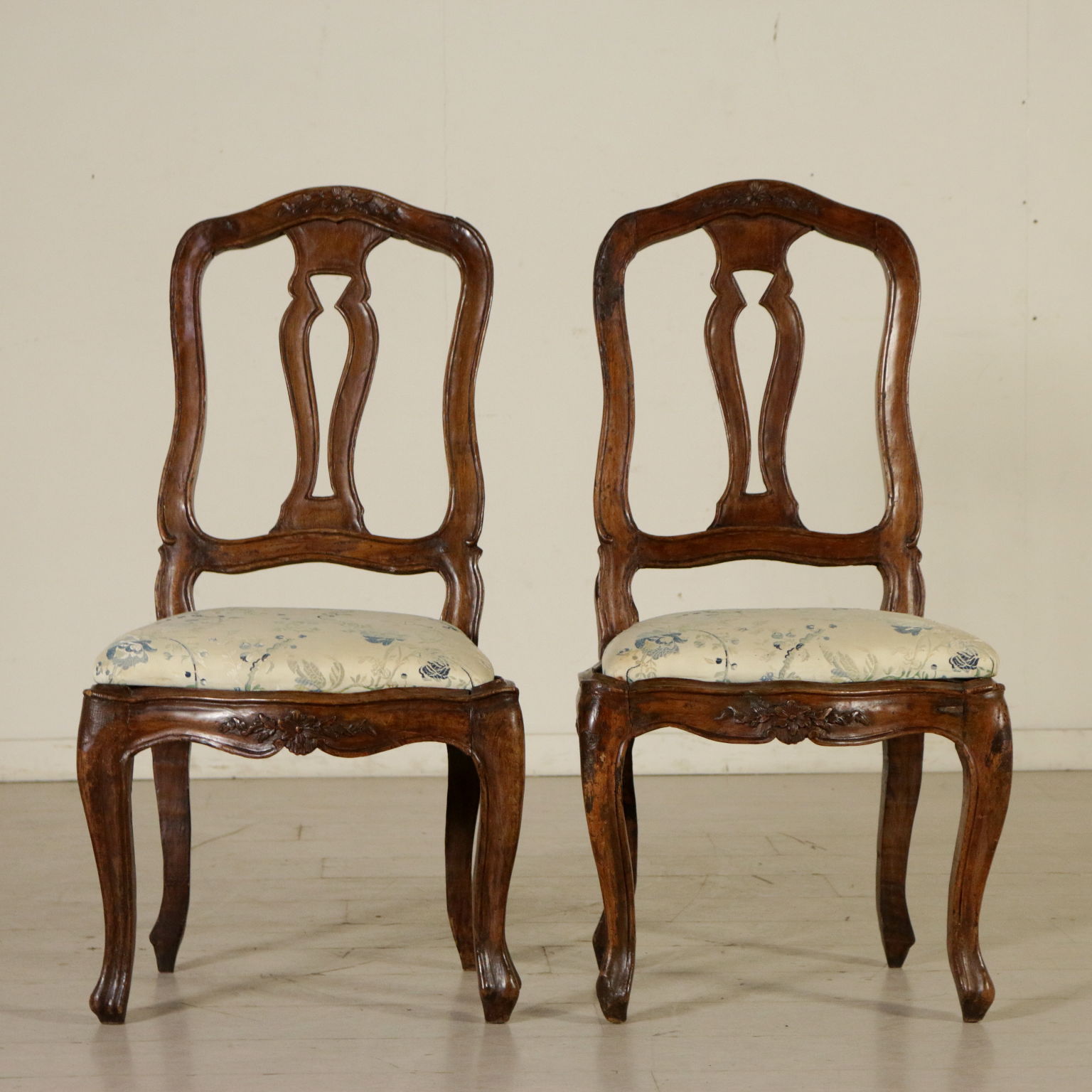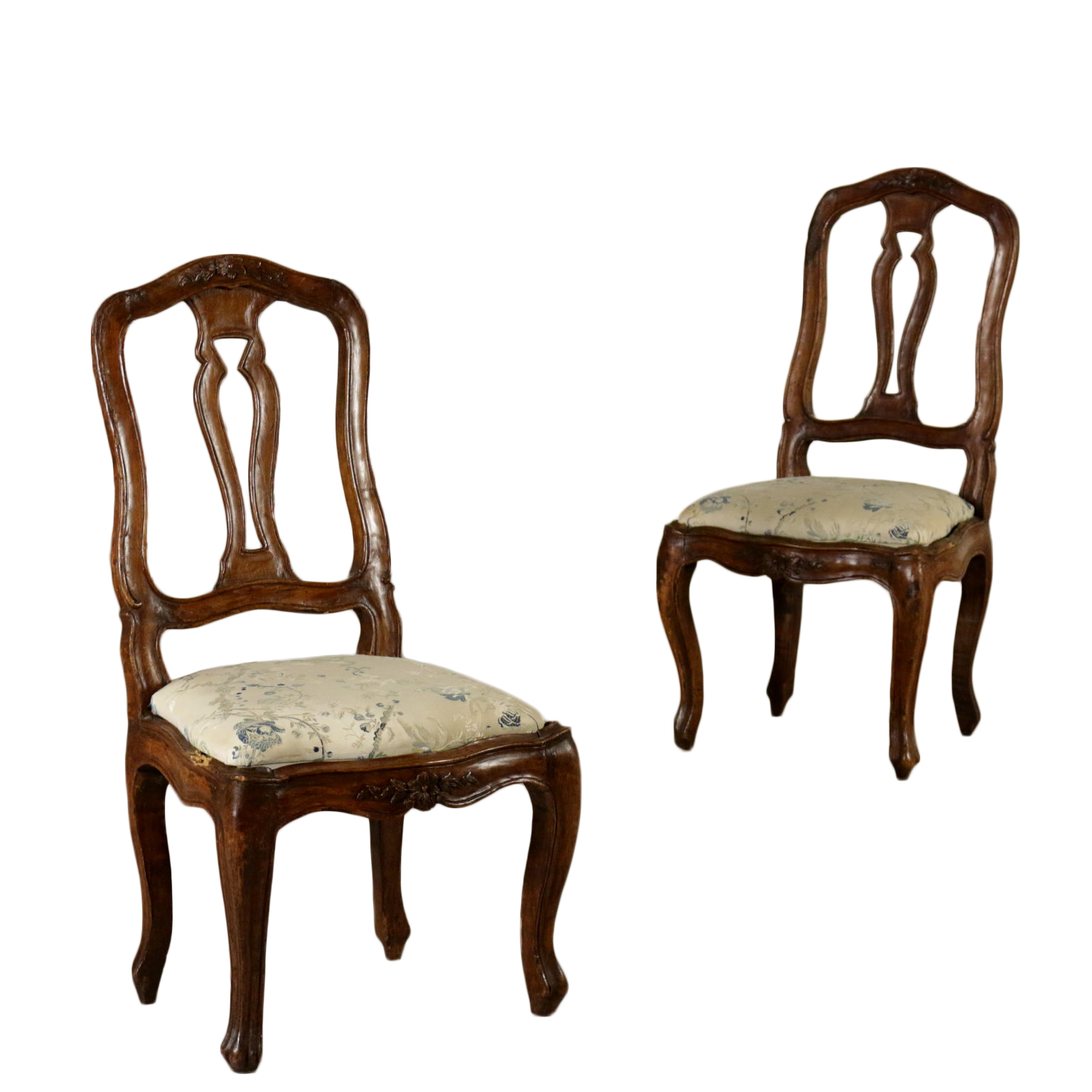 Par de Sillas en el estilo Barroco de la línea de moverse, de vuelta en el día, y intaglios. El asiento acolchado.