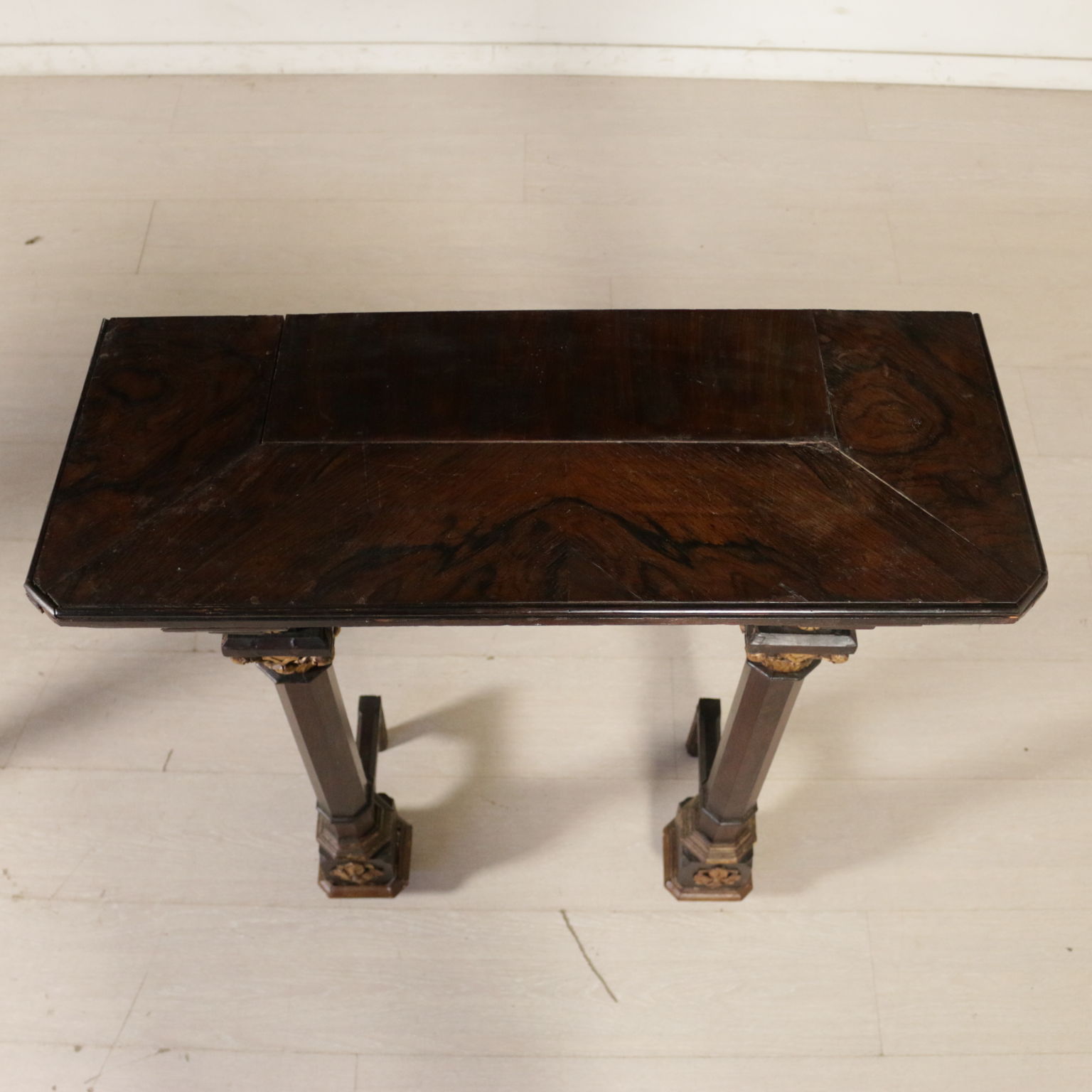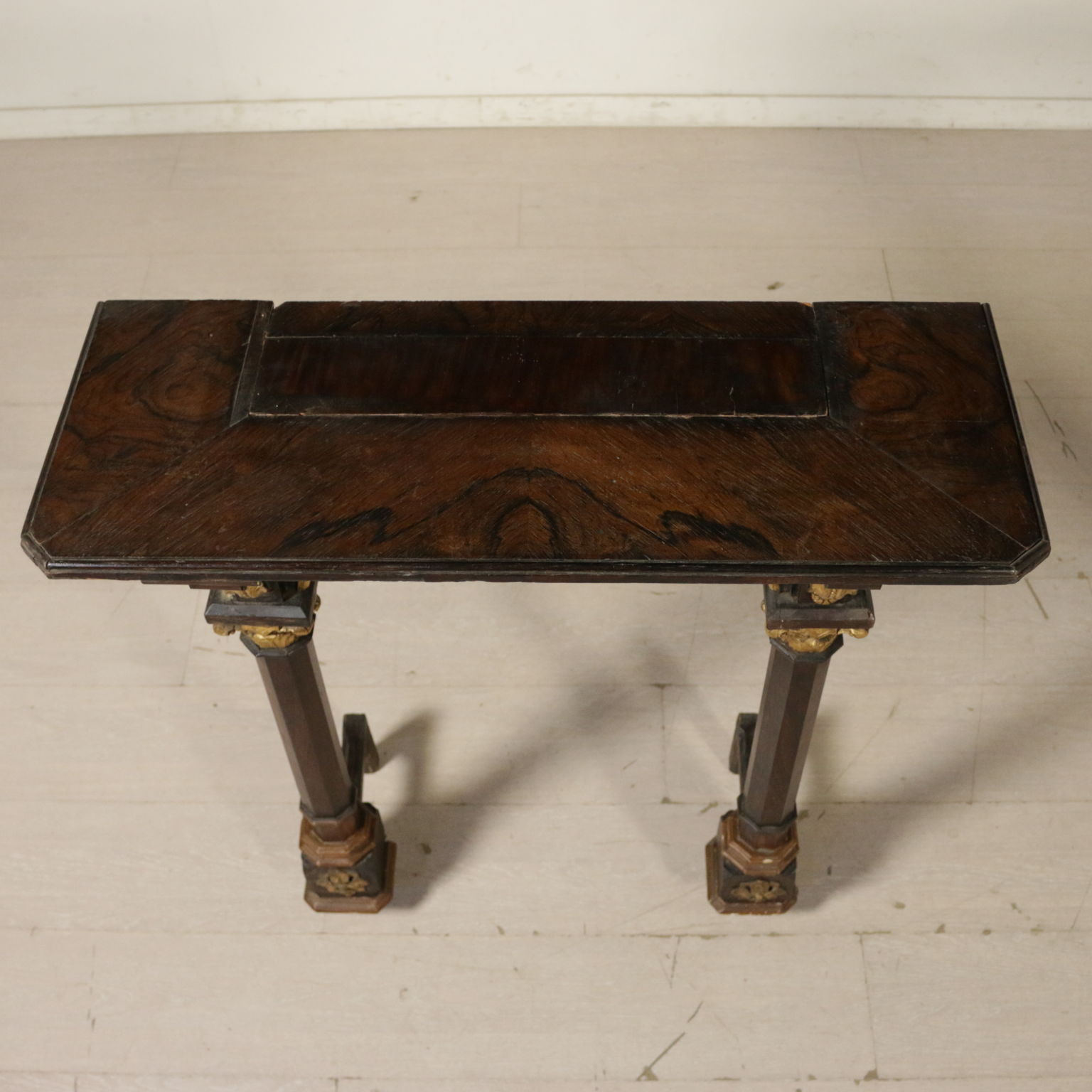 Par de consolas hechas a partir de la tabla de cortar y modificar, las piernas, de planta octogonal y dorado tallas.