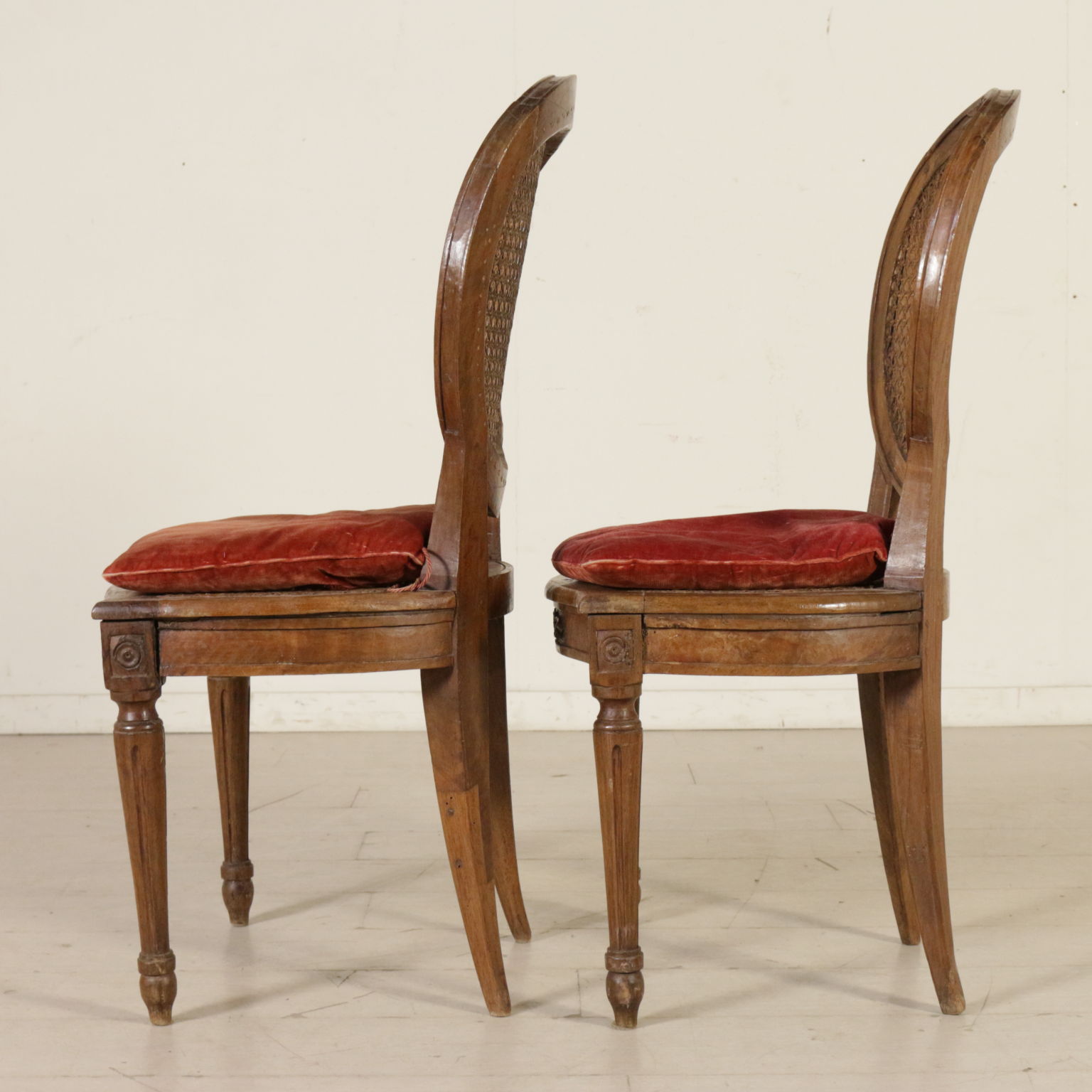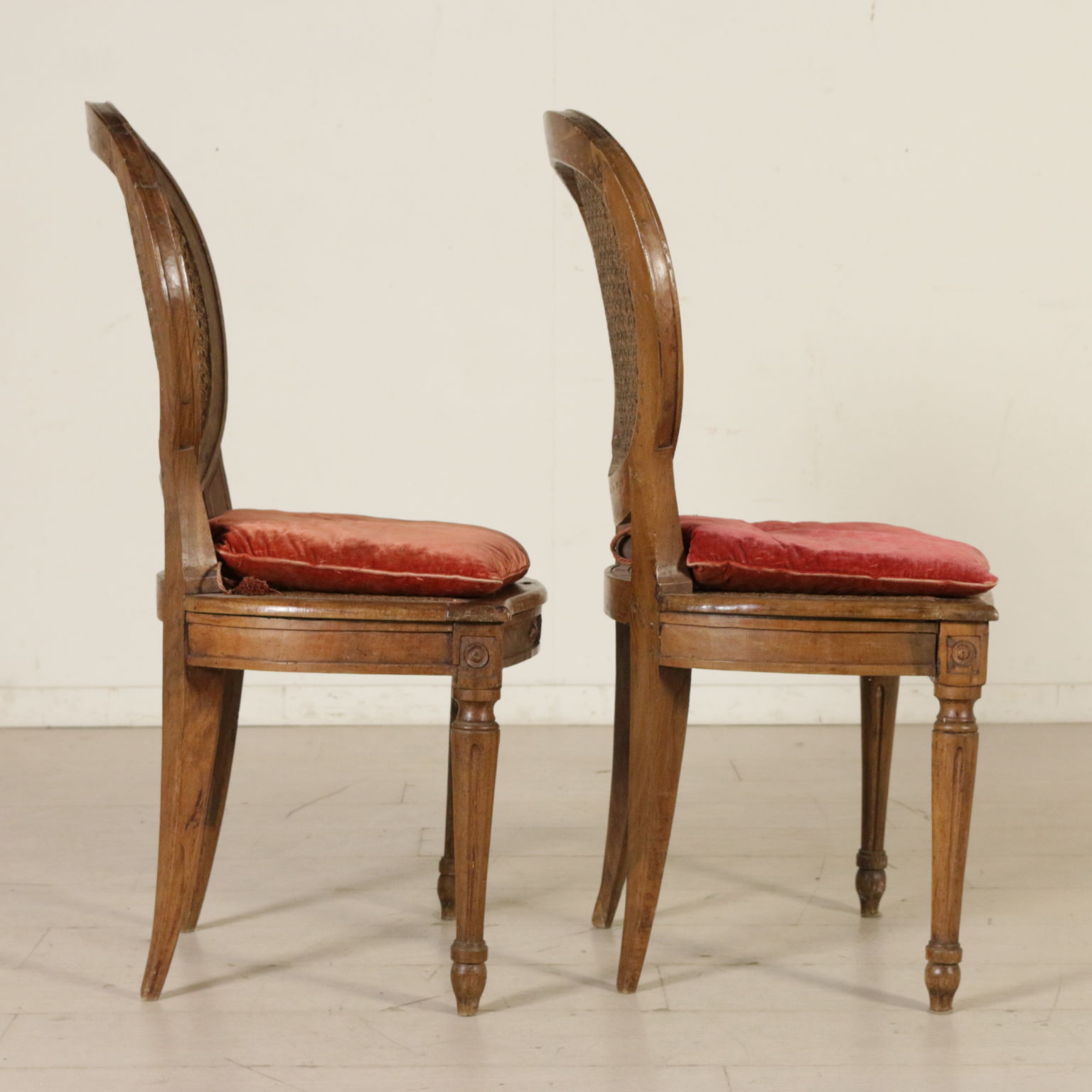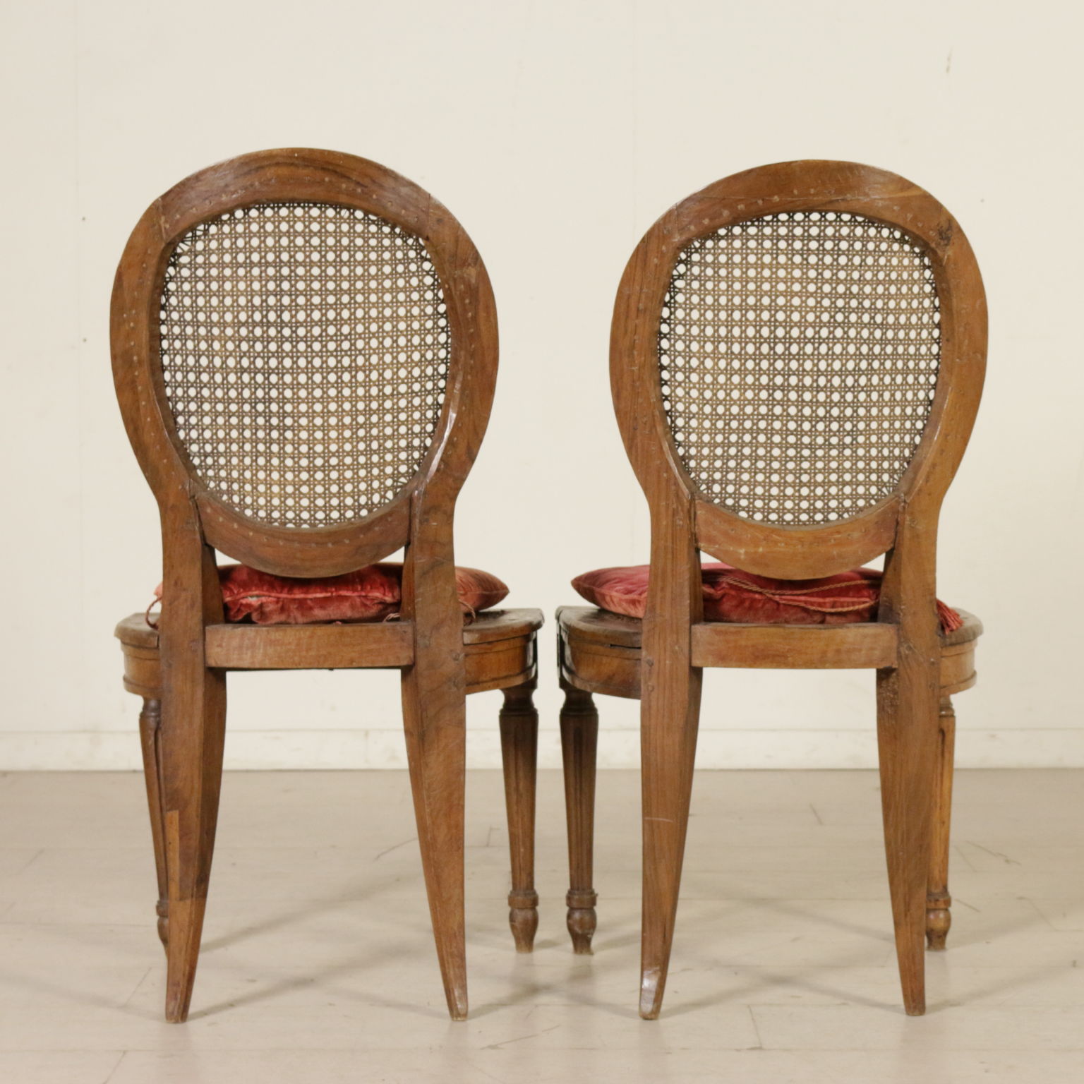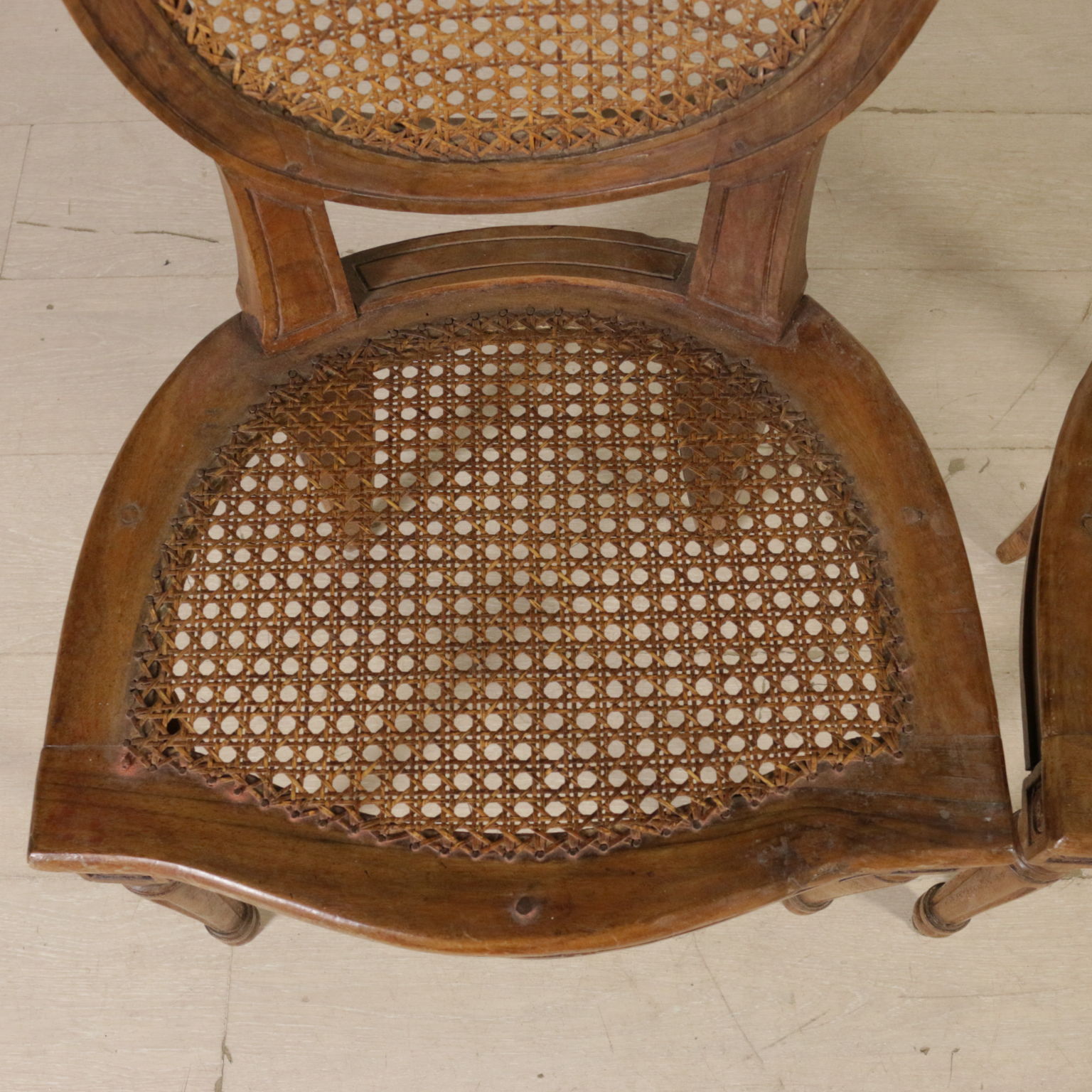 Las piernas estiradas troncoconiche, tienen tallas, asientos y respaldos de sicilcanne.