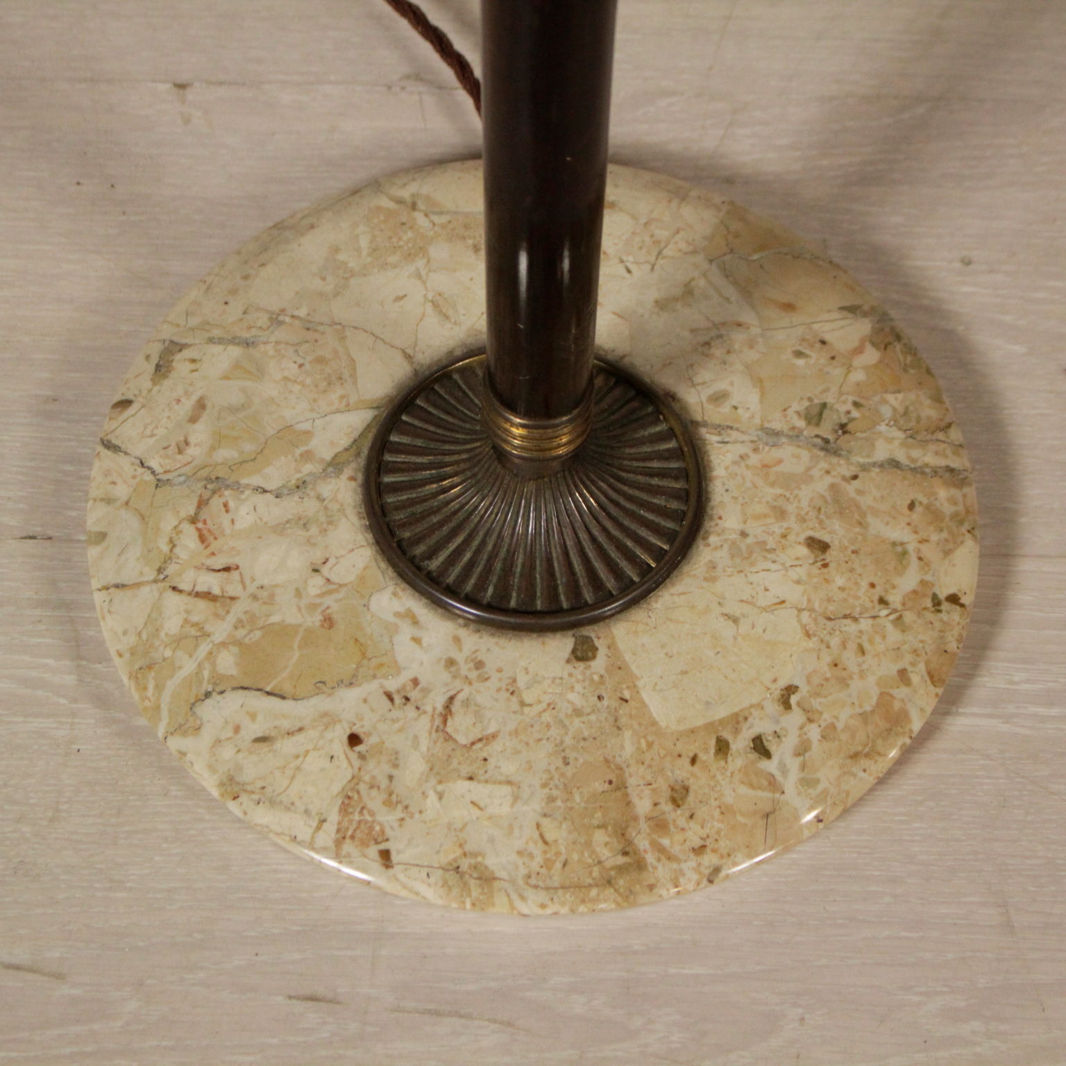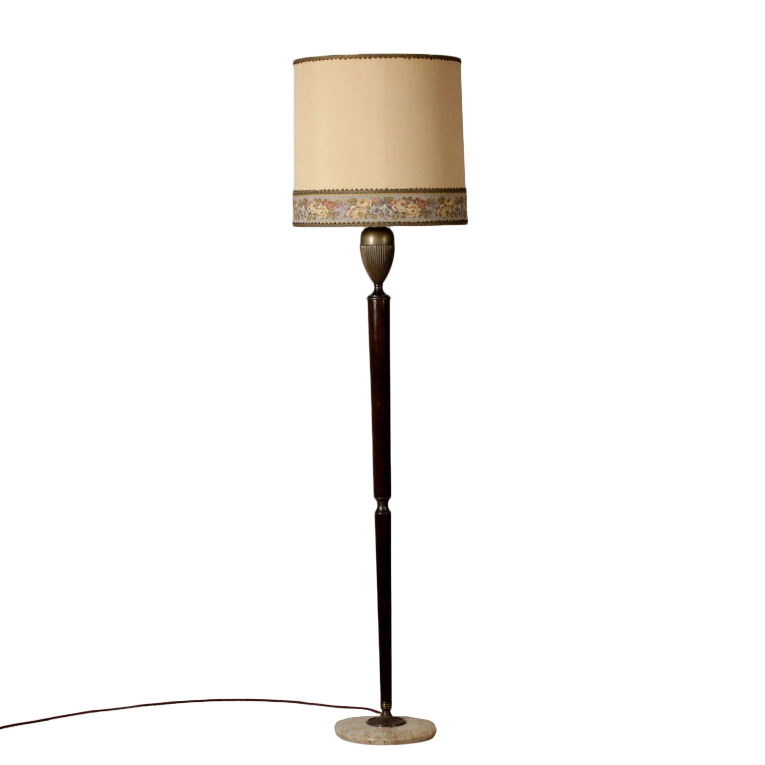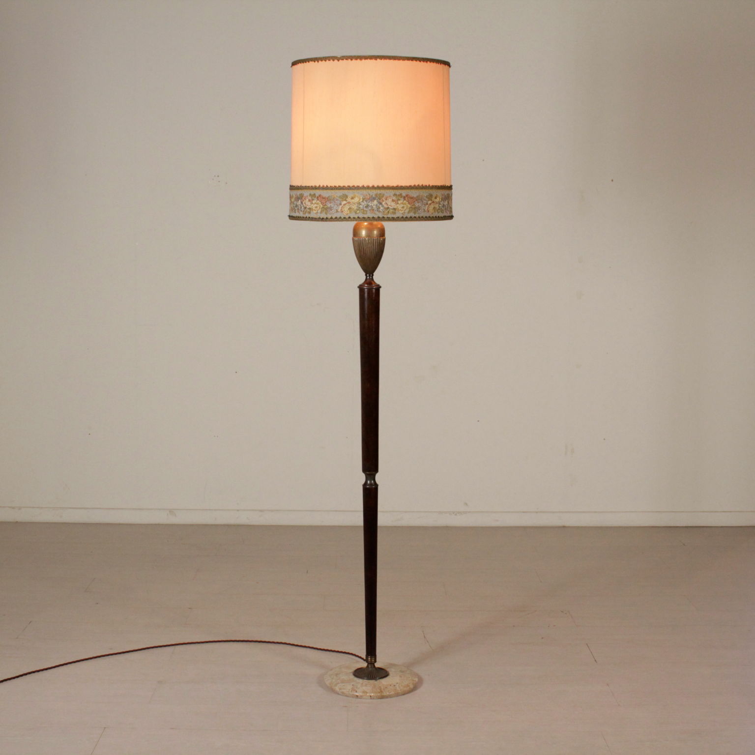 Lámpara de piso: madera, bronce, mármol y de base de tela de sombra.