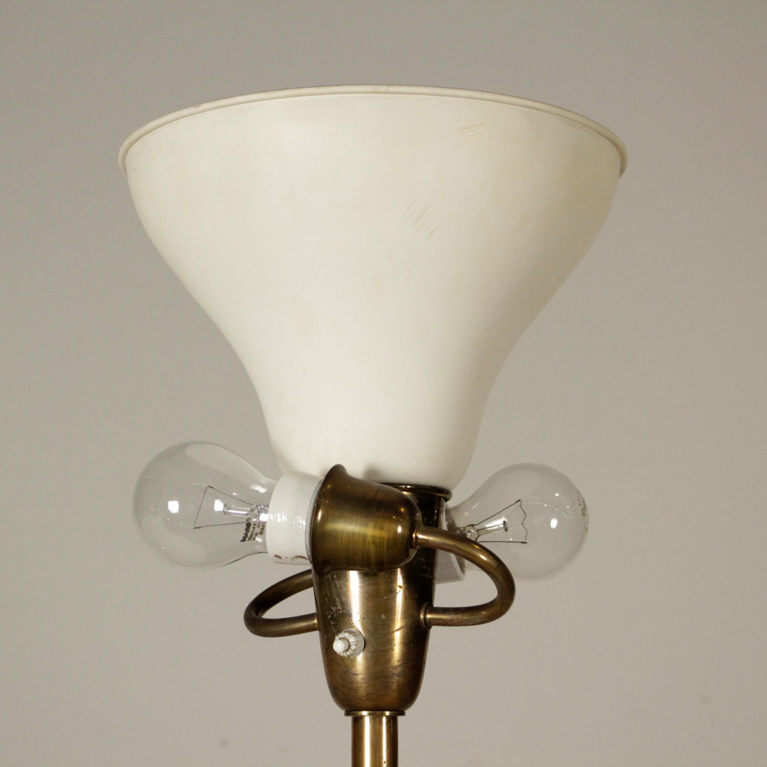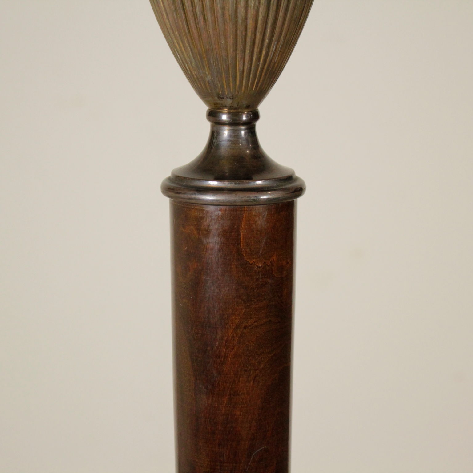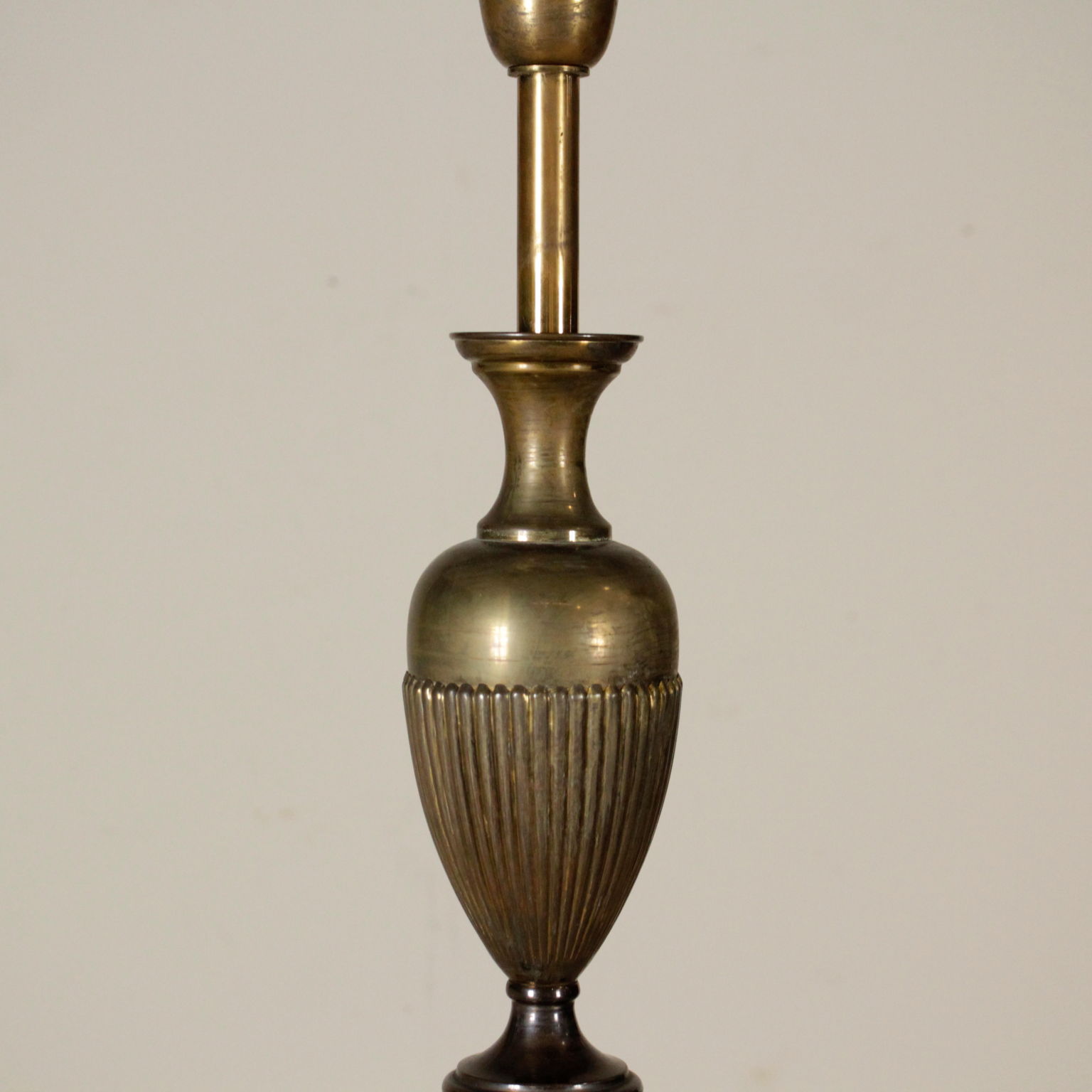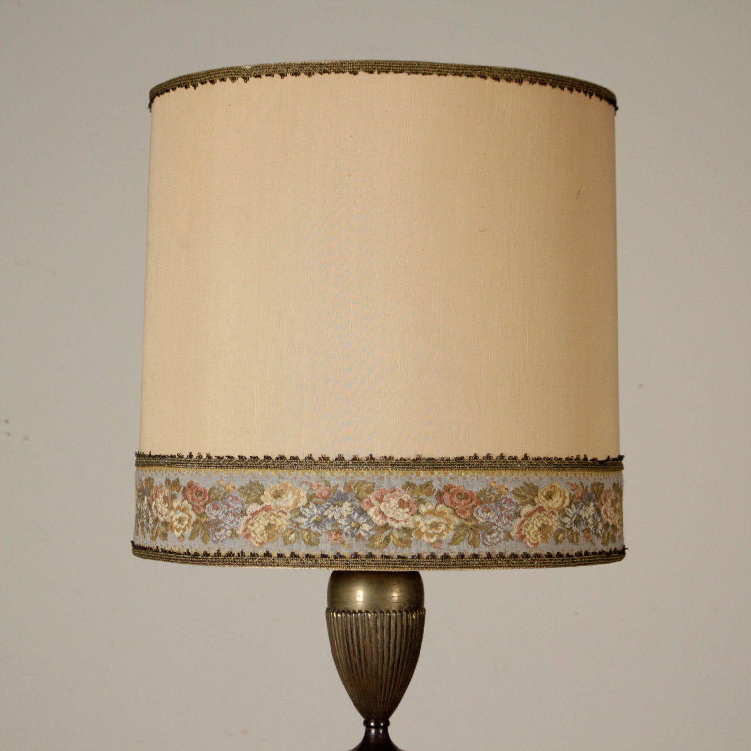 Lámpara de piso: madera, bronce, mármol y de base de tela de sombra.