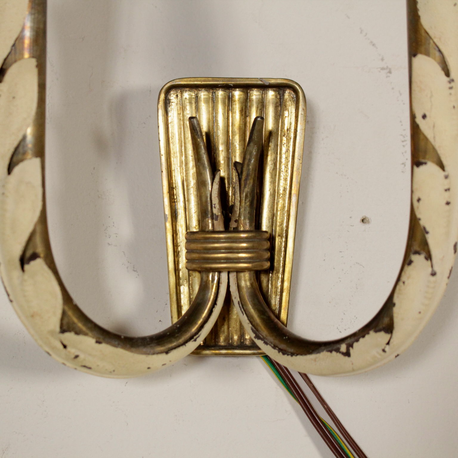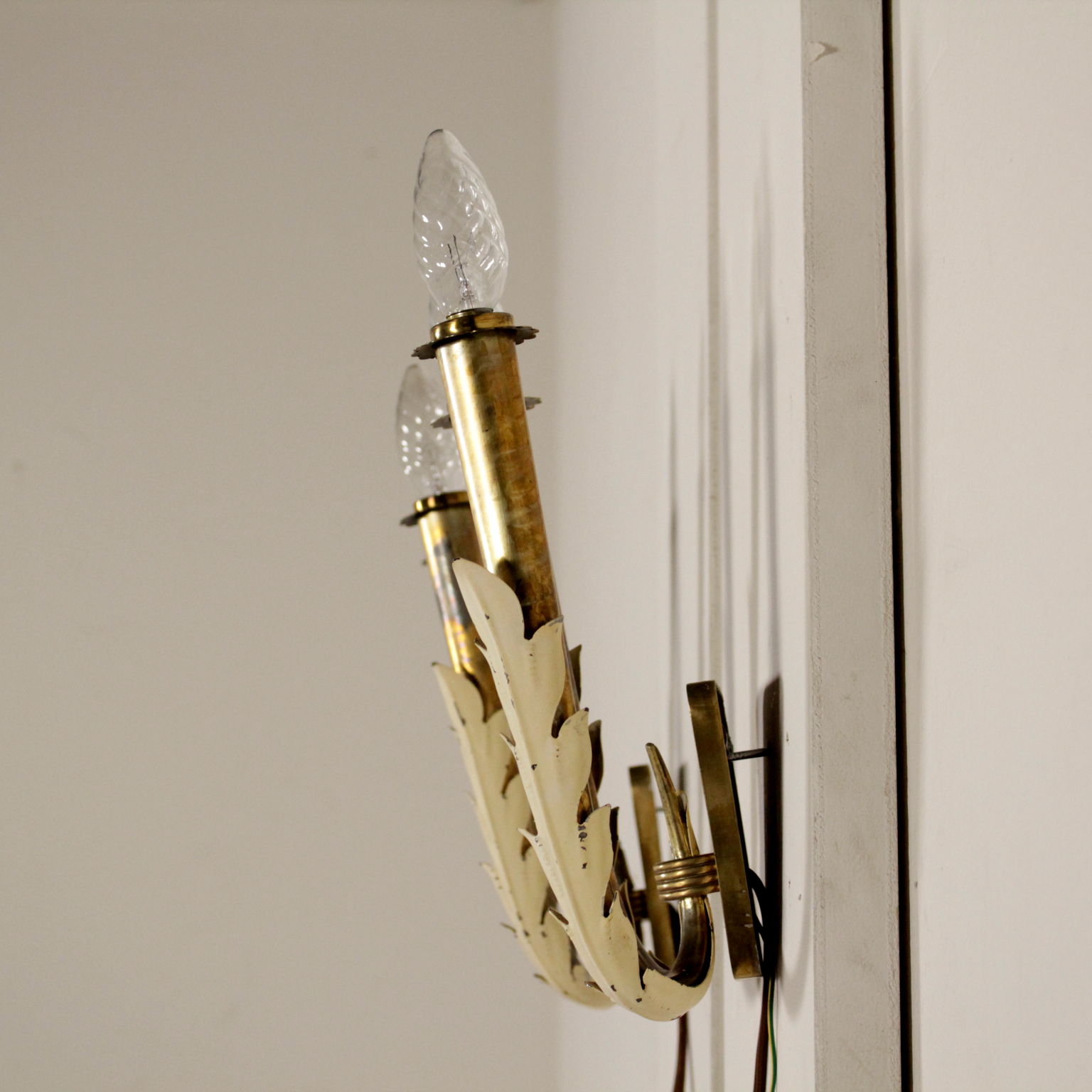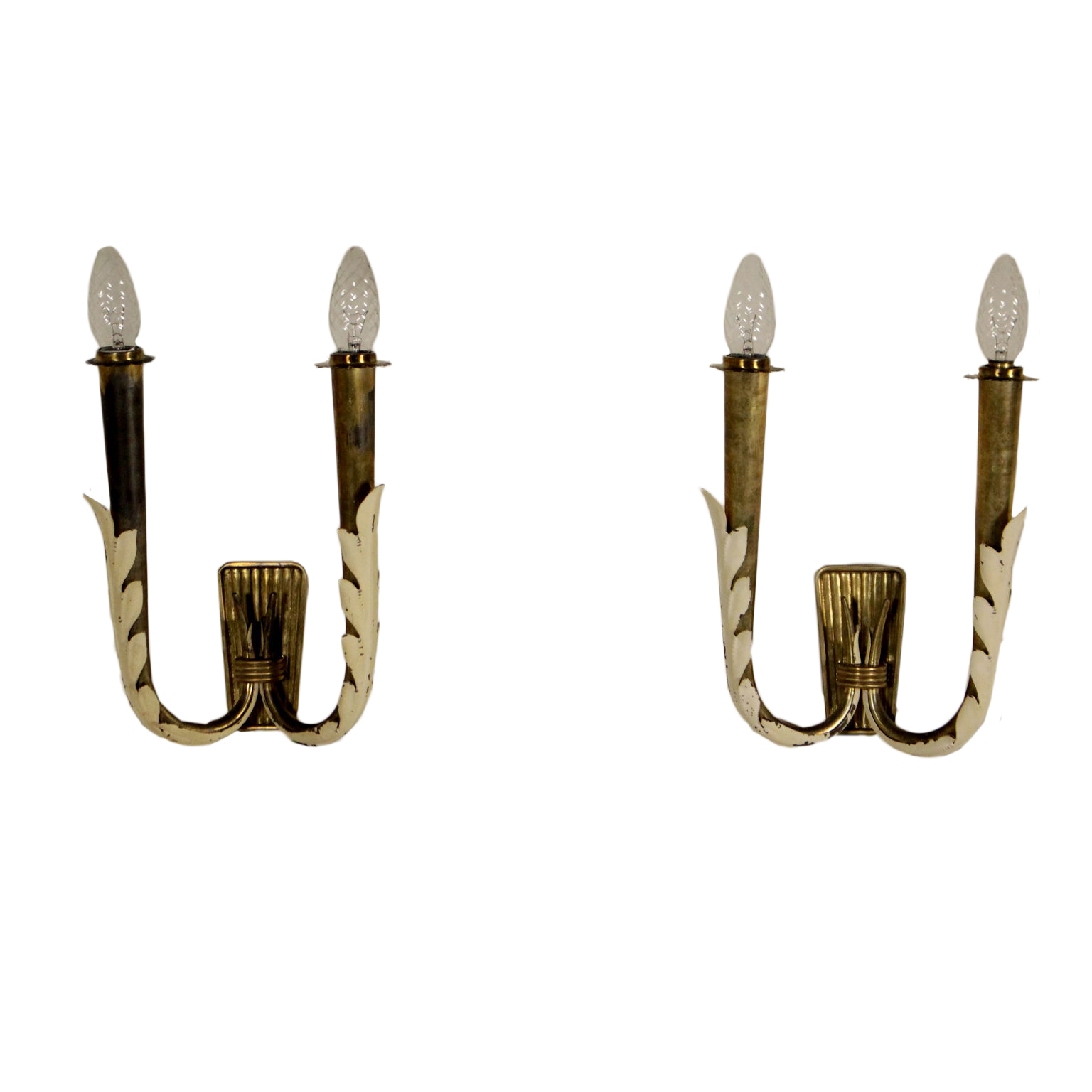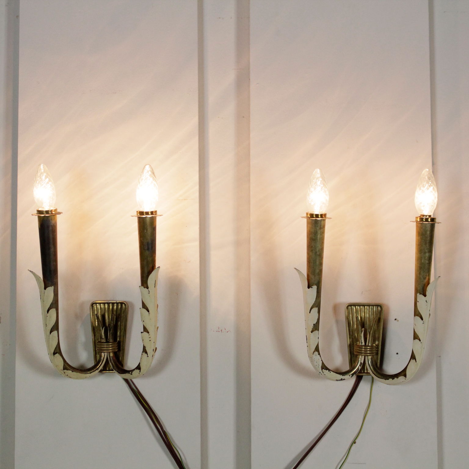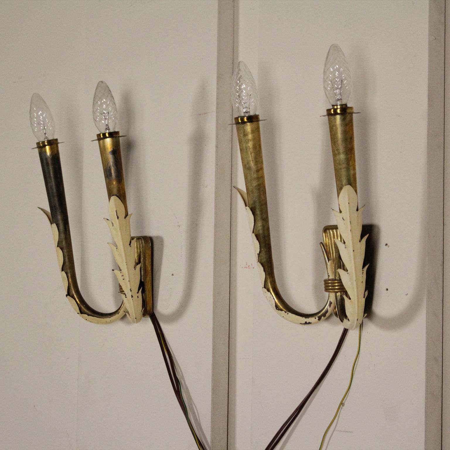 Par de lámparas de pared; aluminio lacado, de latón.