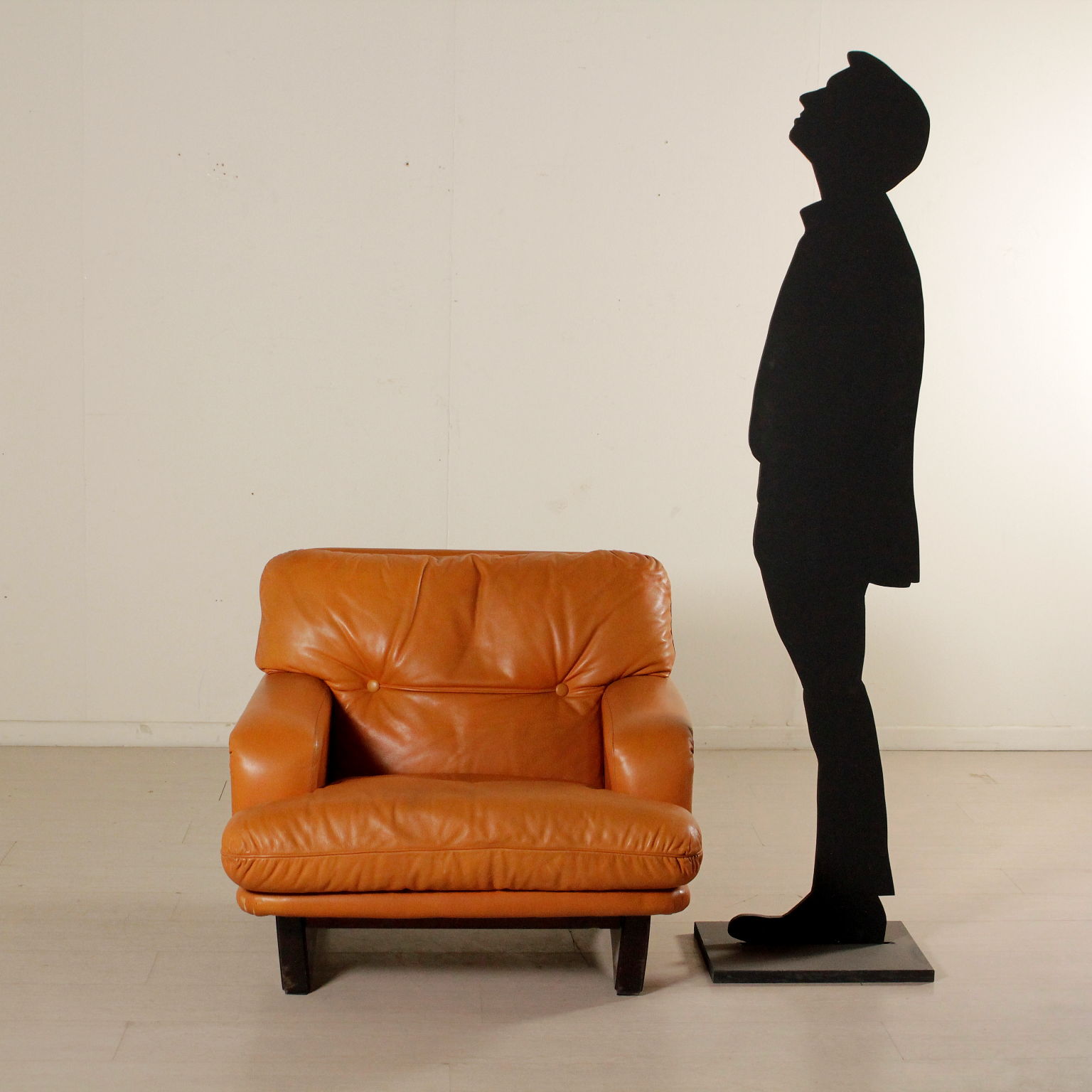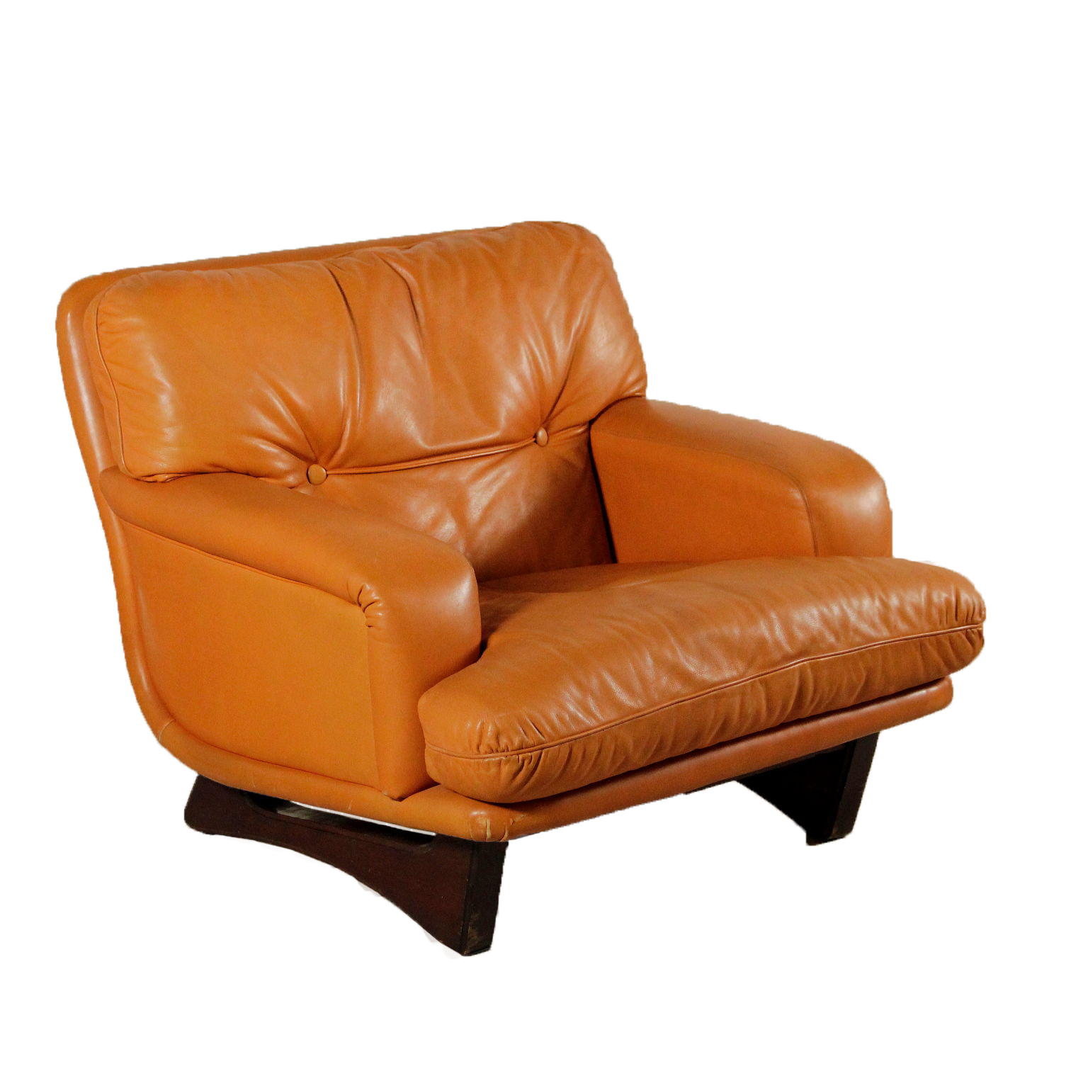 Presidente; relleno de espuma, tapizados en cuero, patas en madera.