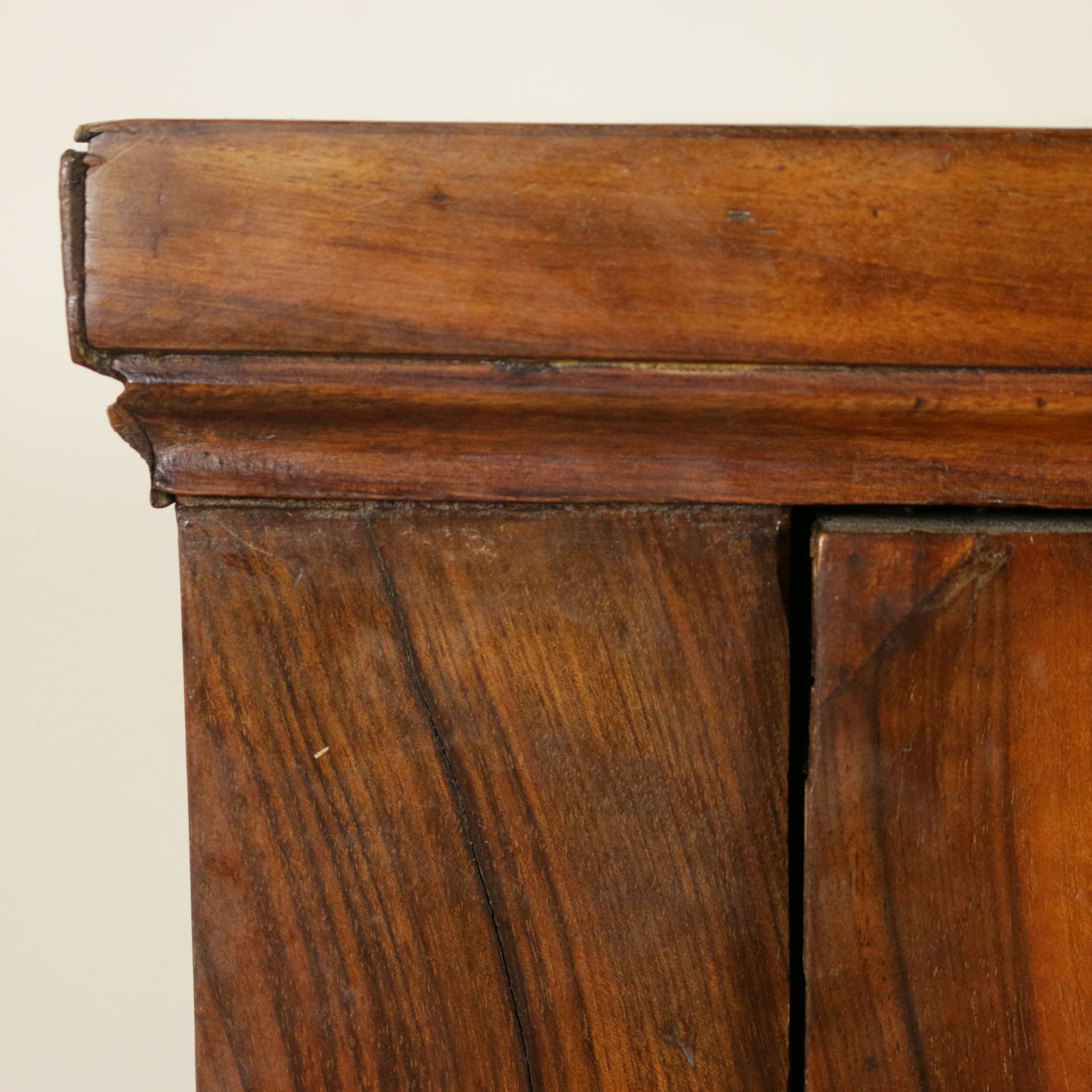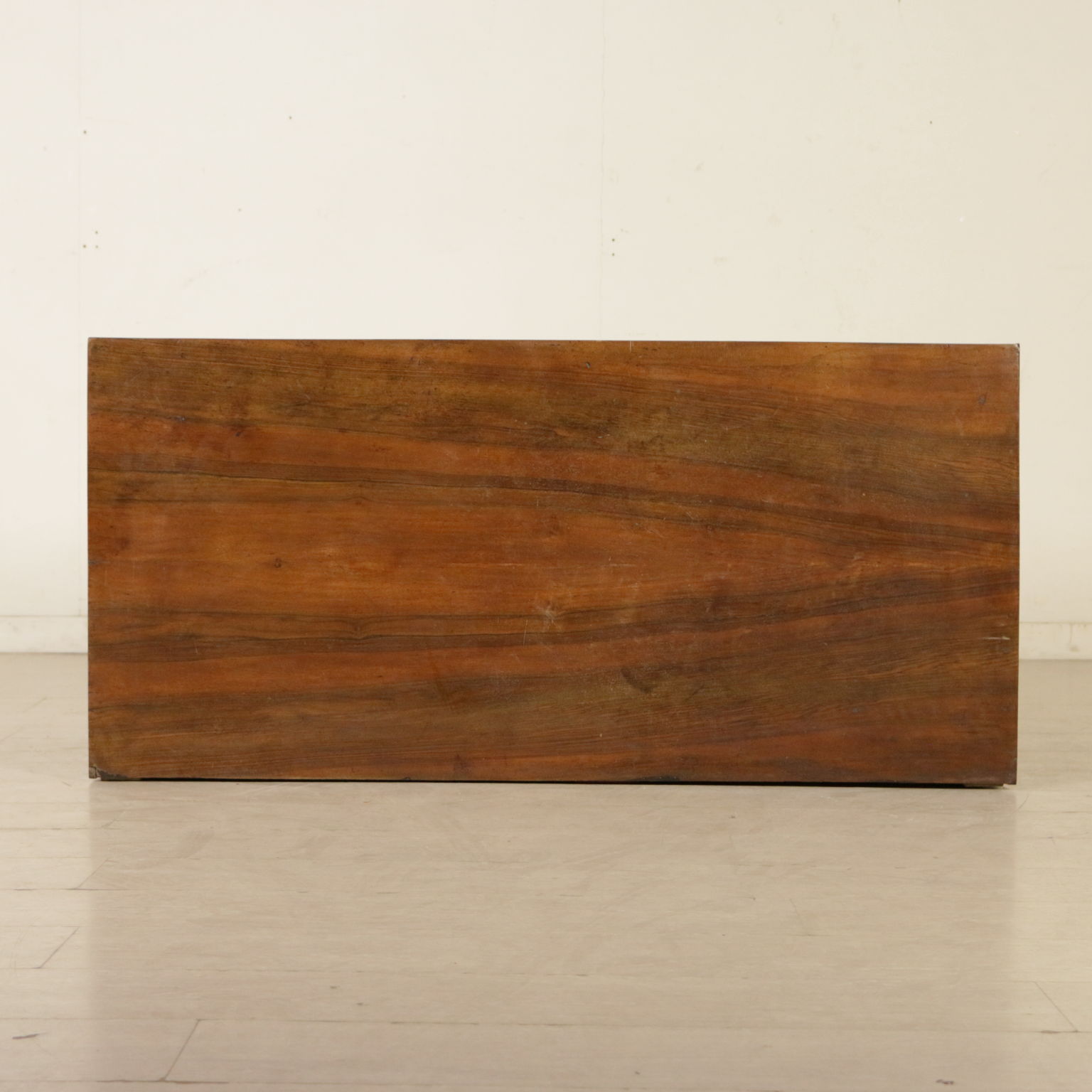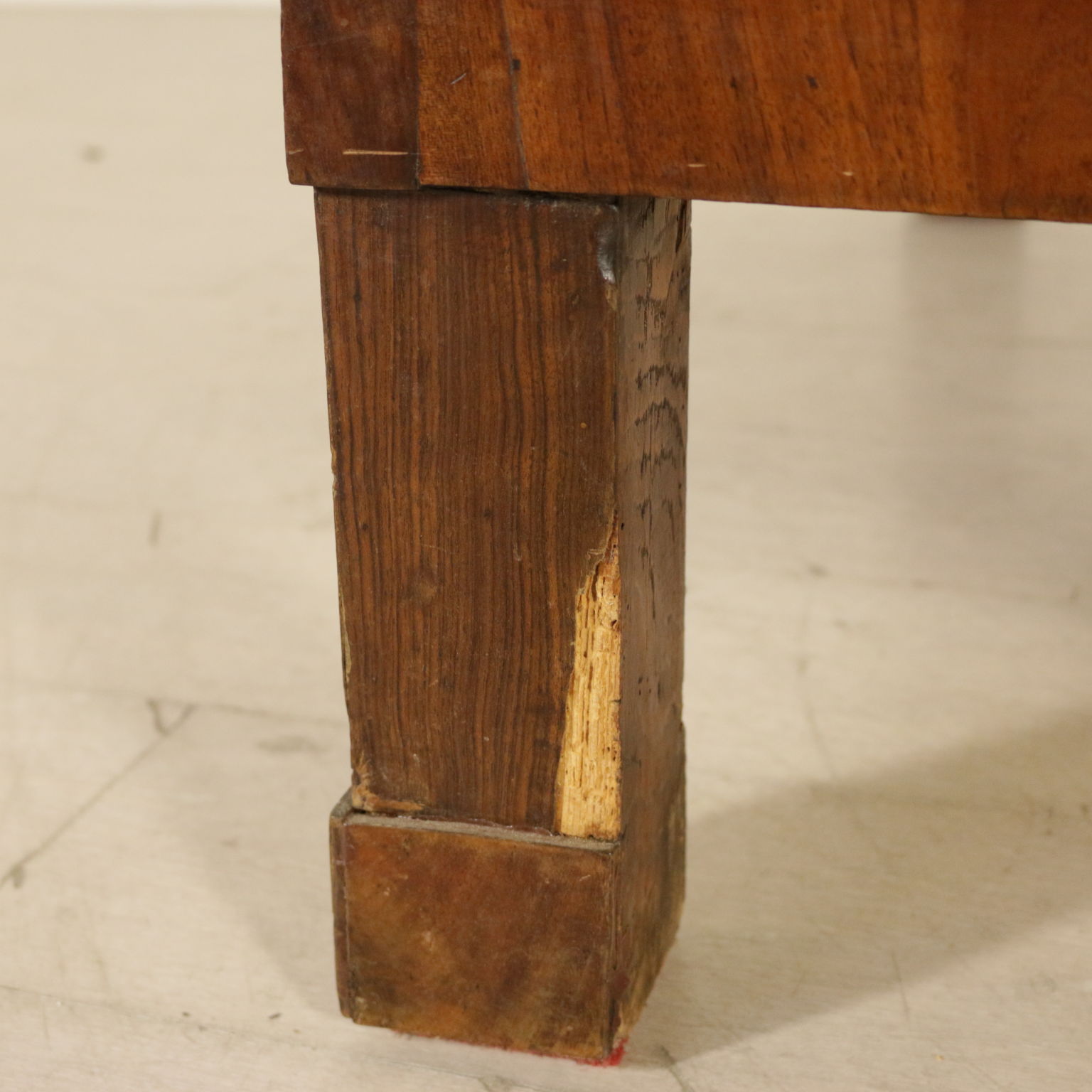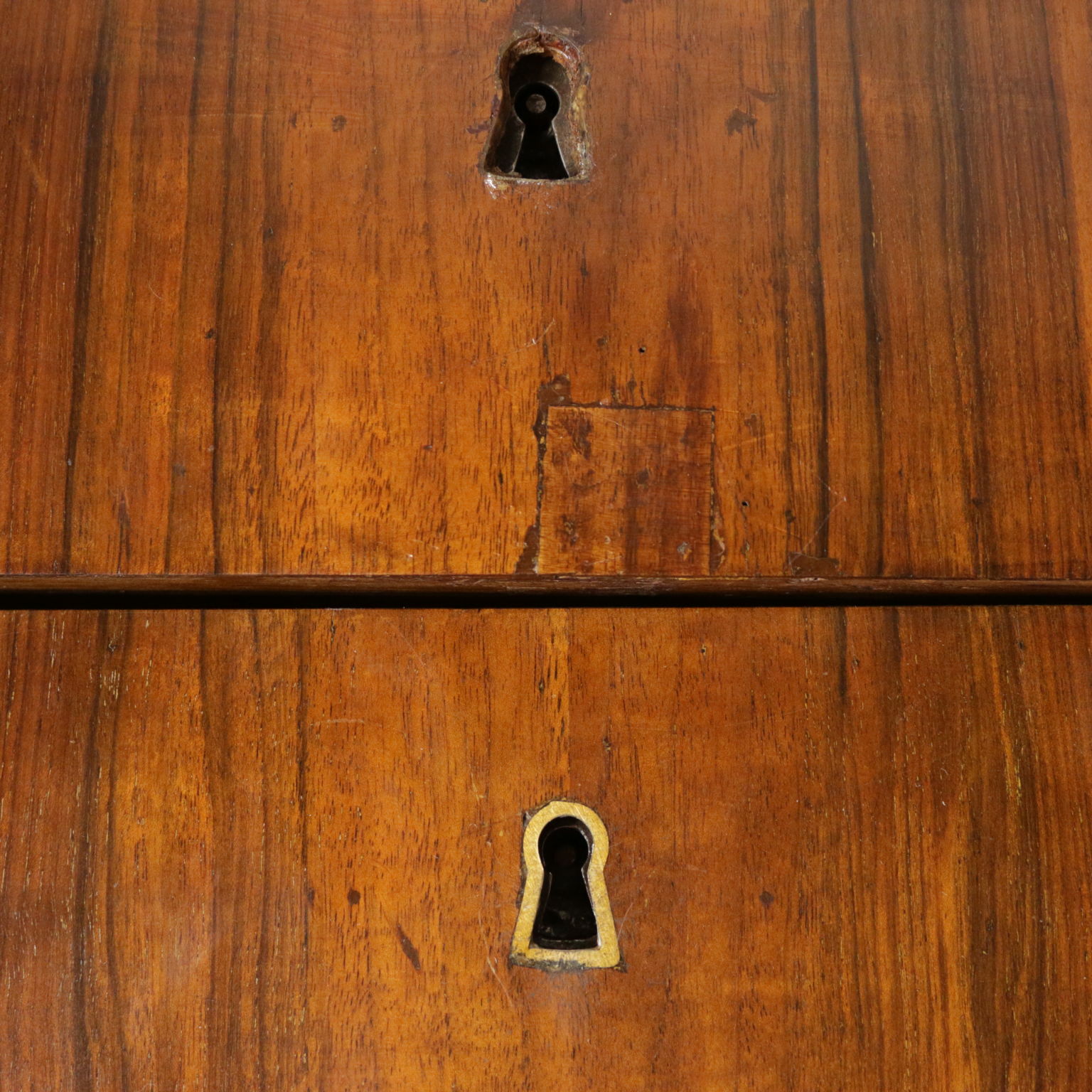 Pecho de cajones Imperio dos cajones más uno ligeramente la proyección. Pilares con medias columnas con capiteles de bronce y los pies al zócalo.