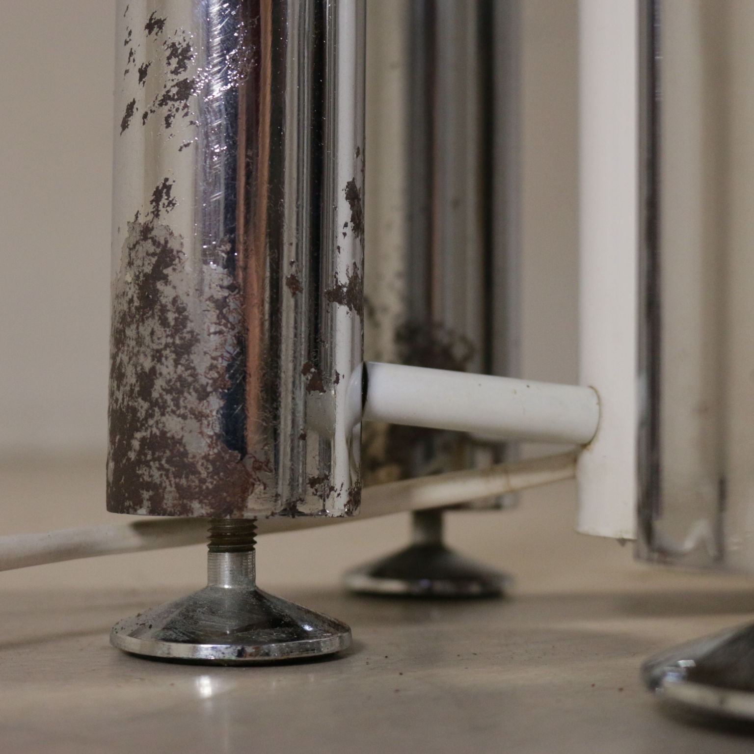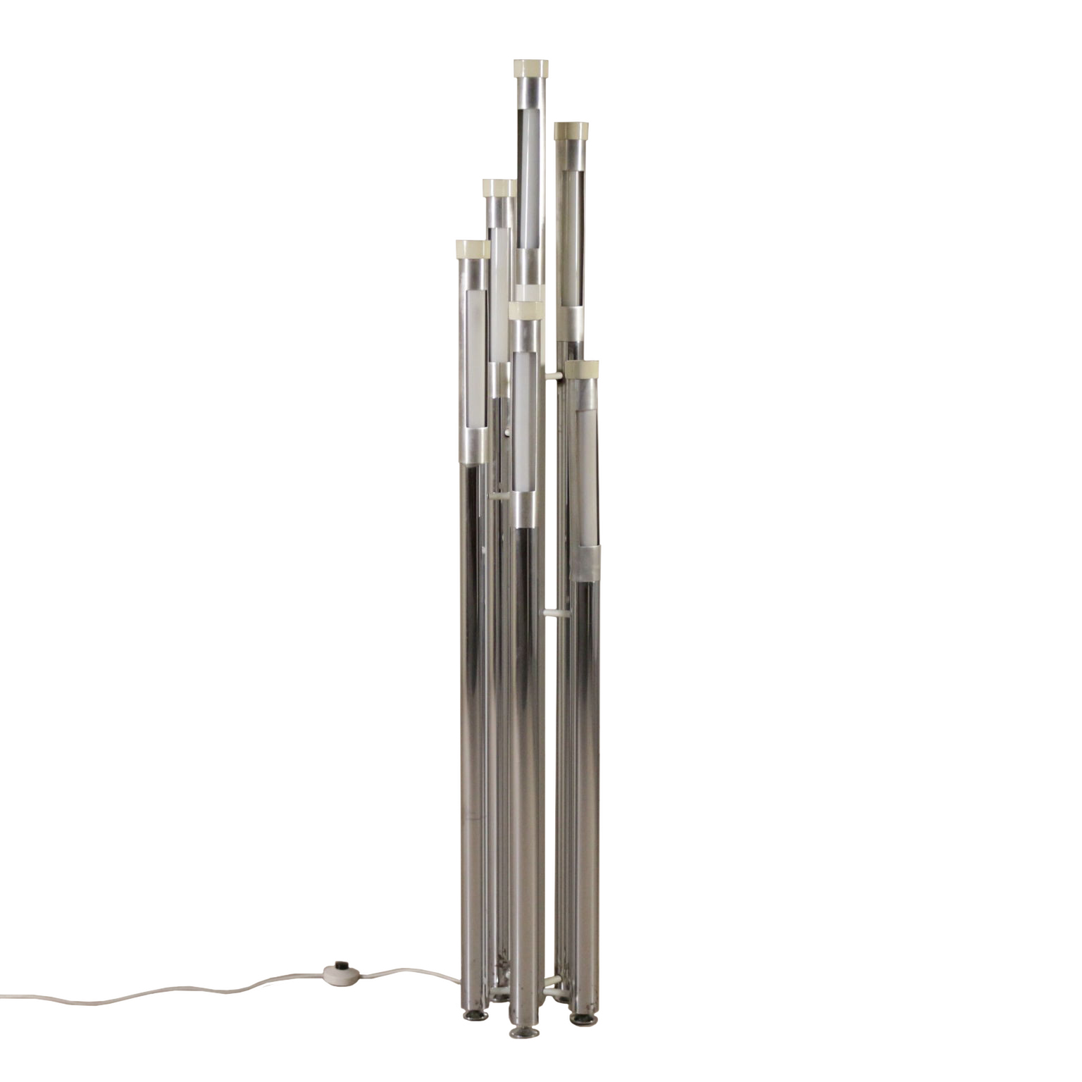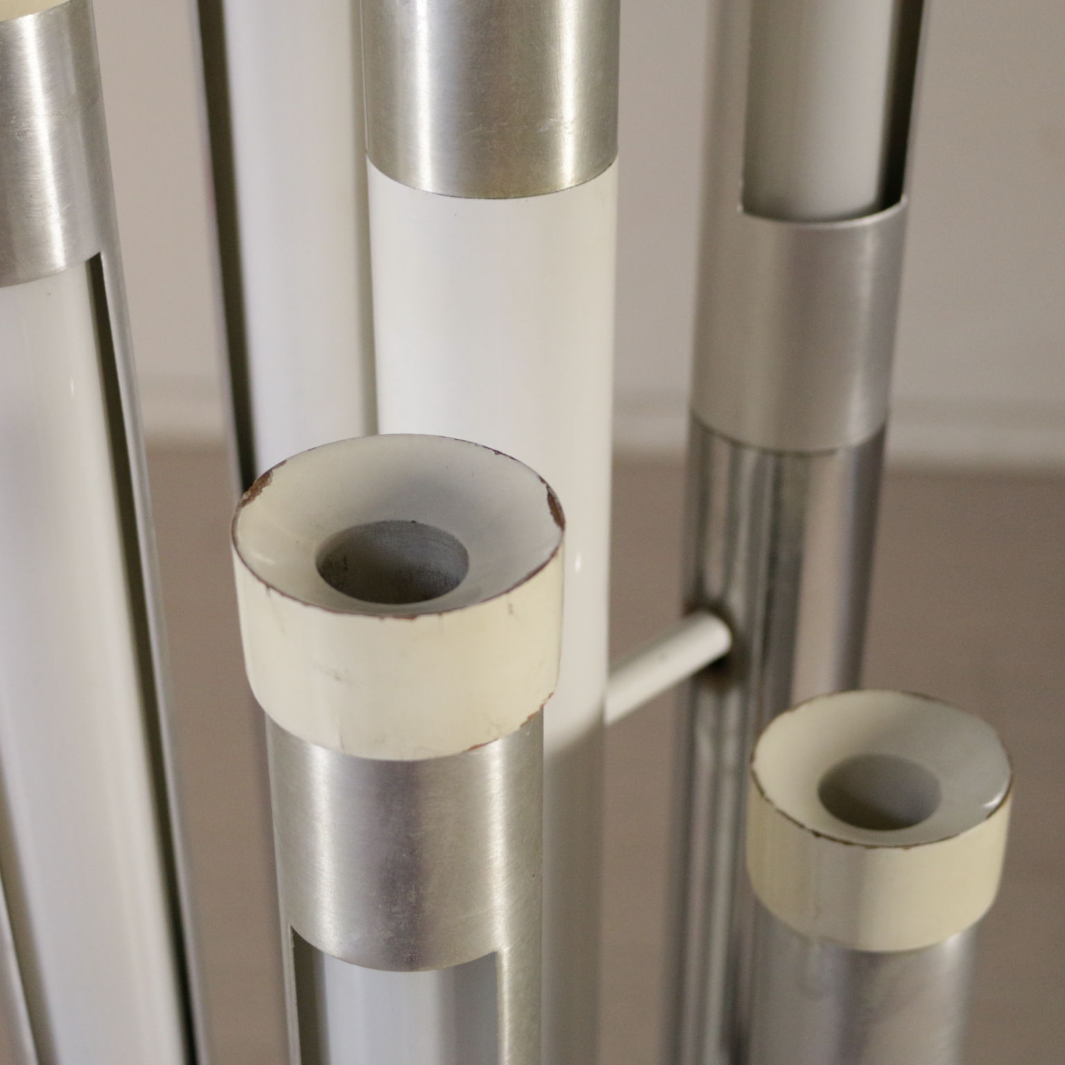 Lámpara de piso; el metal cromado y aluminio lacado.