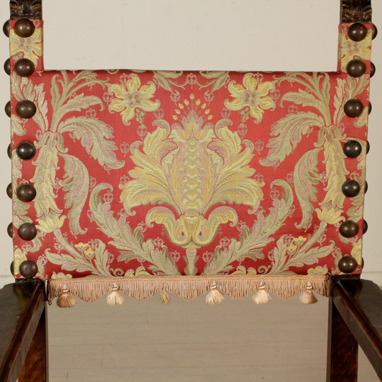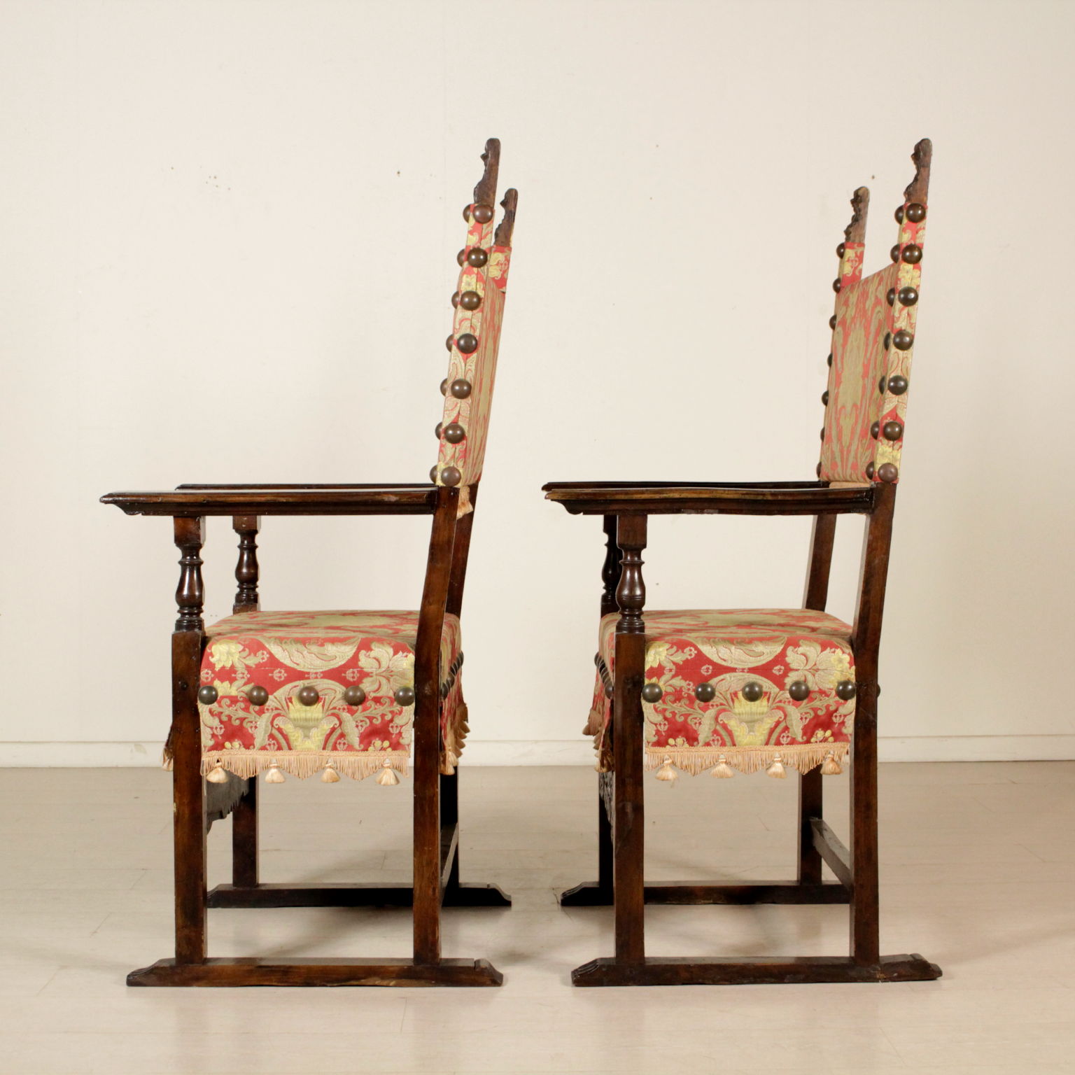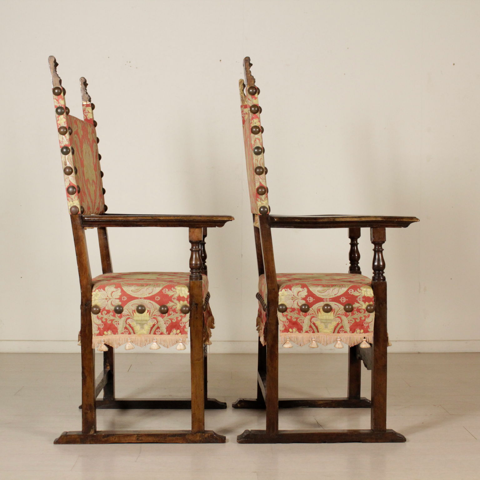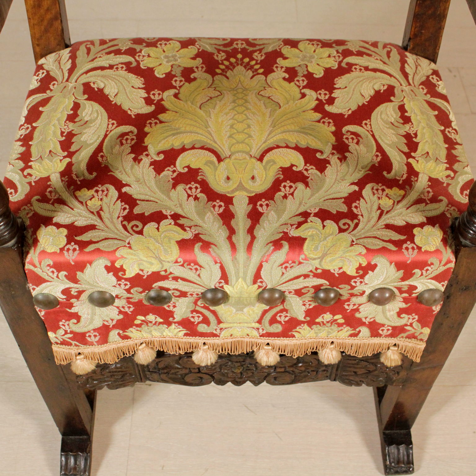 Par importante sillas tienen amplia brazos rectos verticales con activado. Las carpetas están finamente talladas. El asiento y el respaldo con los terminales de los muebles tapizados. Hecho restauraciones.