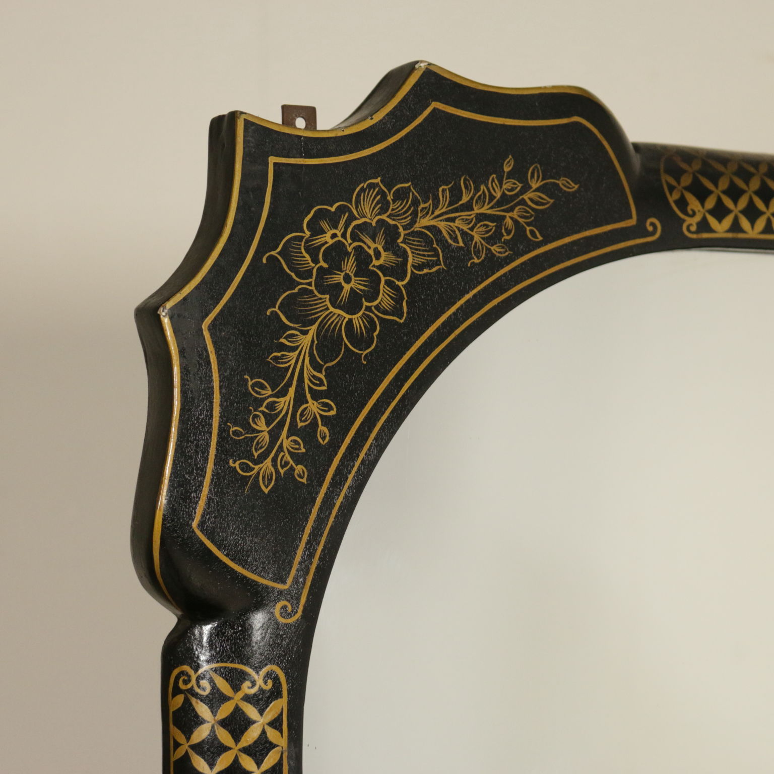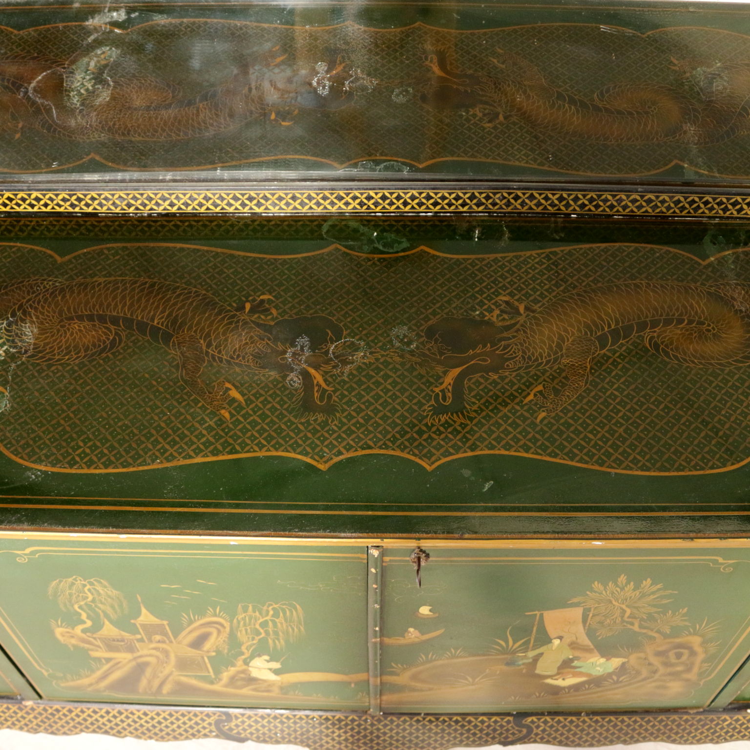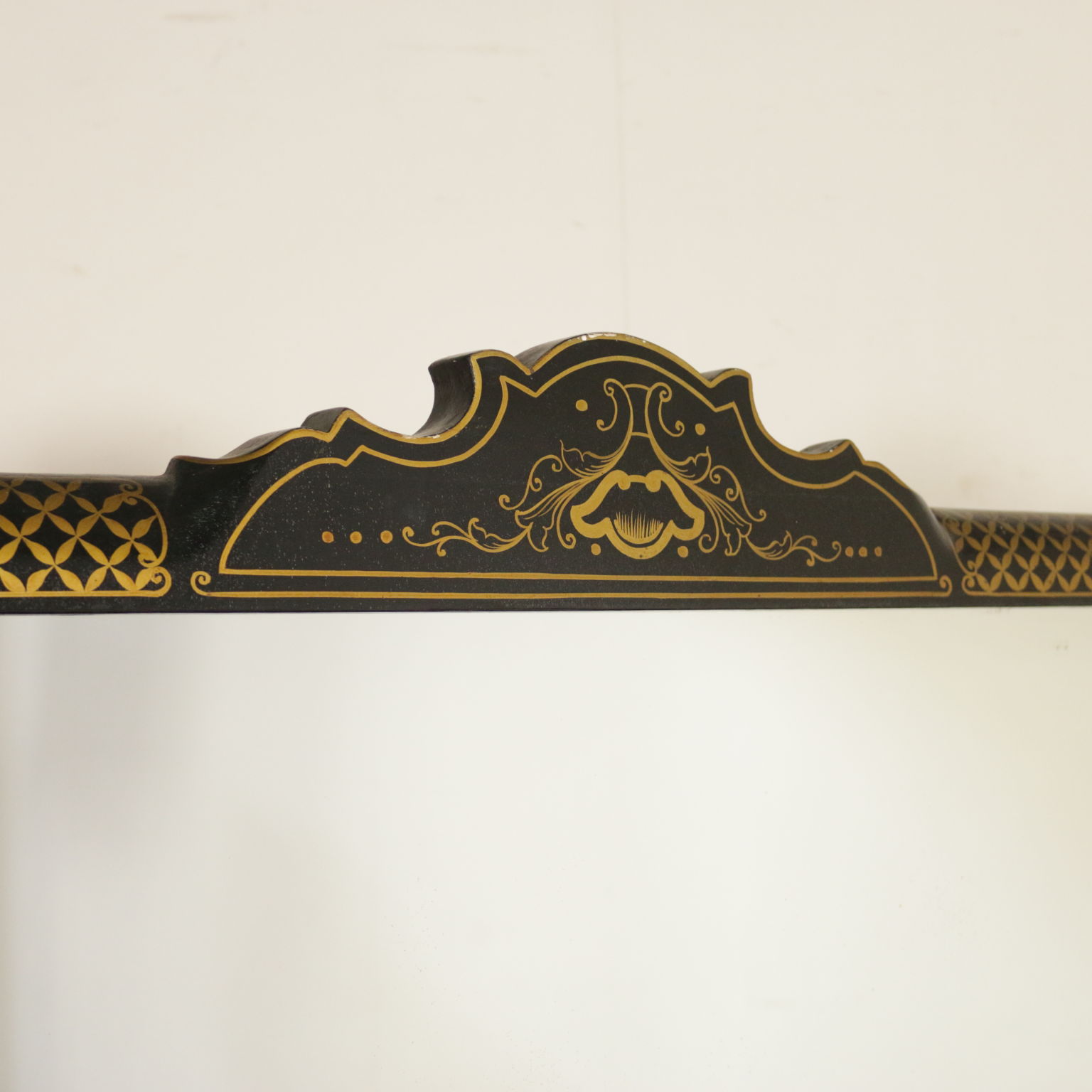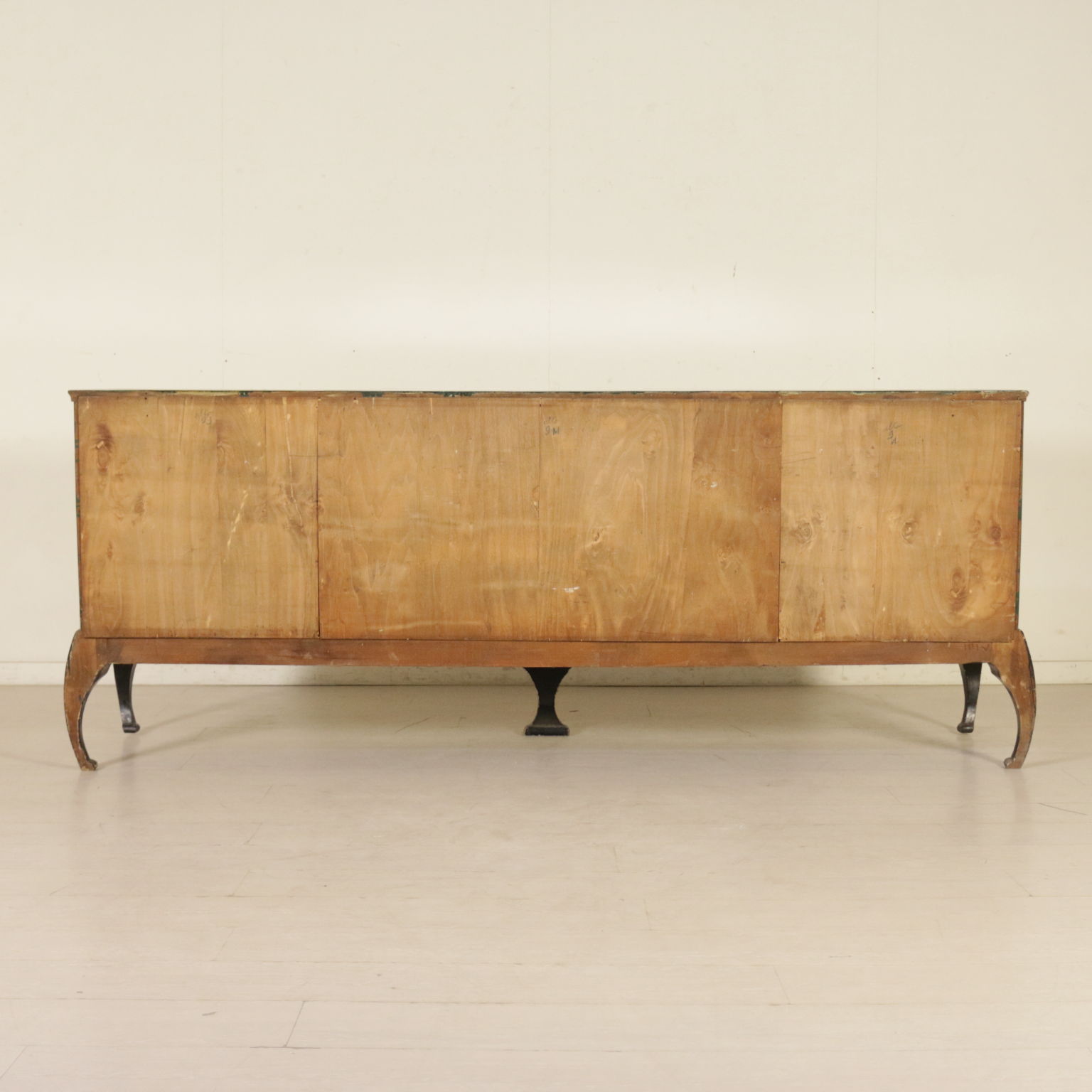 Directamente desde el cárter por la línea ondulada; tiene cuatro puertas y un espejo. Lacado y decorado en policromada con motivos de la chinoiserie.