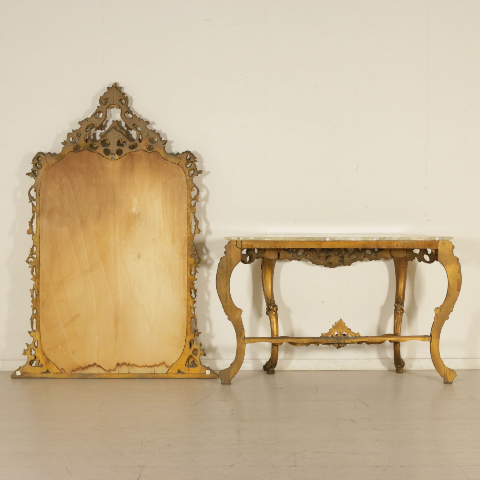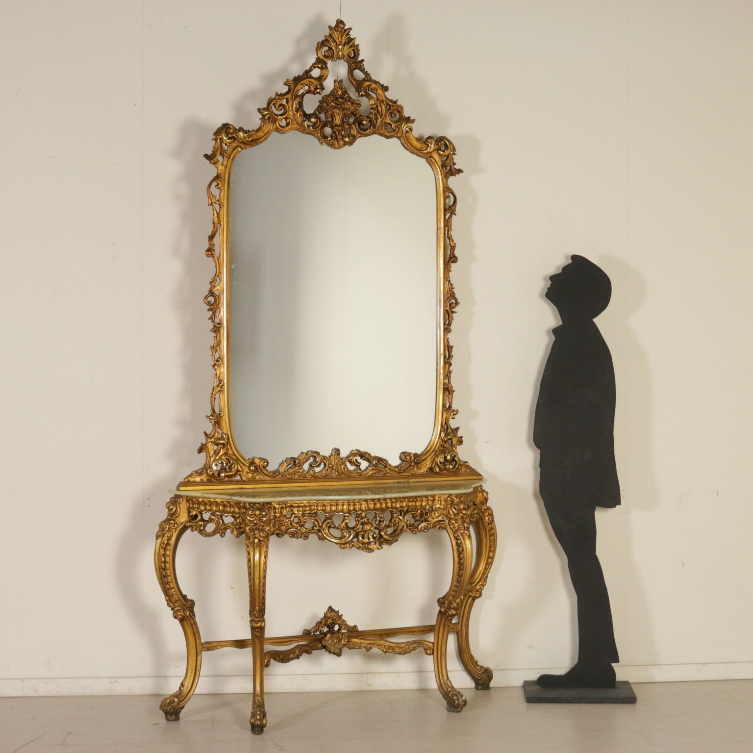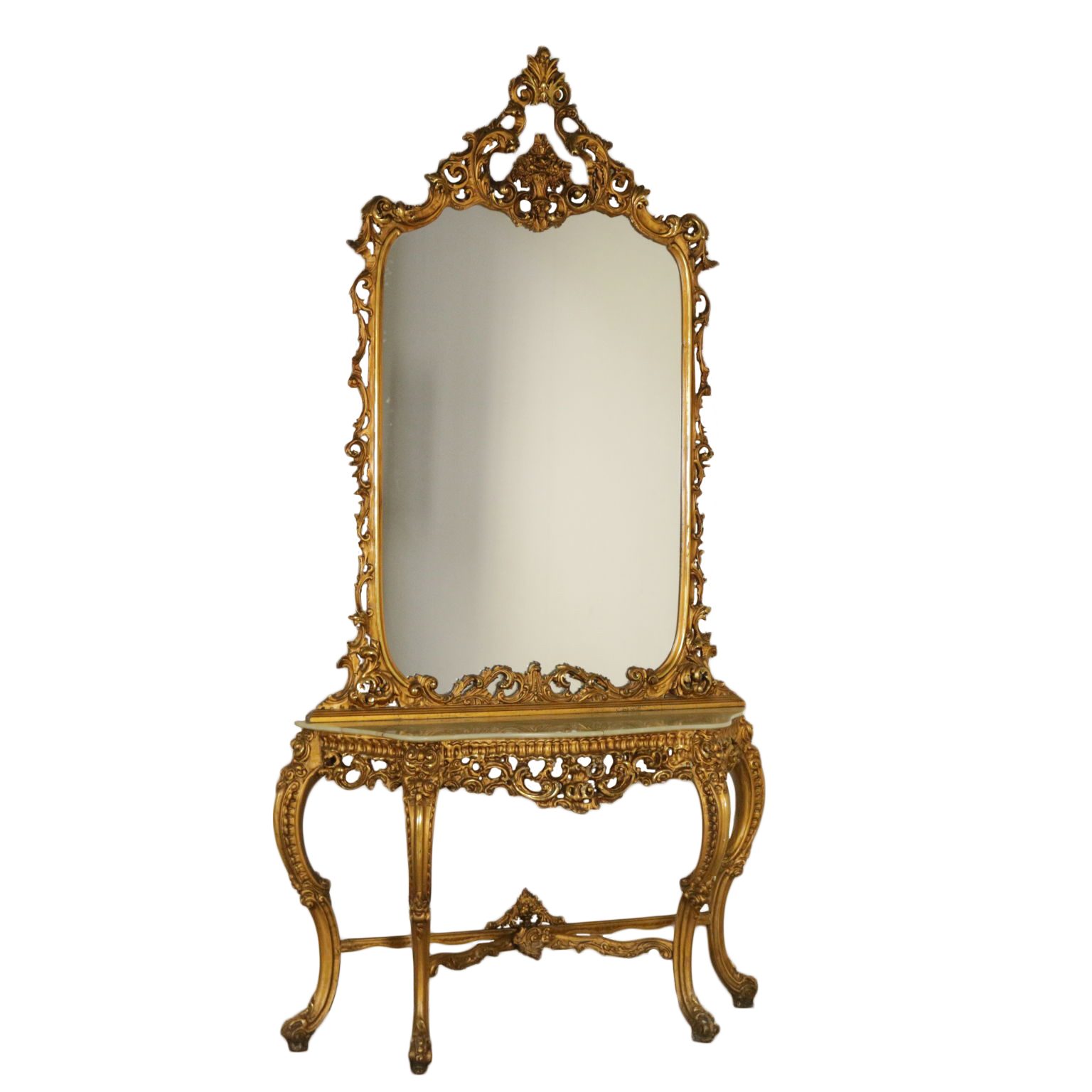 Consola con espejo la línea de movimiento. Ricamente tallado. Piso en mármol.