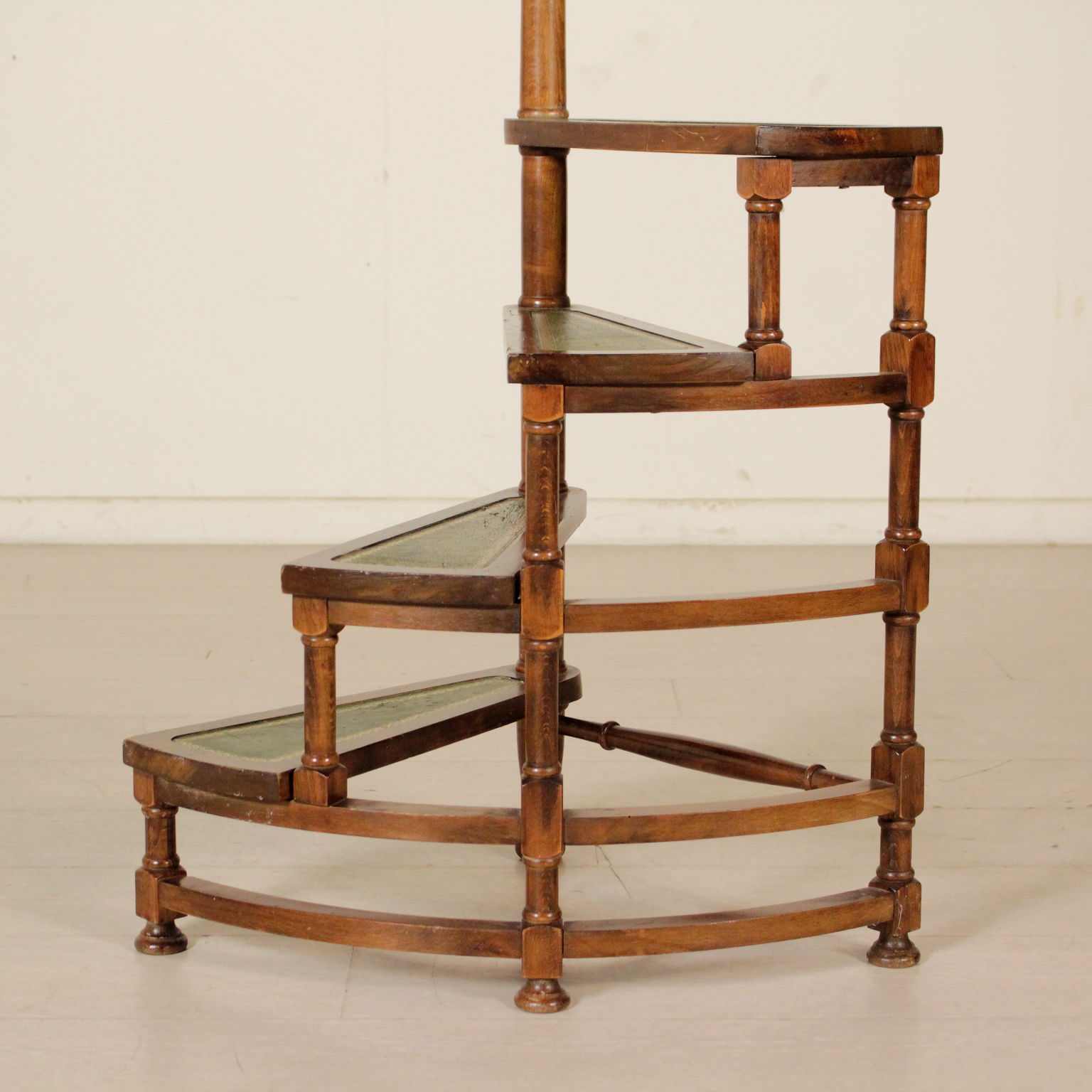 Escalera Circular de la biblioteca. Consta de cuatro pasos y la parte superior del mástil de la perilla gira asas.