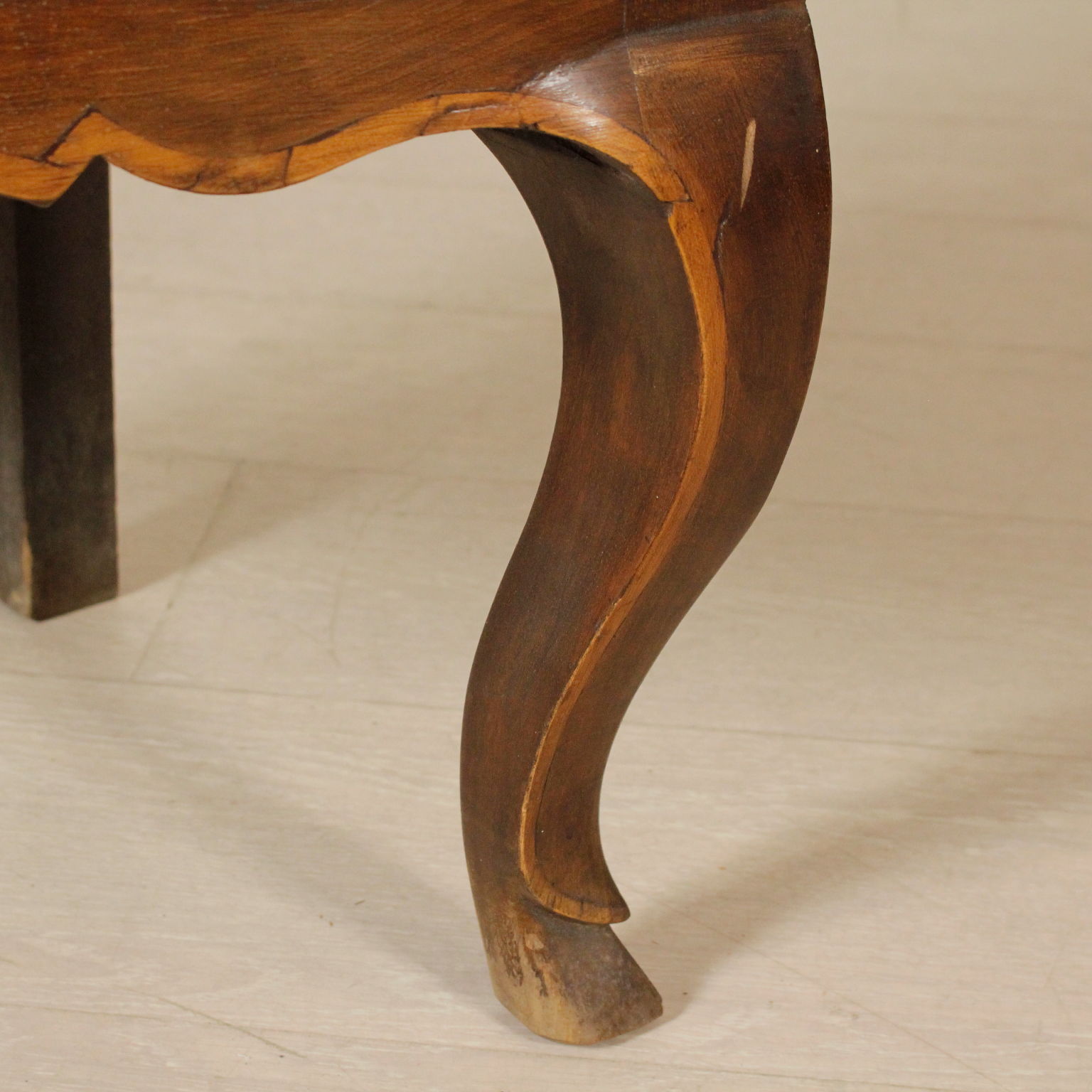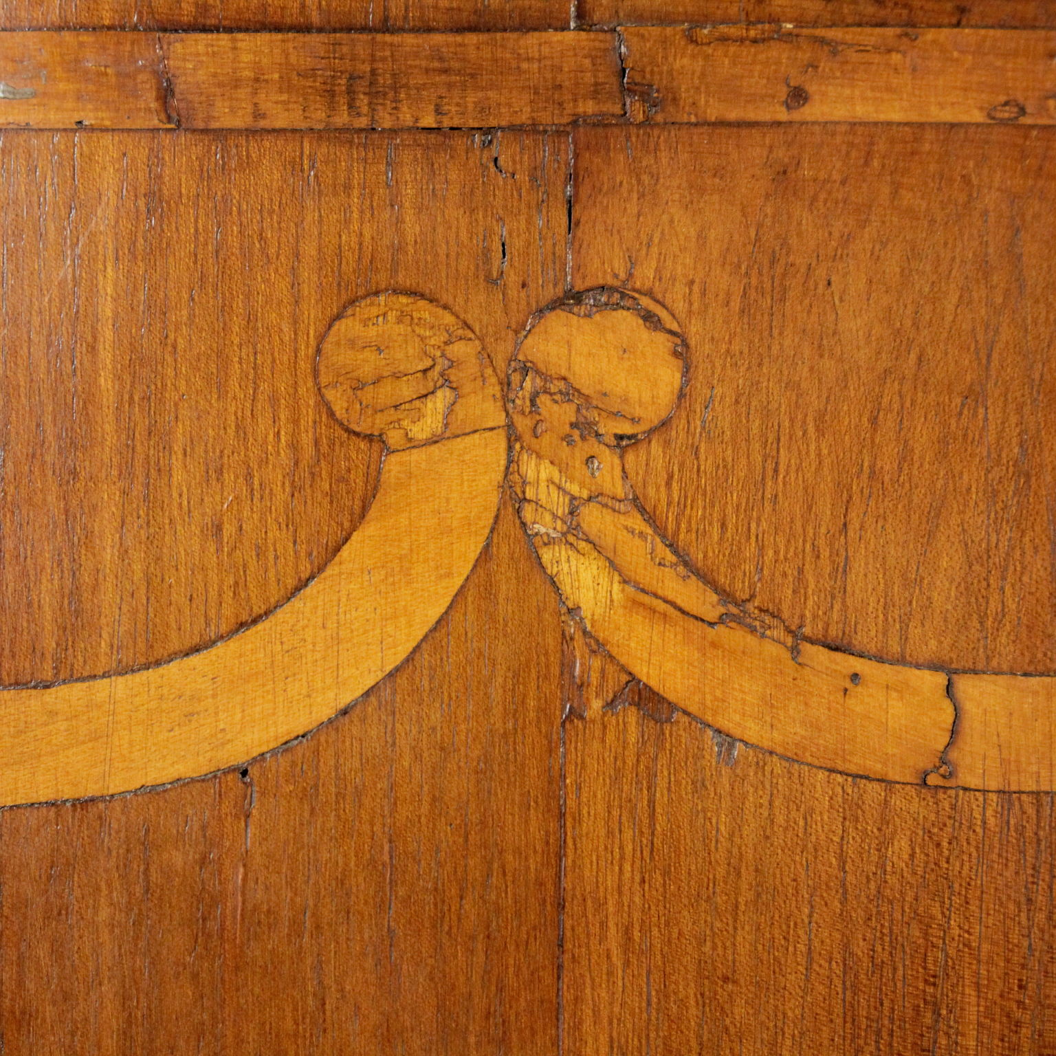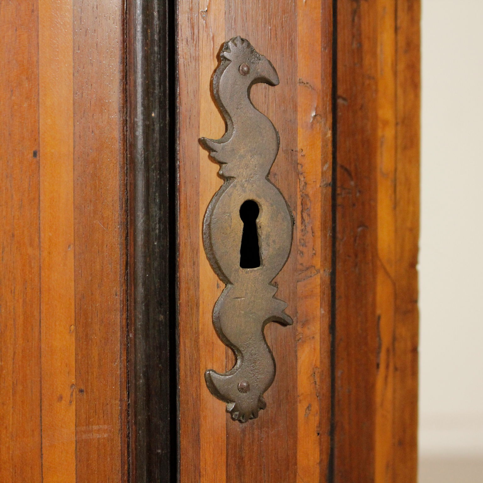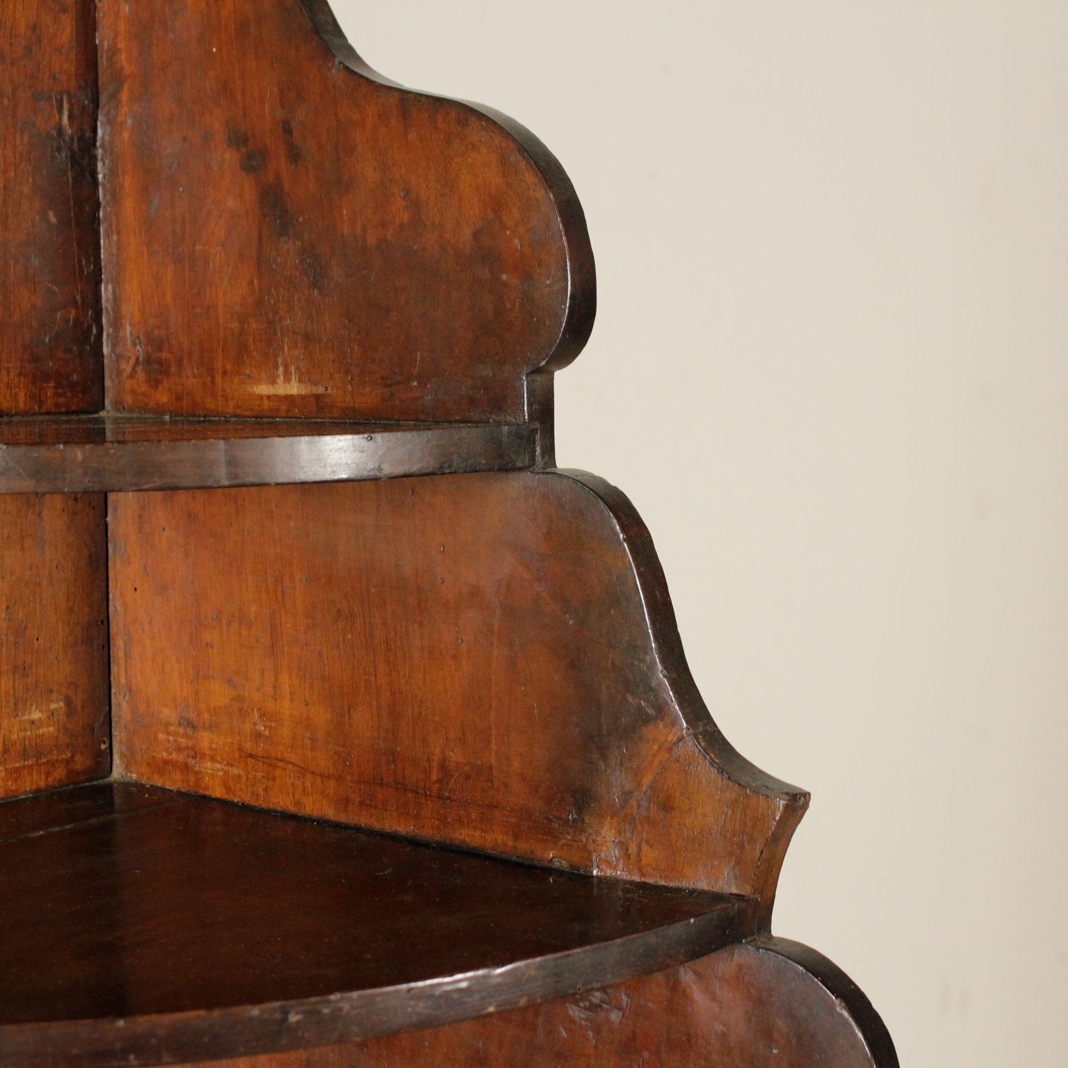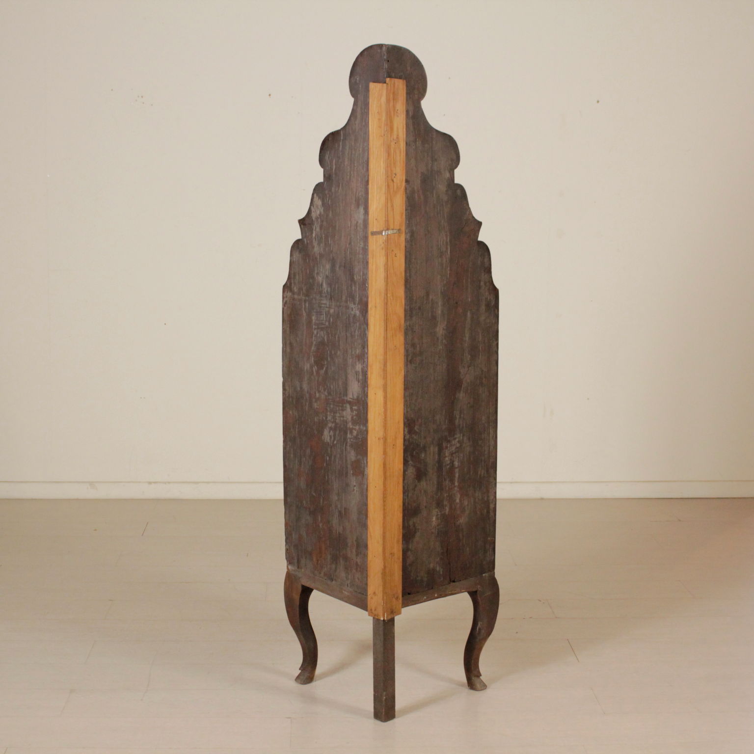 Esquina semi-circular recto piernas mueve. Tiene una puerta con marcos ebanizzate. Copete moldeada estantes. De arce, inlays.