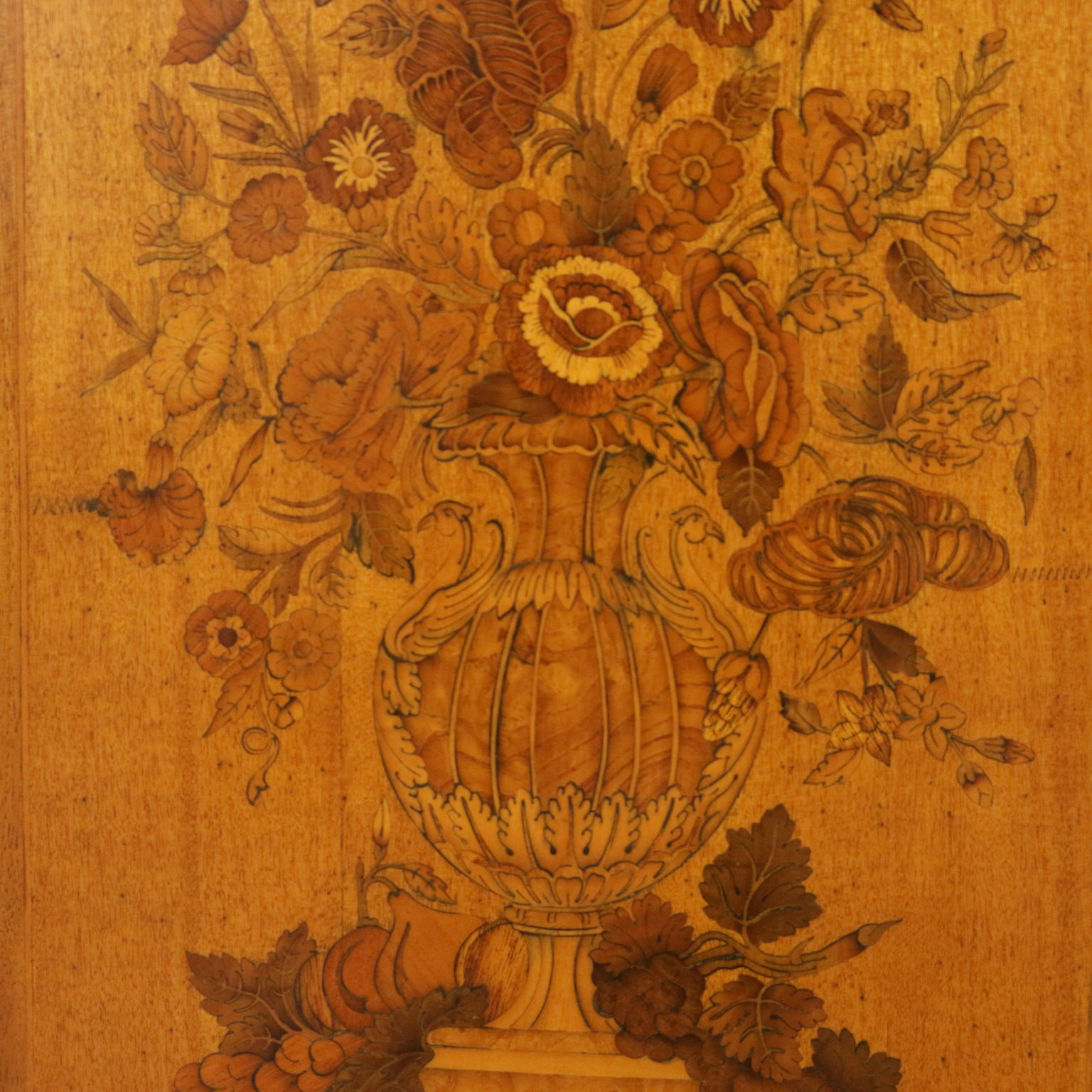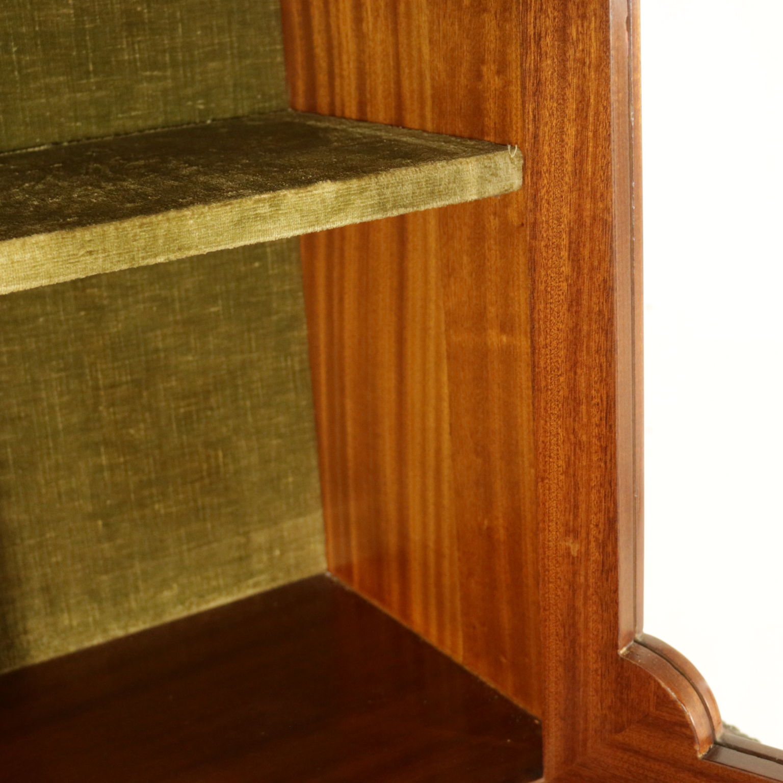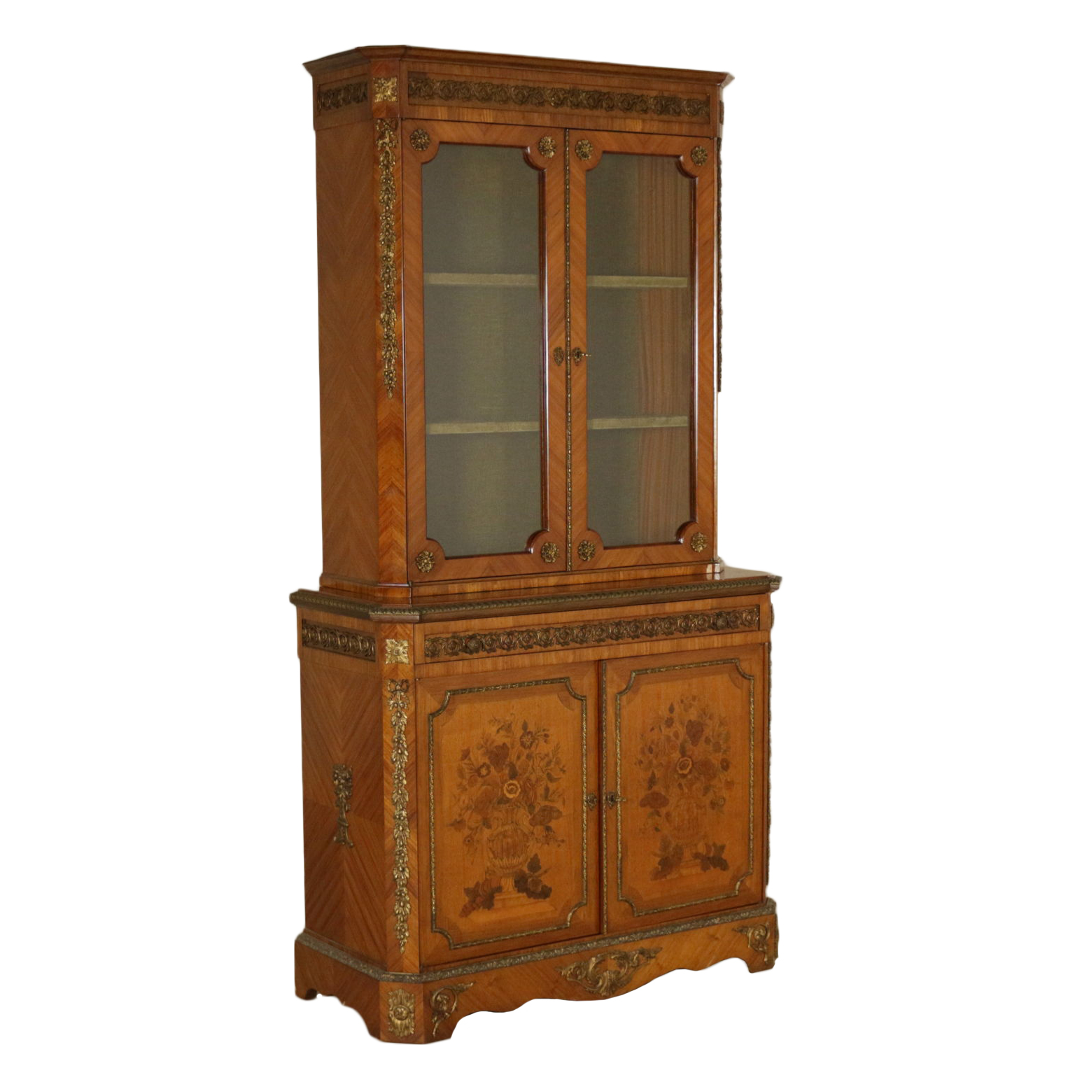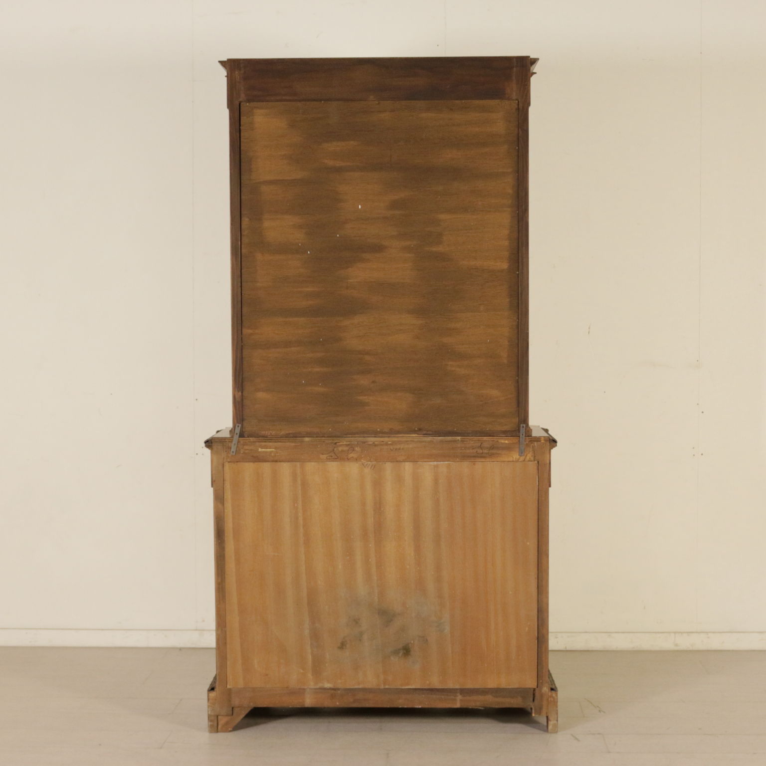 Aparador con dos puertas y un cajón, se ha planteado con dos puertas con vidrio. Los paneles de las puertas ricamente con incrustaciones. Cornisas y frisos de bronce.