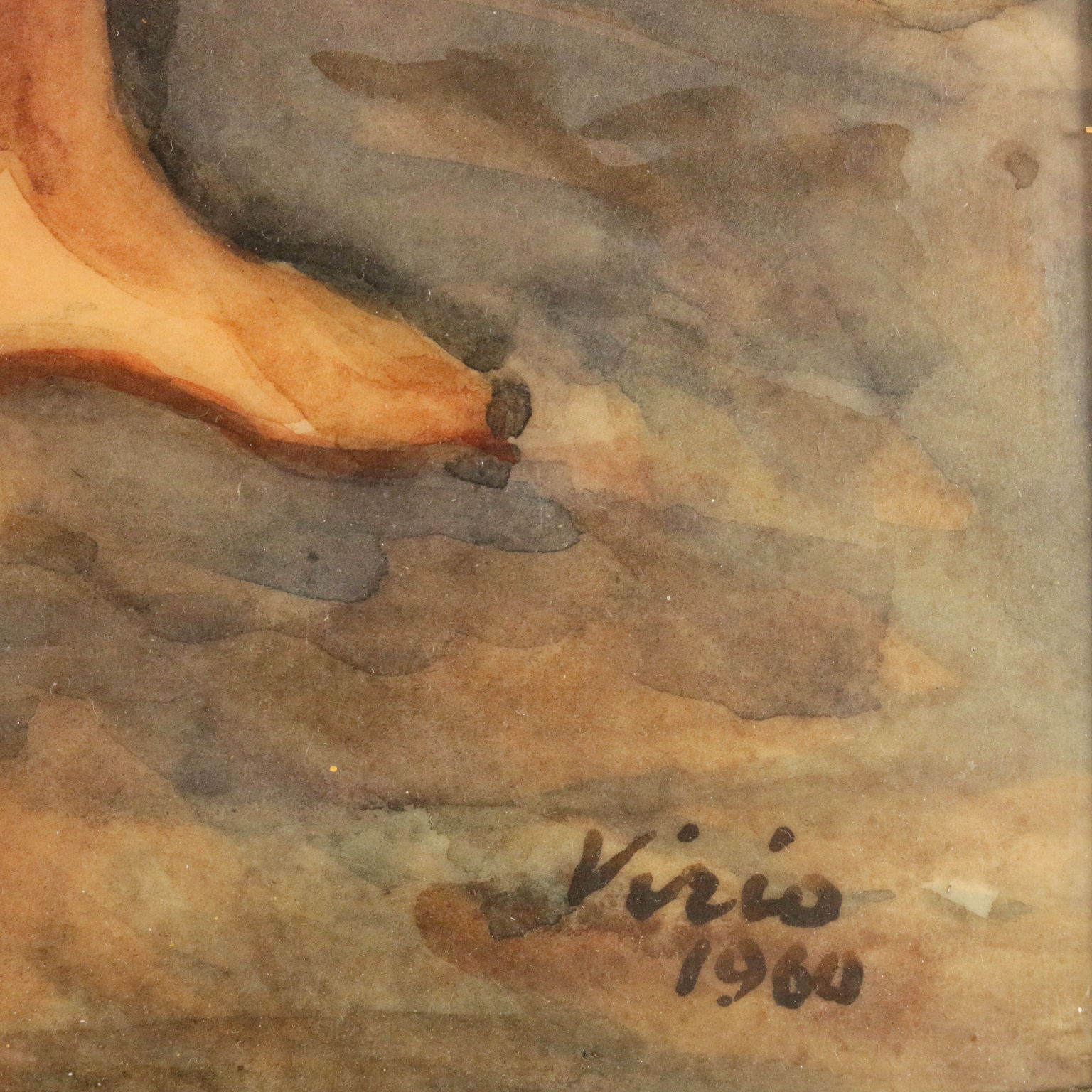 Acuarela sobre papel. Firmado y fechado en 1960 inferior derecha. Virius De Savona, es el nombre artístico de Víctor, Agamenón, fue el fundador del grupo de acquarellisti en liguria. La obra pertenece a la época cuando, habiéndose establecido de forma permanente en Albisola, él con su mayor actividad y creatividad, fomentada por la asistencia de los principales artistas de la época (Sassu, Capogrossi,Fontana...). En el marco.