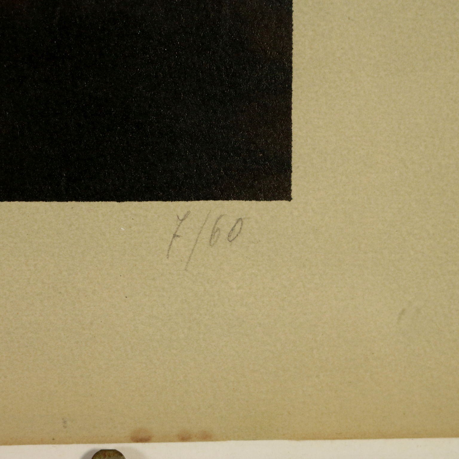 Impresión múltiple,color de la litografía. Firmado inferior izquierda, numeradas N 7/60 en la parte inferior derecha. Esto también sello en seco, "La prensa" de Milán. Mancha en la parte inferior izquierda de la página. En el marco de la vista.