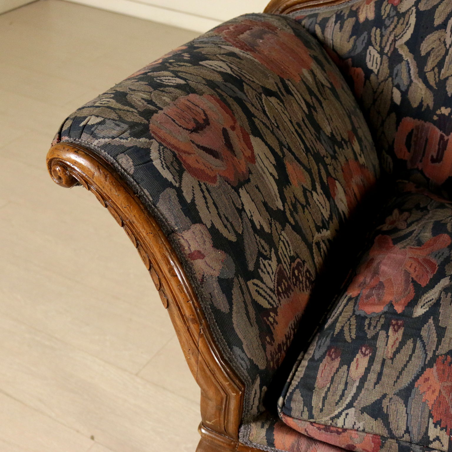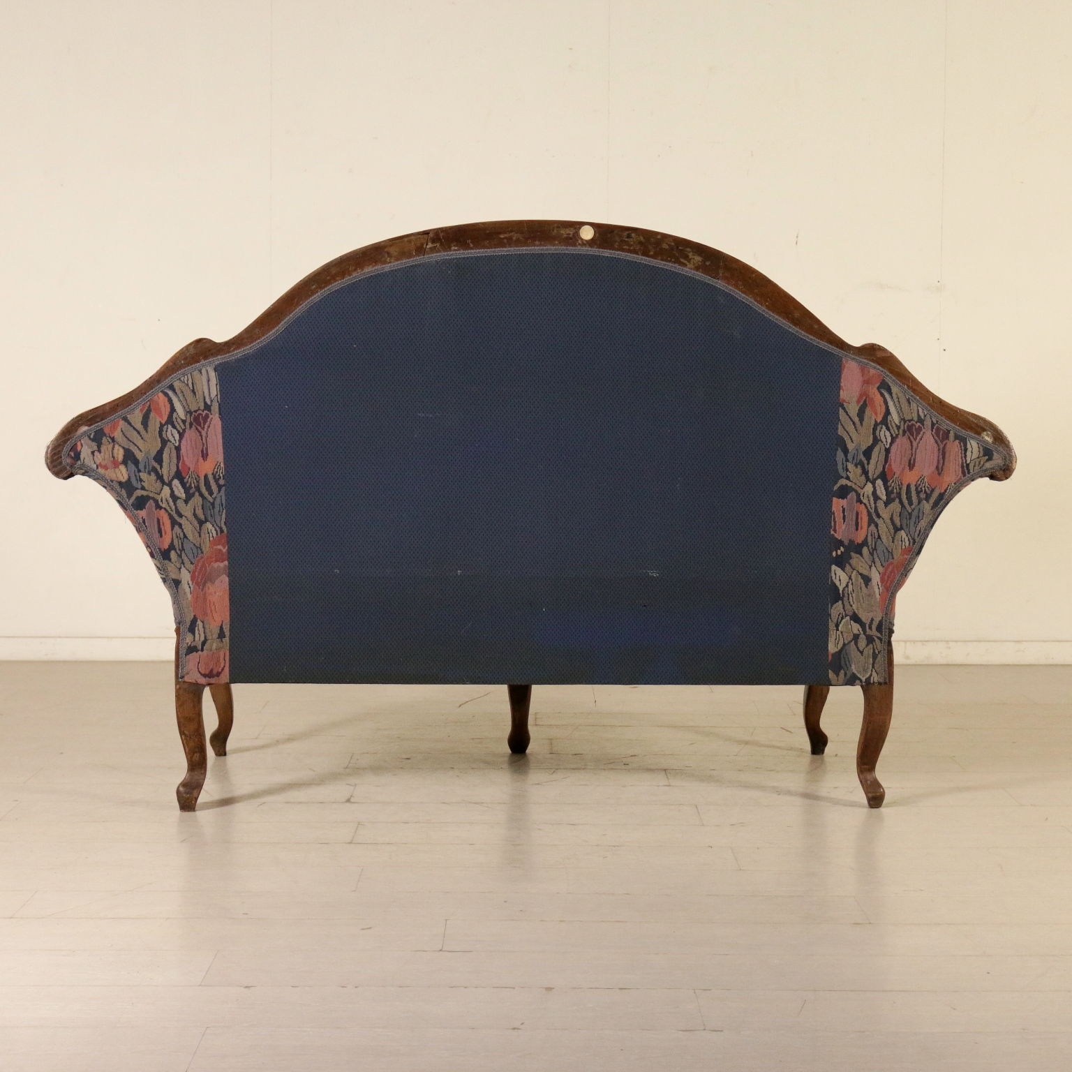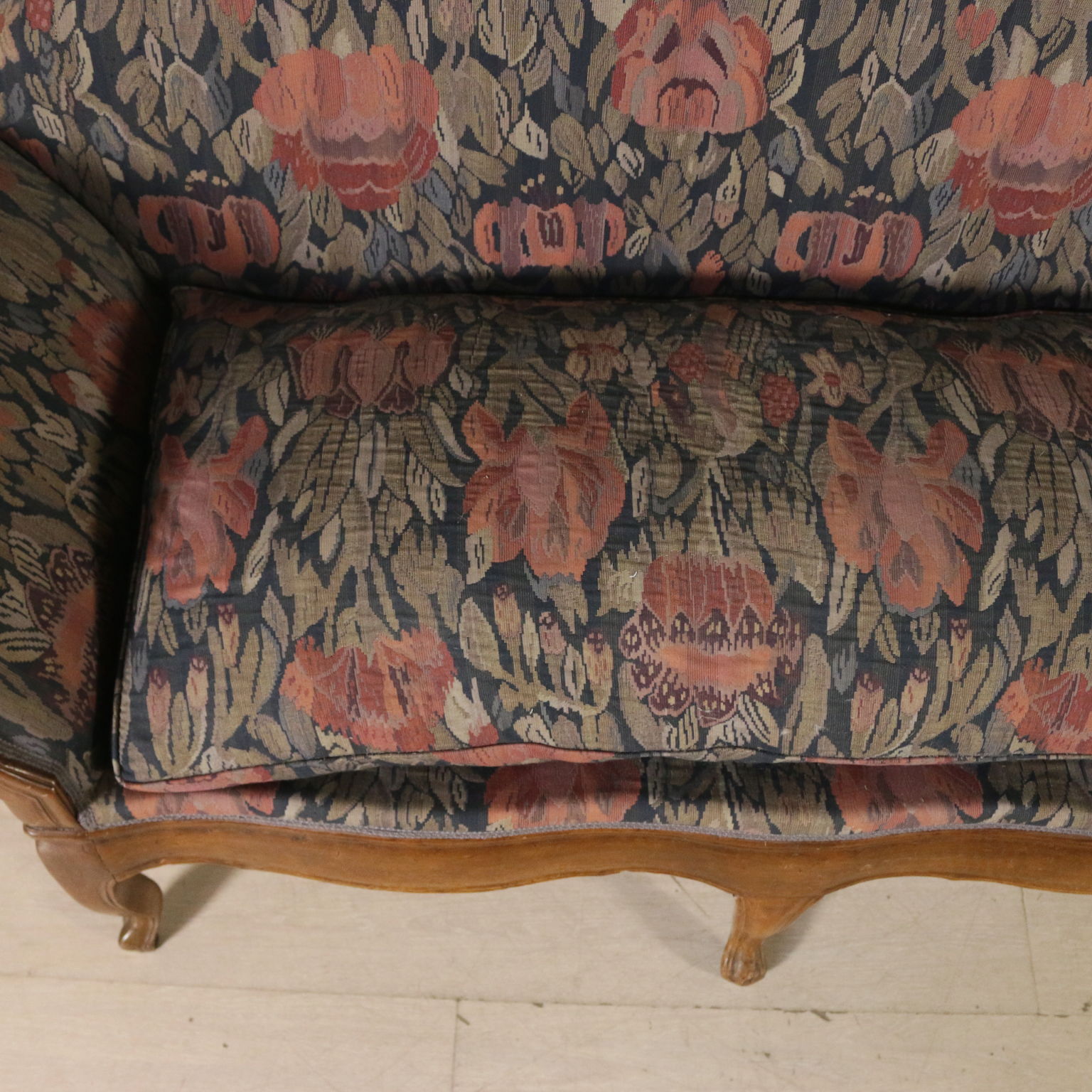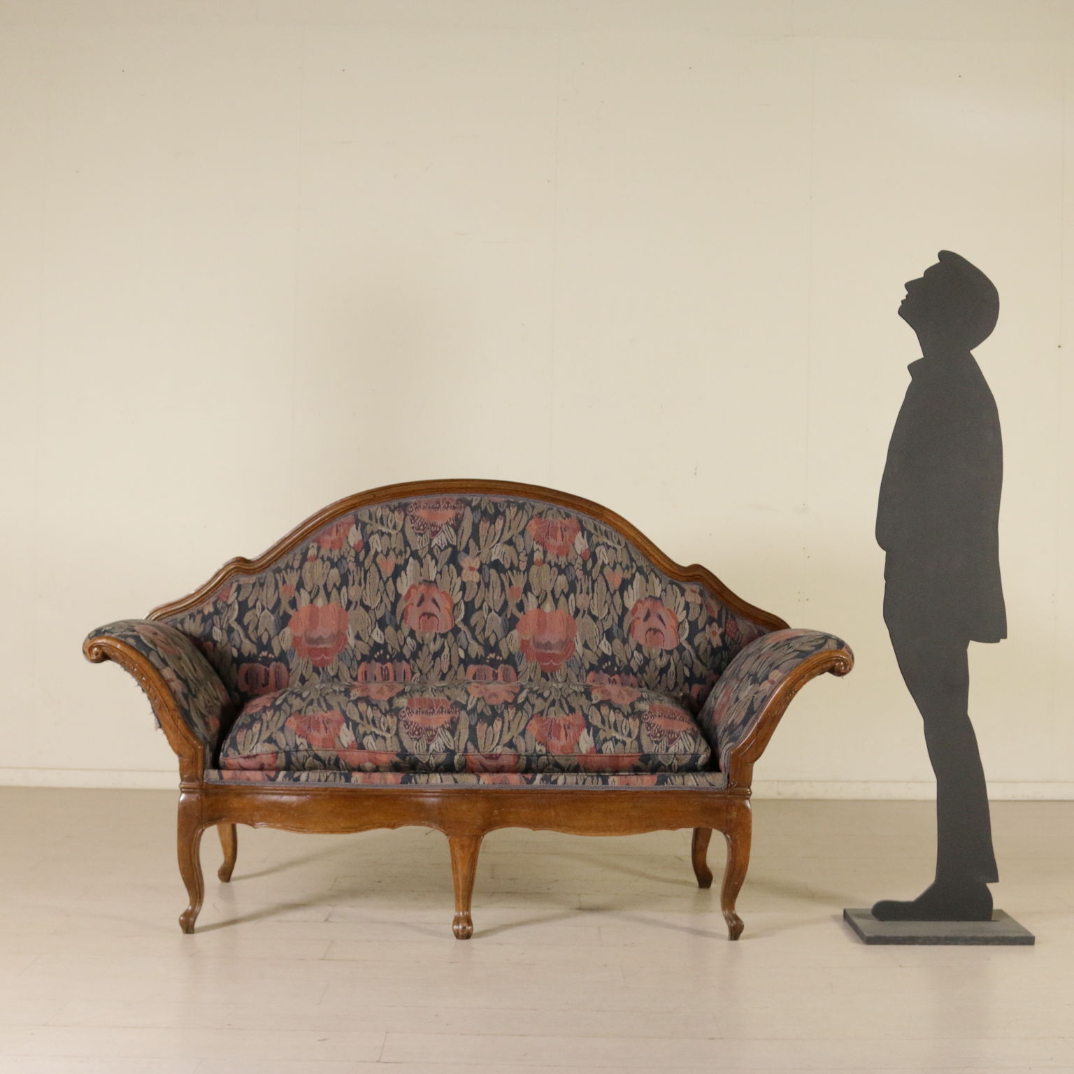 El sofá se trasladó en el frente; tiene brazos fuertemente la proyección de los llamados 'paperas'. Respaldo y asiento tapizado.