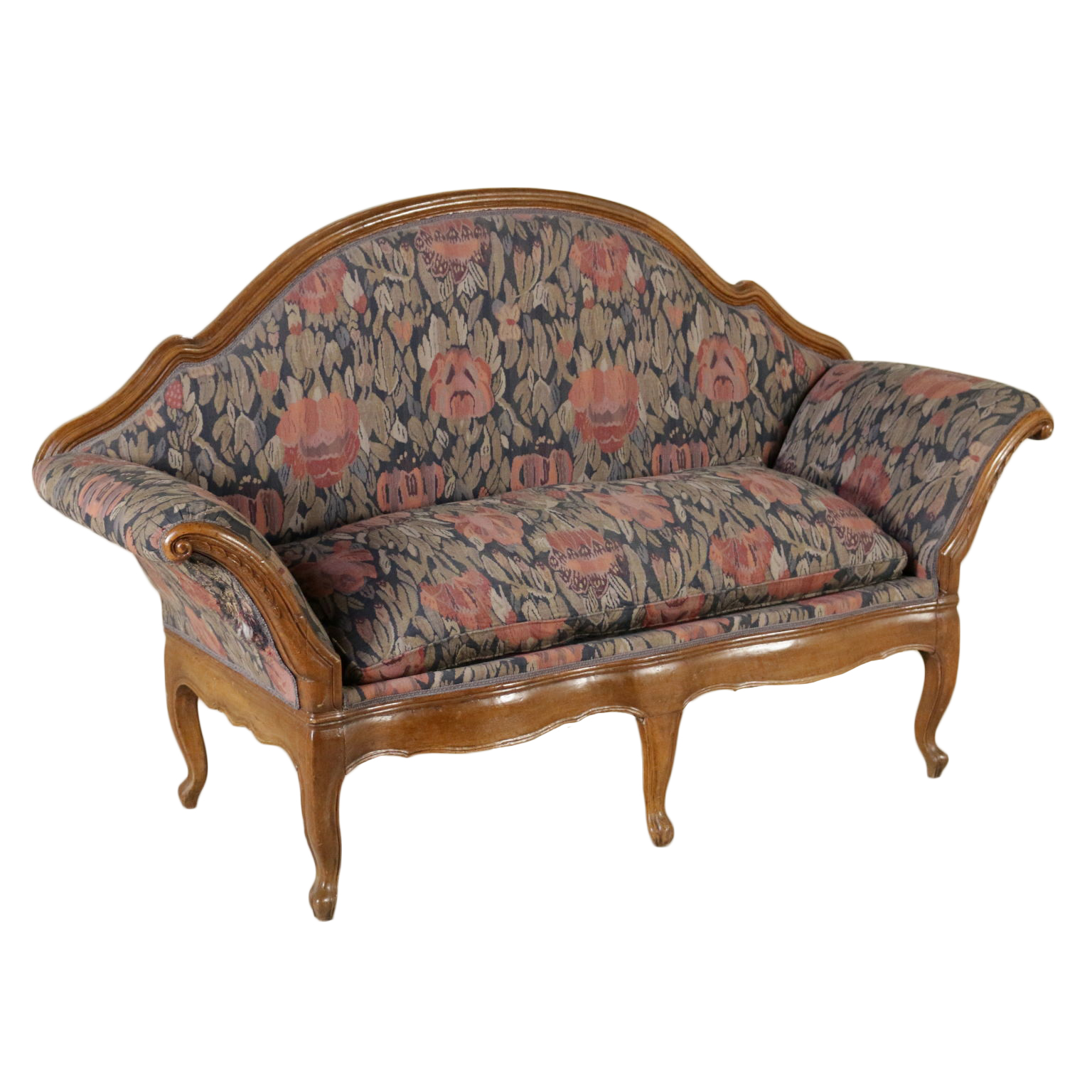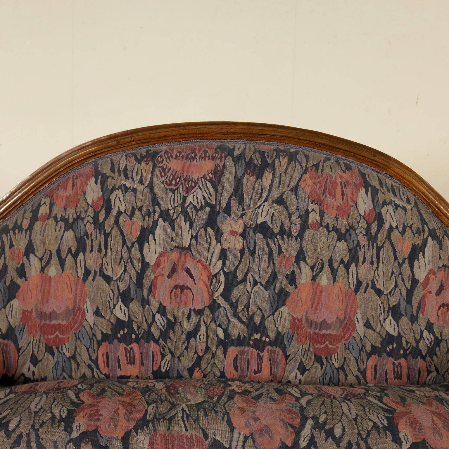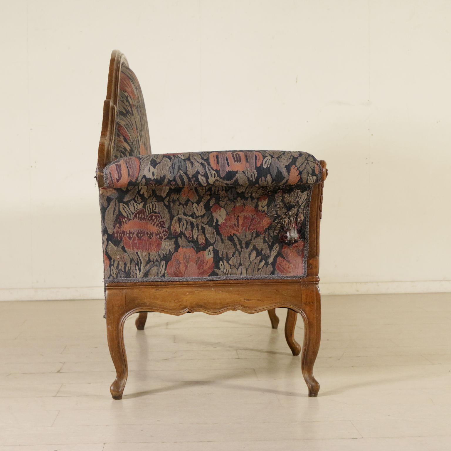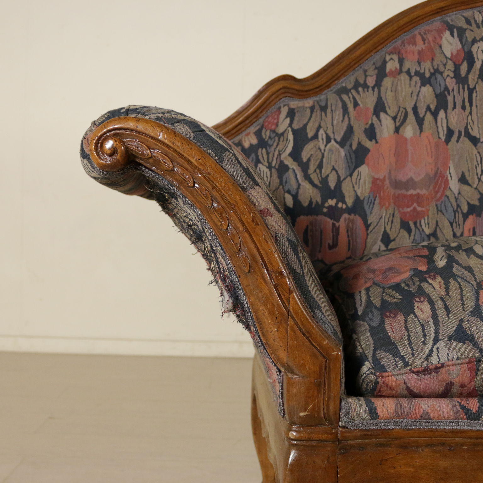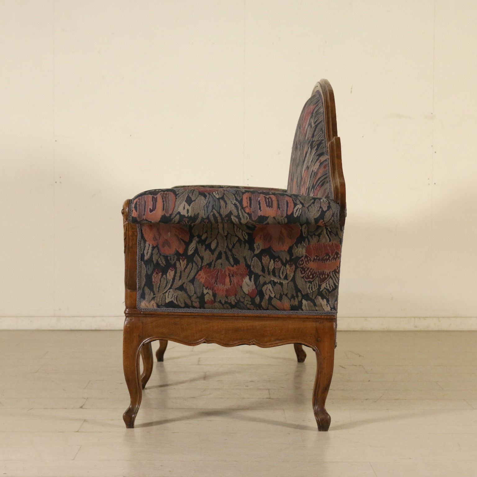 El sofá se trasladó en el frente; tiene brazos fuertemente la proyección de los llamados 'paperas'. Respaldo y asiento tapizado.