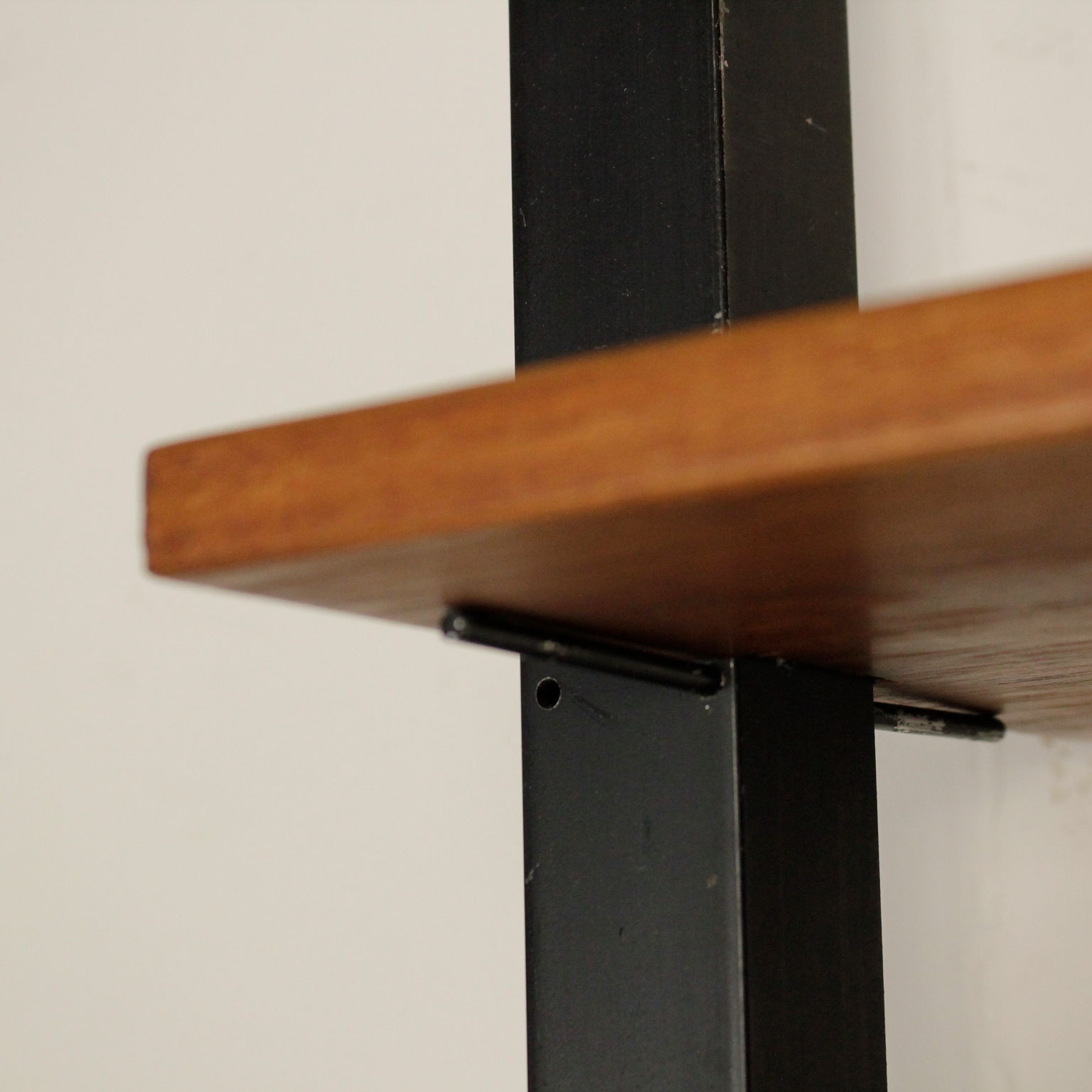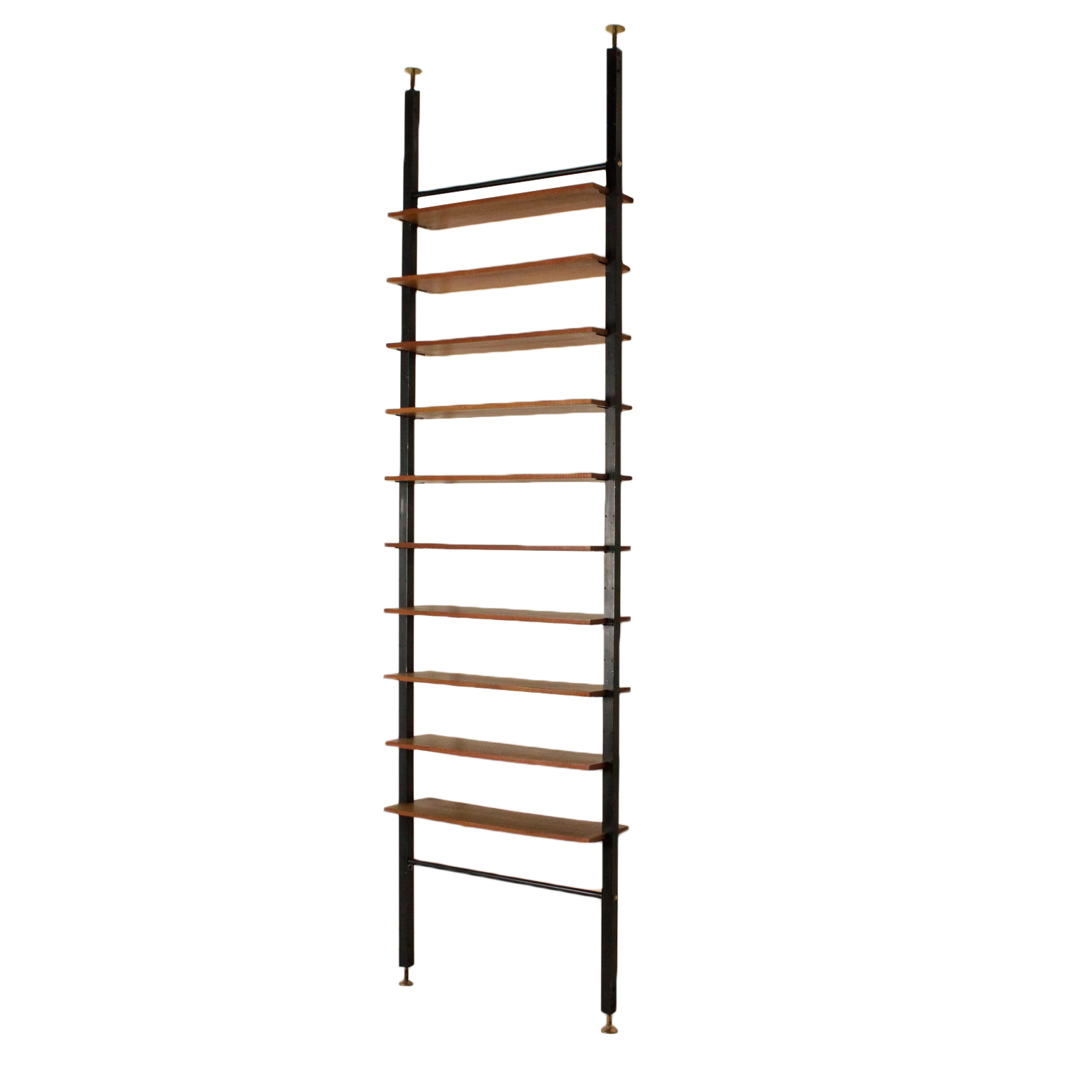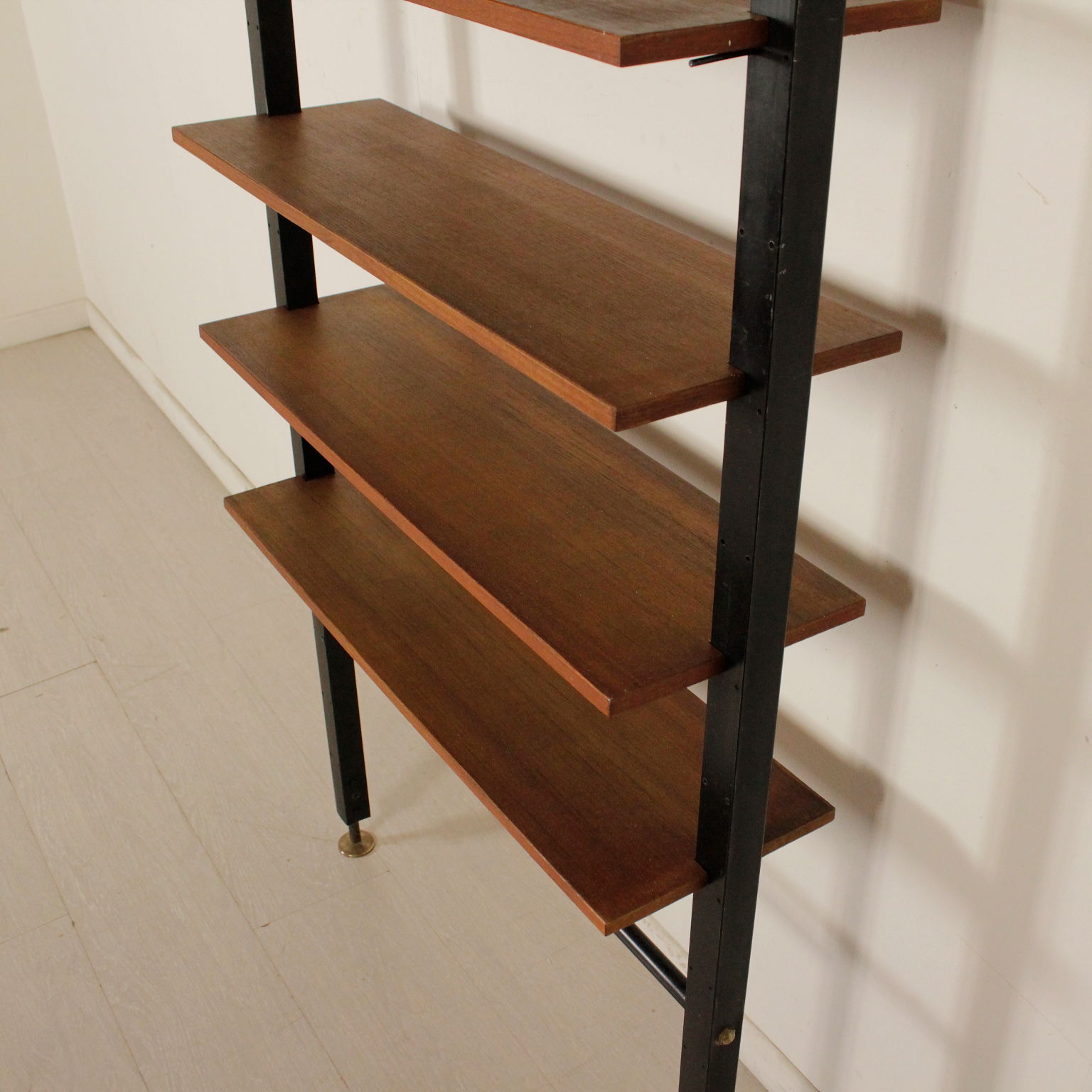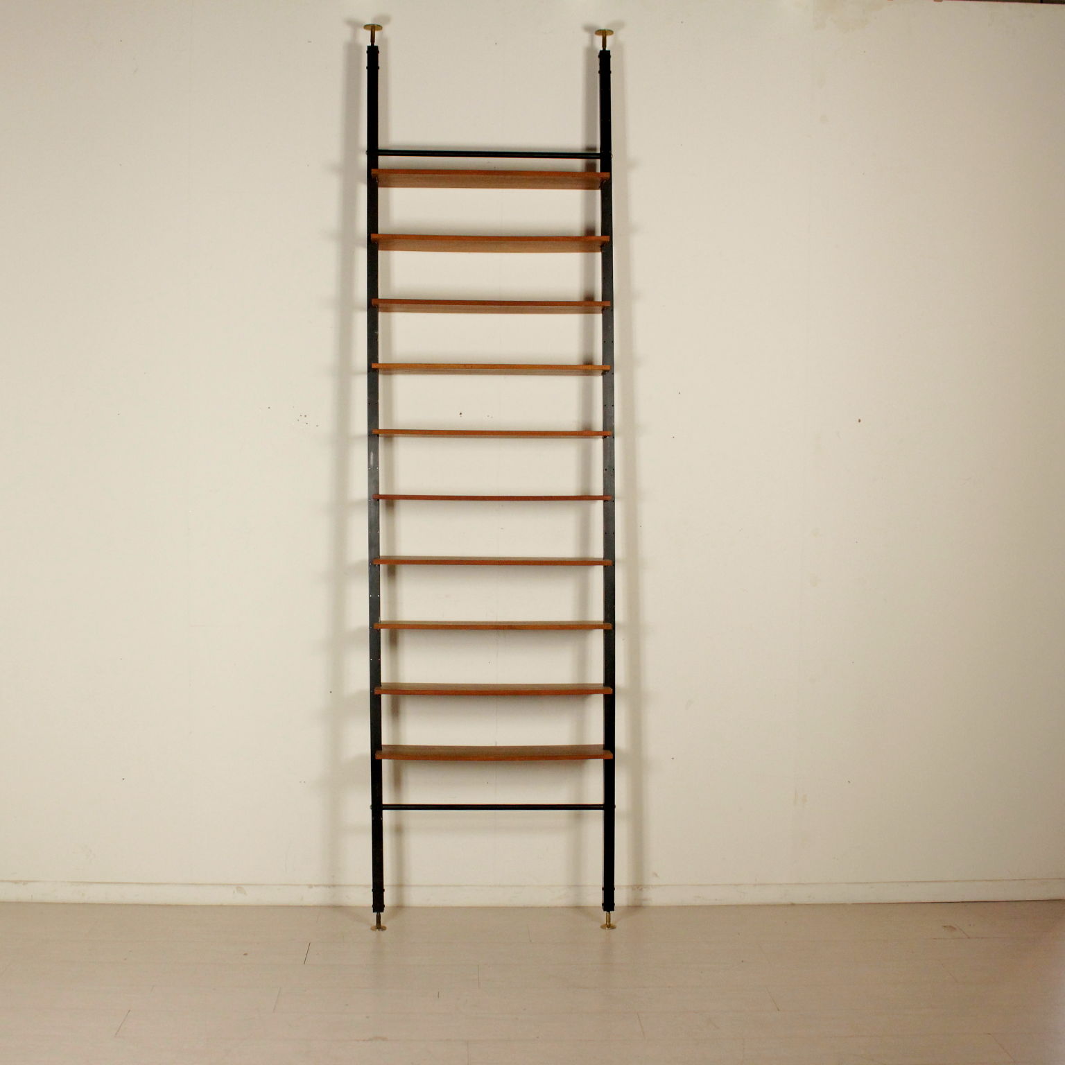 El techo de la biblioteca con estantes ajustables posición; de chapa de madera de teca, montantes metálicos con virolas de latón.