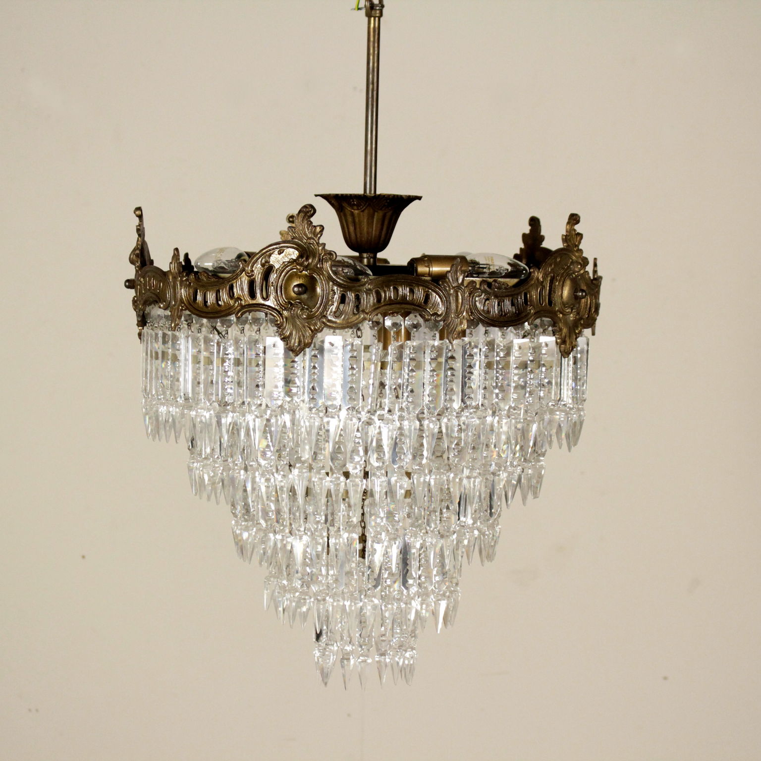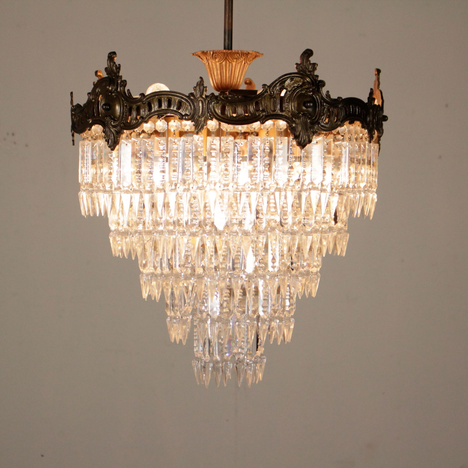Estilo de la lámpara de araña con cristales colgantes en la mayoría de los pedidos. Envuelve trabajado en bronce. Revisado.
