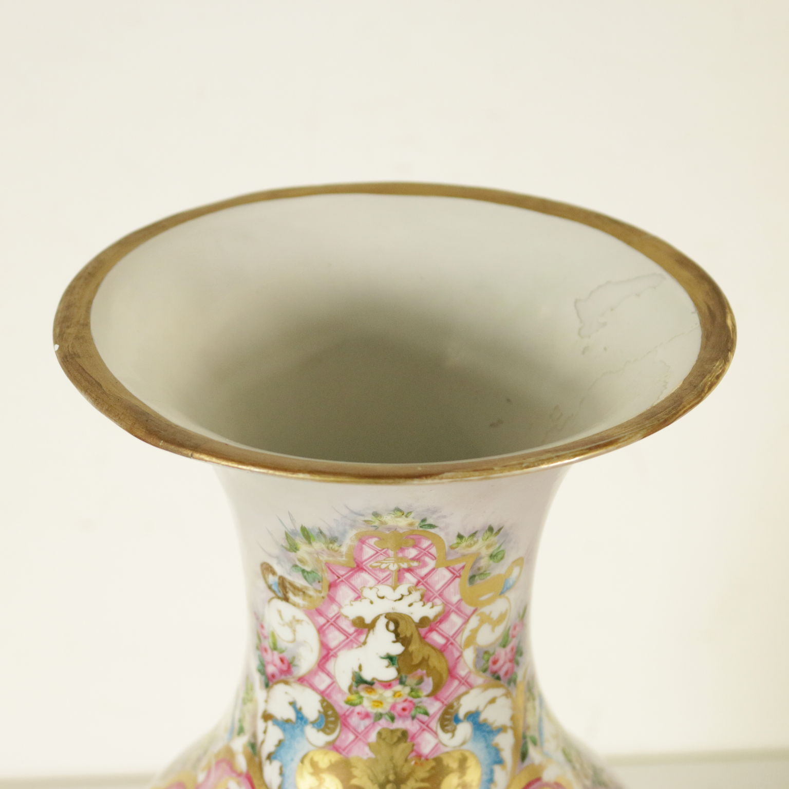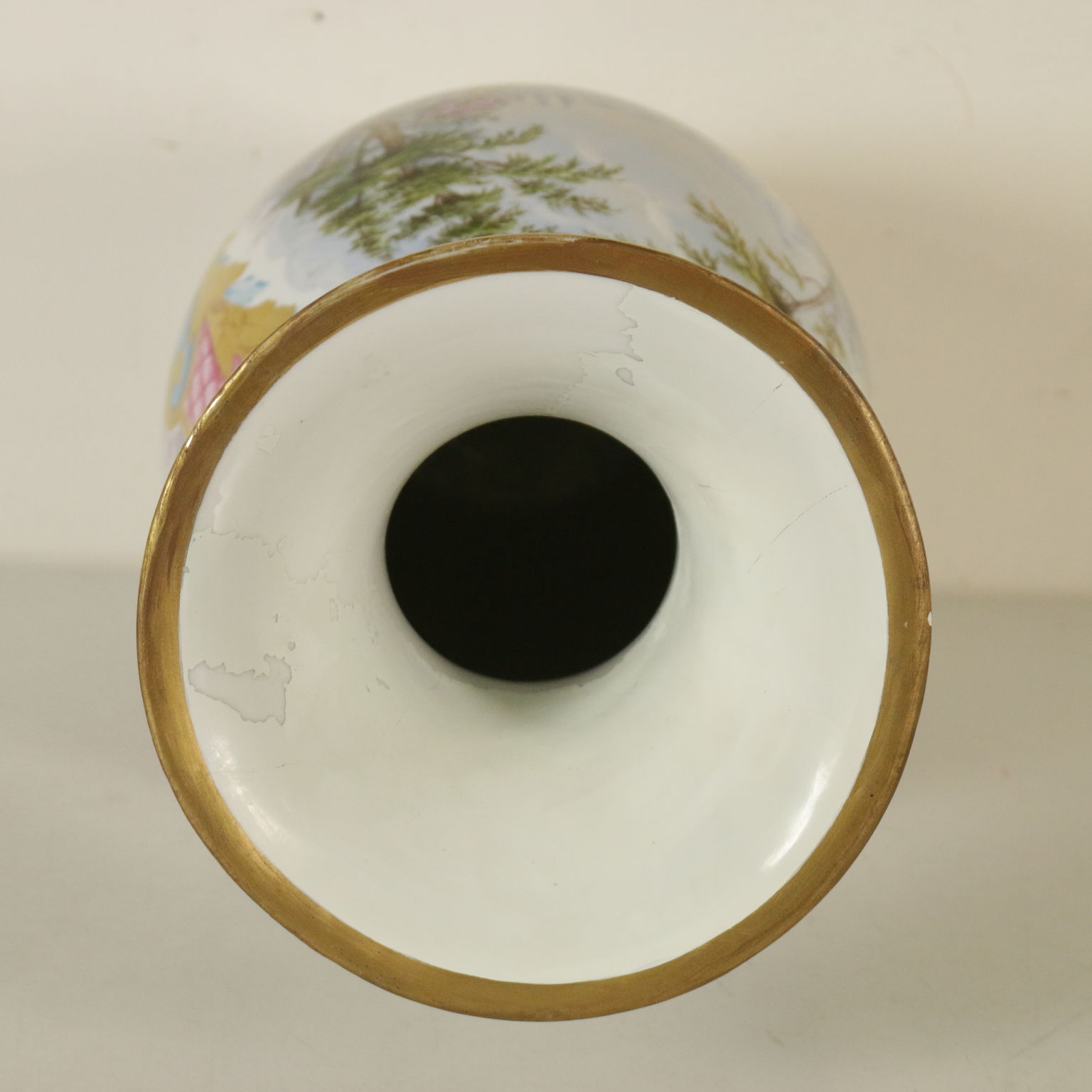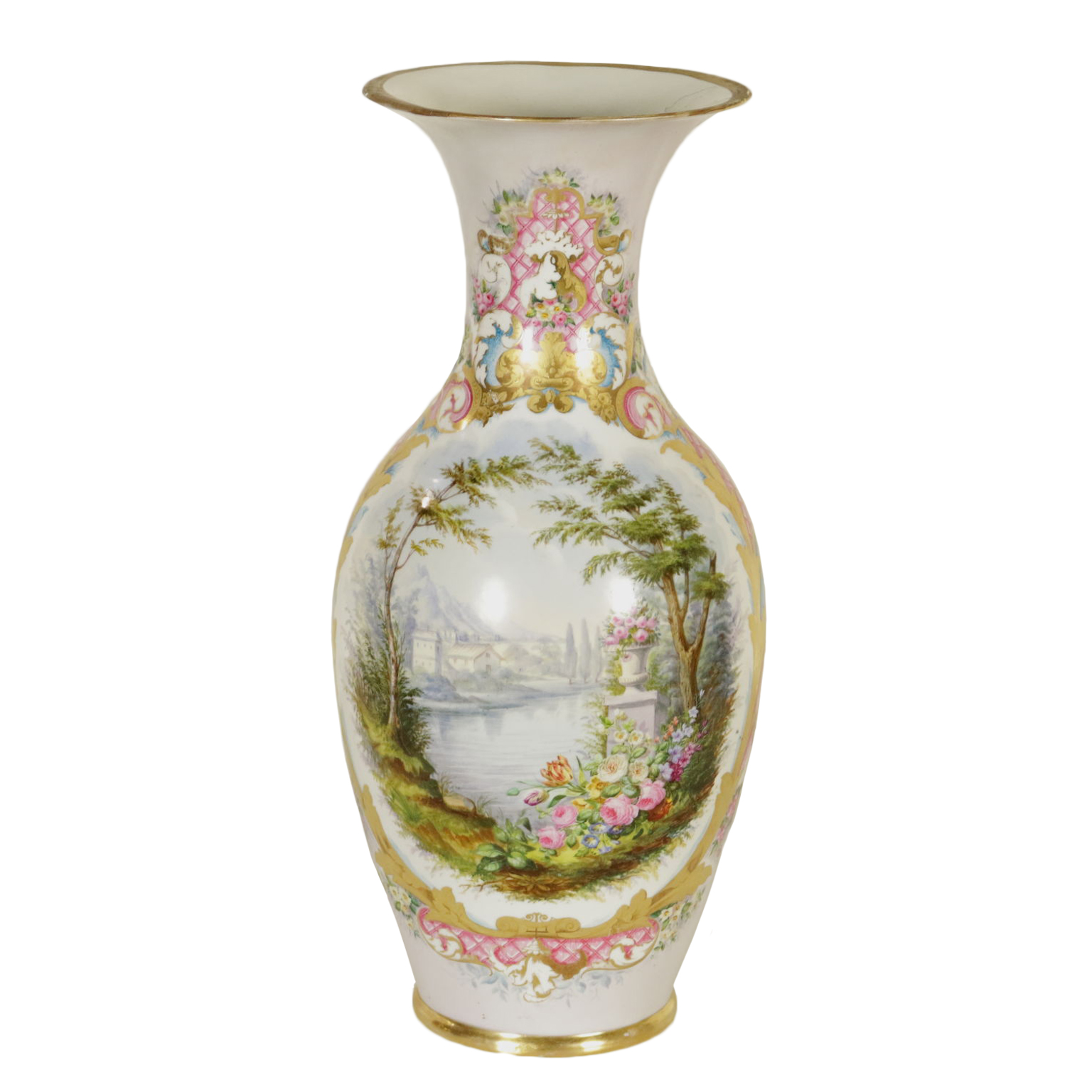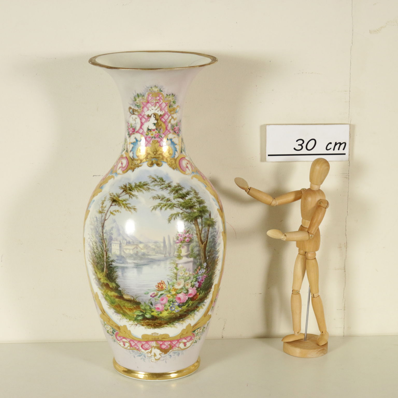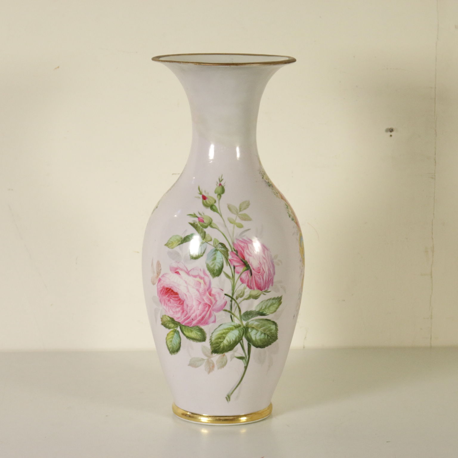 Jarrón de porcelana con decoración de motivos vegetales, en el paisaje de la reserva del lago.