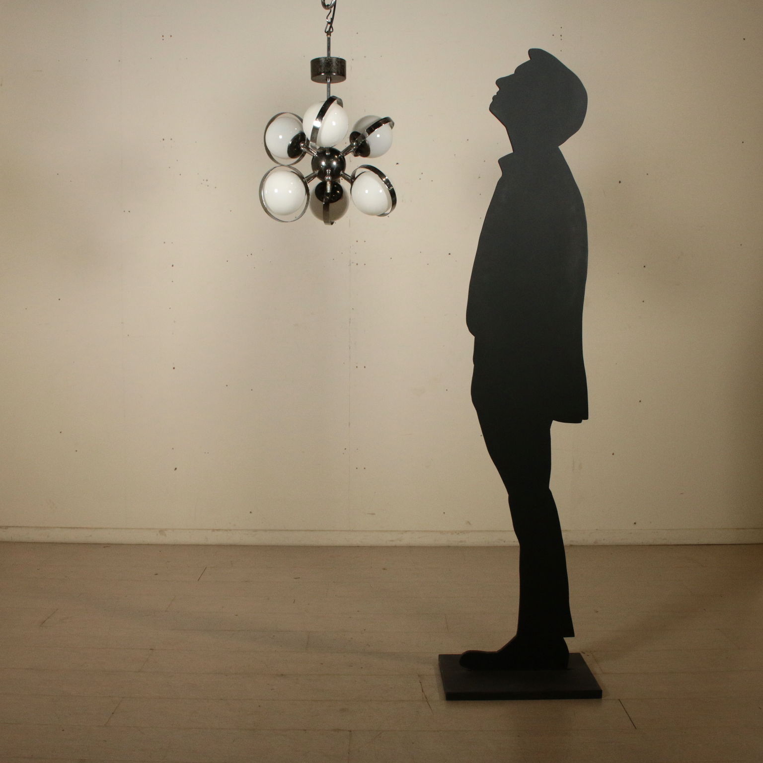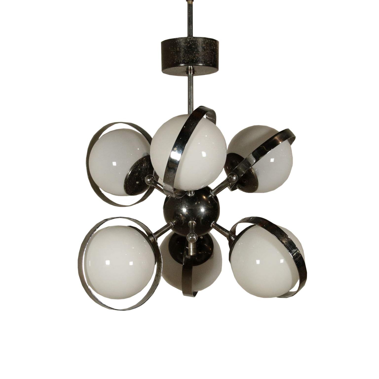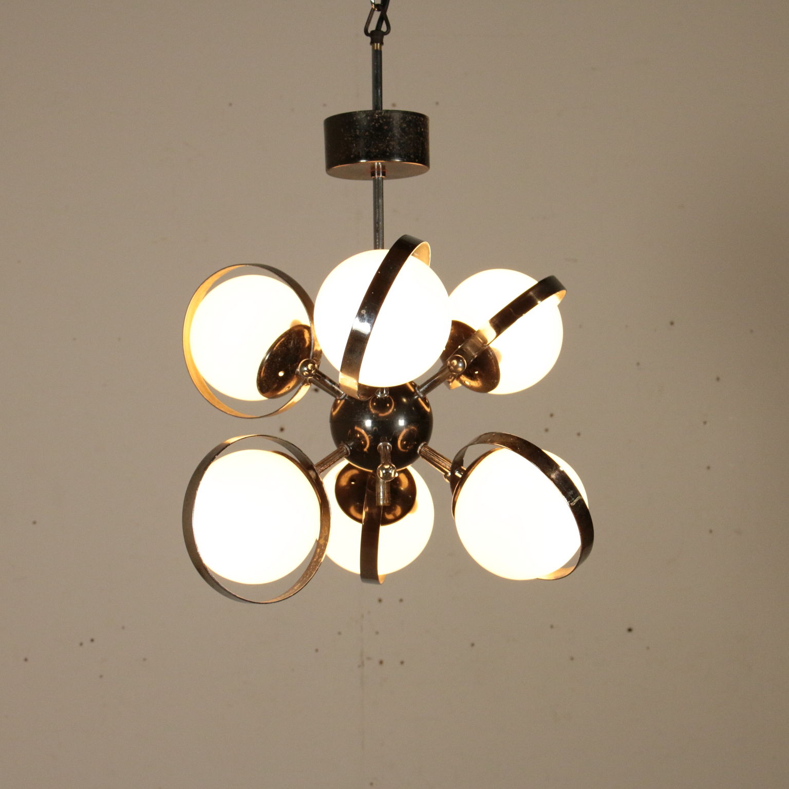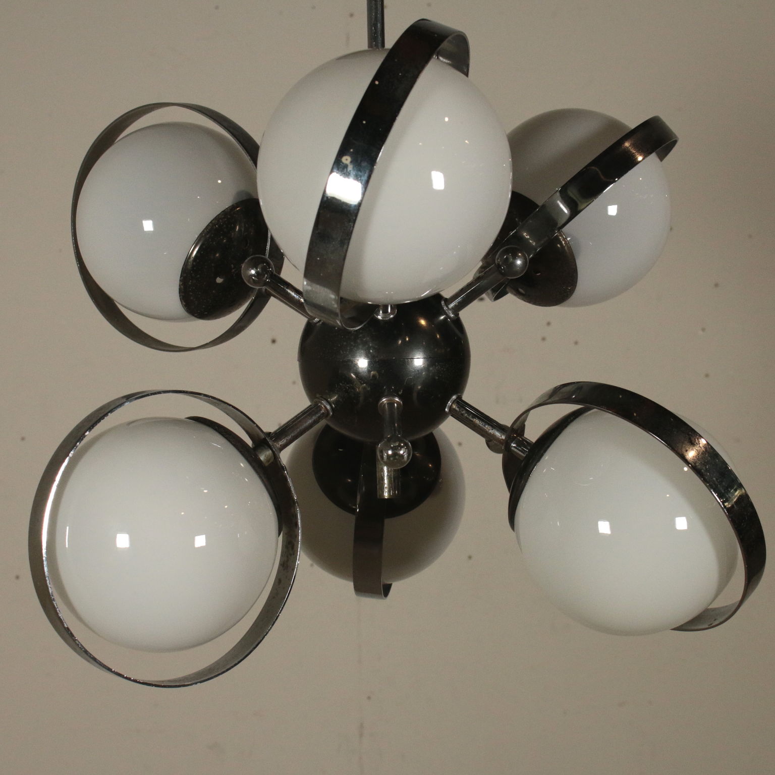 Lámpara de techo, de cromo-revestidos de aluminio y cristal blanco de la leche.
