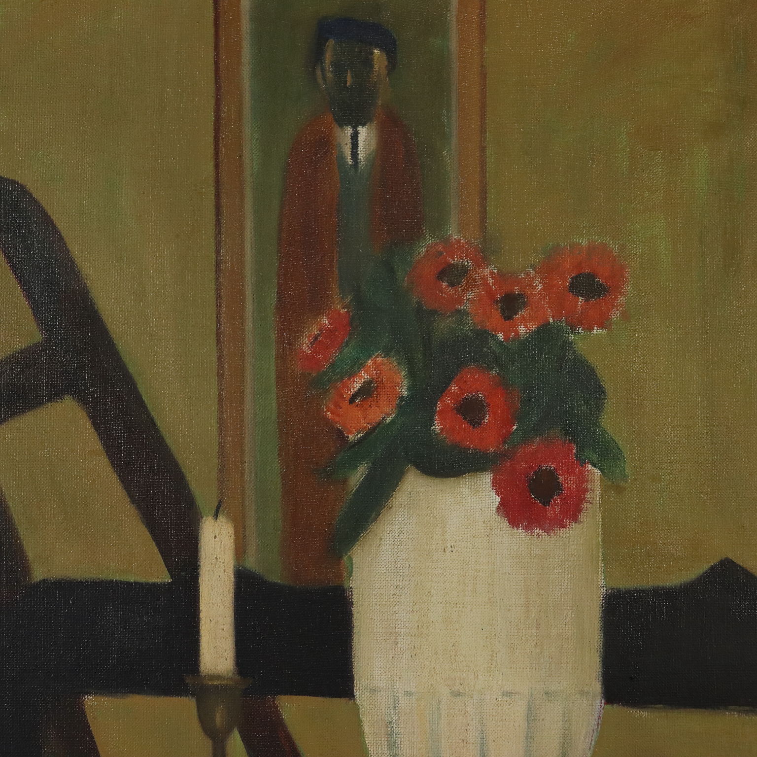 Óleo sobre lienzo. Firmado en la parte inferior derecha. En la parte trasera de la presente título, firma y dirección de la artista, la etiqueta de la galleria d'arte Pescara, en el marco, no es el sello de la exposición de los trabajos en la exposición en el Palazzo Reale de Milán, que se celebró en julio de 1975. El artista, bergamasco fuente, que artísticamente creció primero en Bérgamo y, a continuación, en Milán, ha participado activamente en la vida artística y cultural de la capital de lombardía, con el fin de dar nuevas direcciones y formas de presentación de la cultura. Ha participado en los más importantes eventos artísticos en italia y en el extranjero. El Municipio de Milán, en 1975, se ha dedicado una gran exposición retrospectiva en el Palacio Real en el Salón de las Cariátides (como el sello en la propuesta de trabajo). En su producción artística son característicos de los arlequines y máscaras, pero también hay bodegones, paisajes y su auto-retratos. En esta pintura, la vida es parte de un estudio de la pictórica, como desde el trípode, y la imagen de fondo que está destinado a ser un autorretrato del artista. El trabajo en el marco.