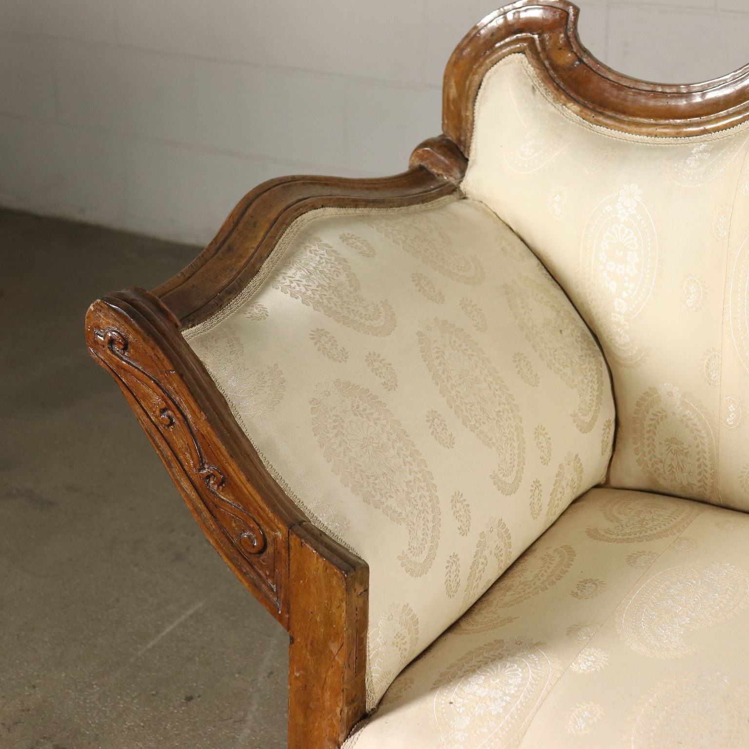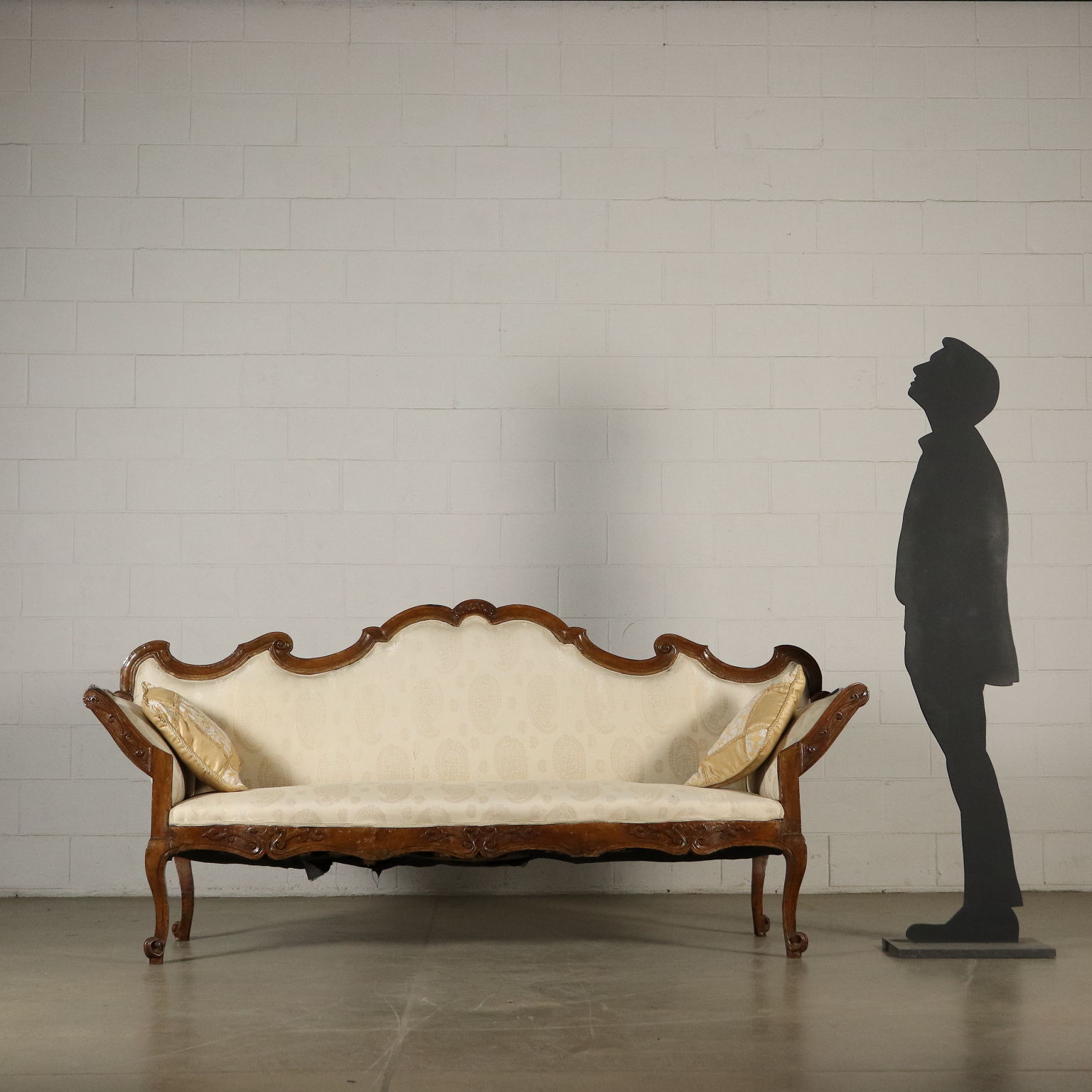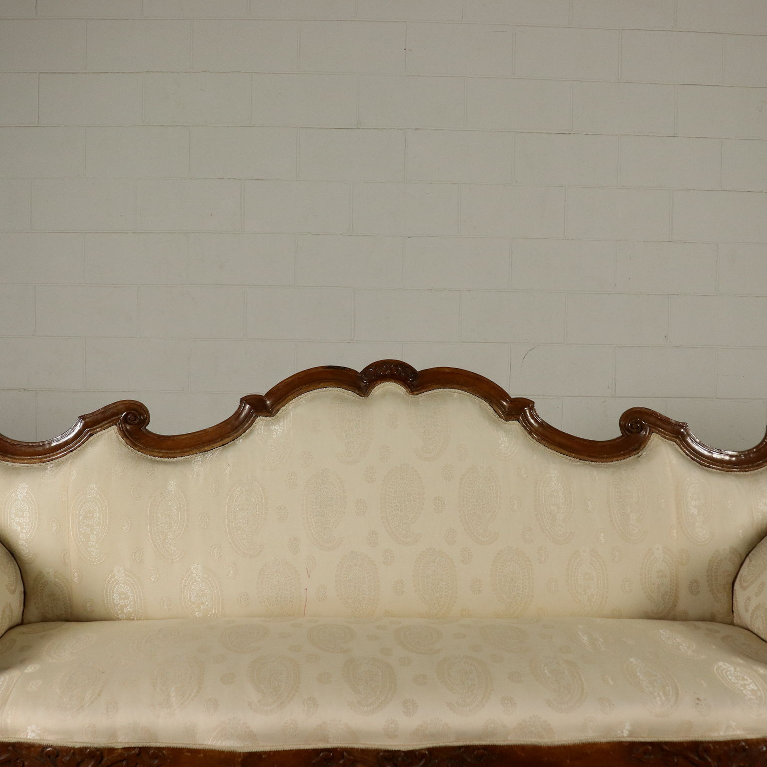 Elegante sofá de tres plazas de la parte delantera se movió. Los apoyabrazos son ligeramente proyectado y respaldo contorno. Acolchado.
