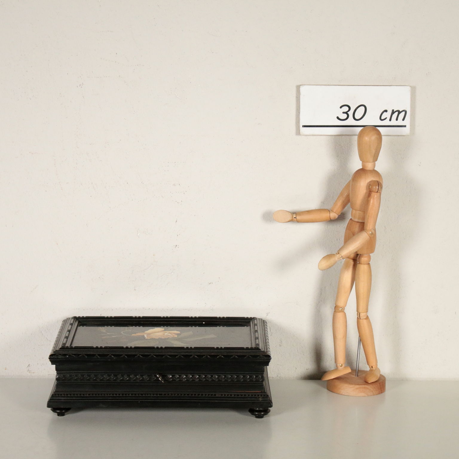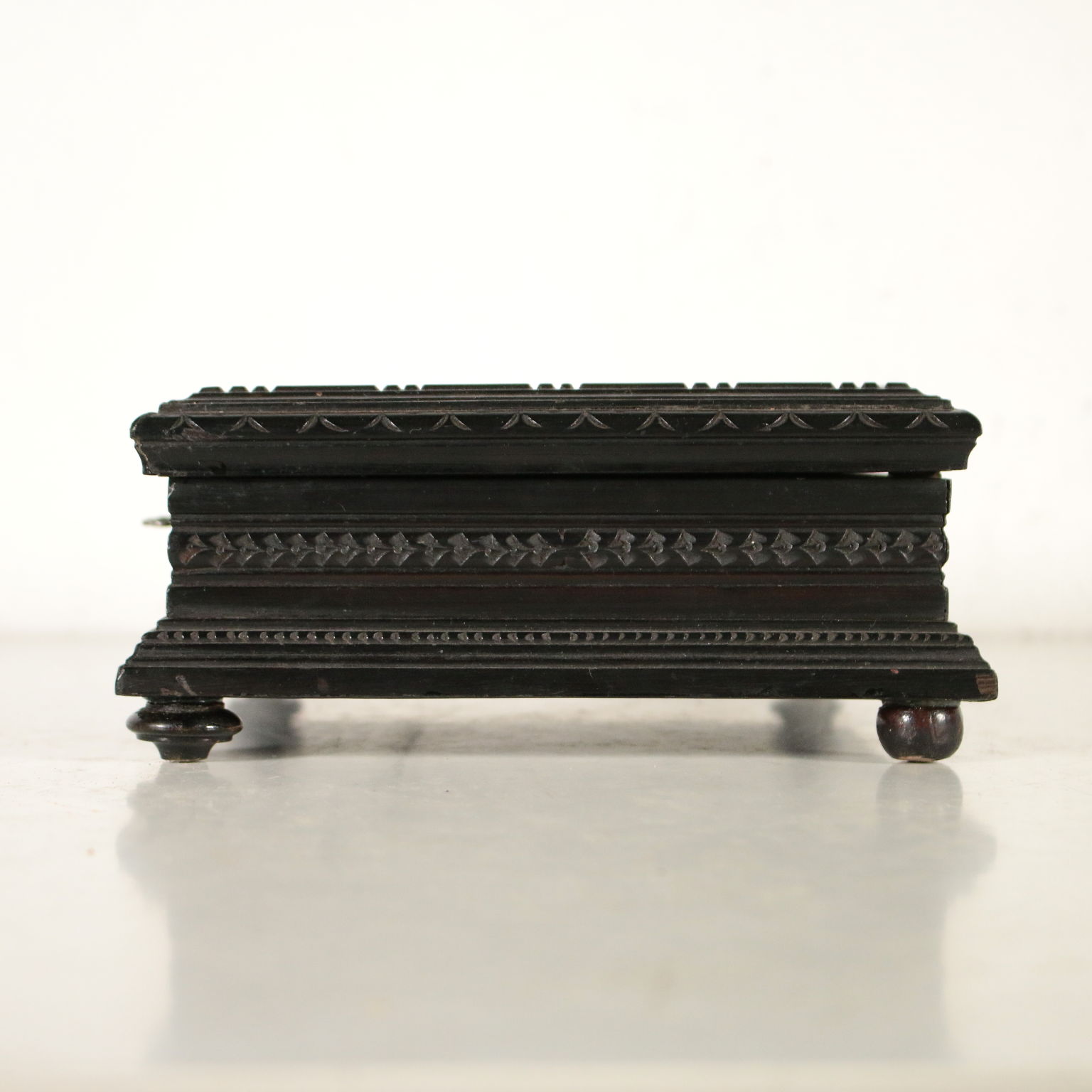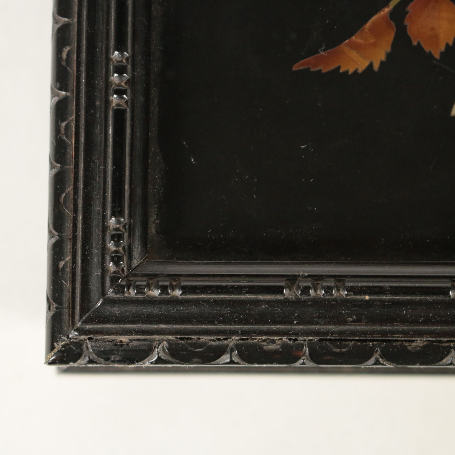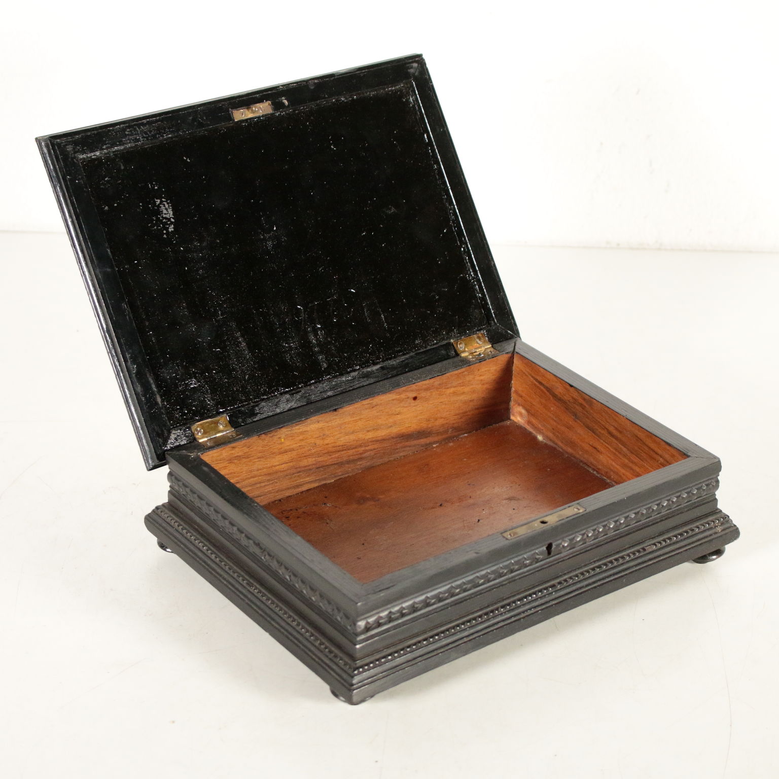 Caja de madera con ebonised decoración y el griego son finamente talladas. Cubrir con la placa de forjado en piedras semi-preciosas, que representan un ramo de rosas.