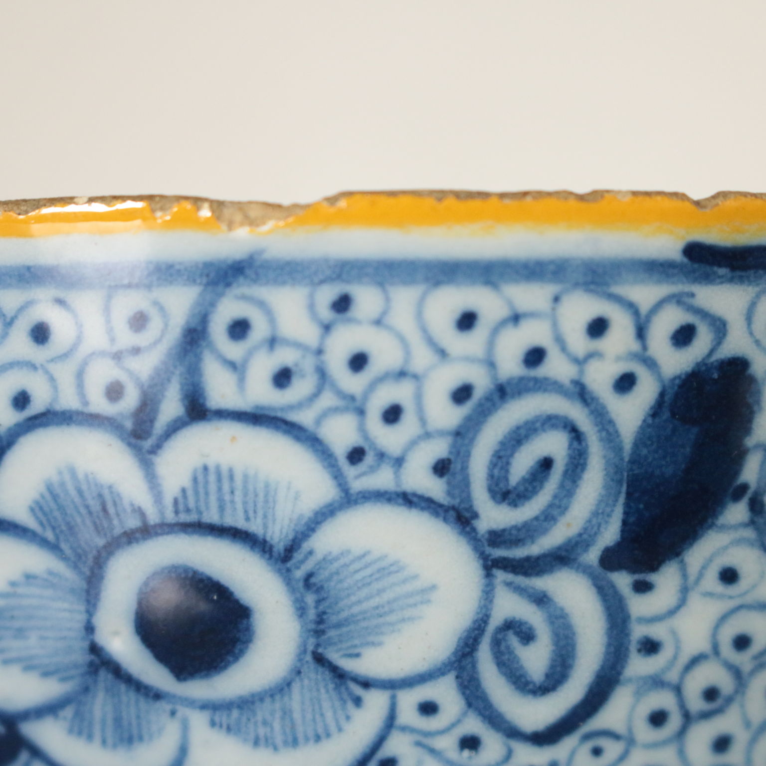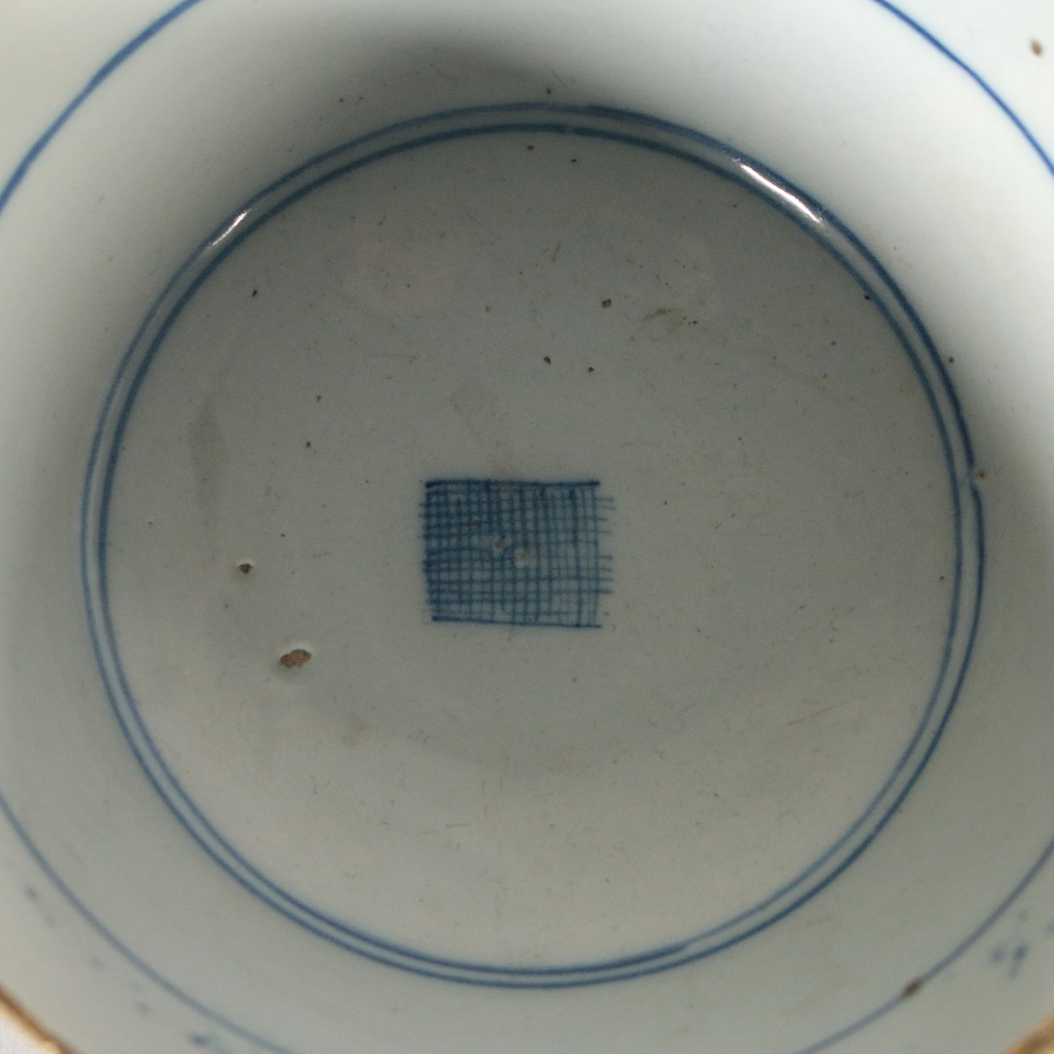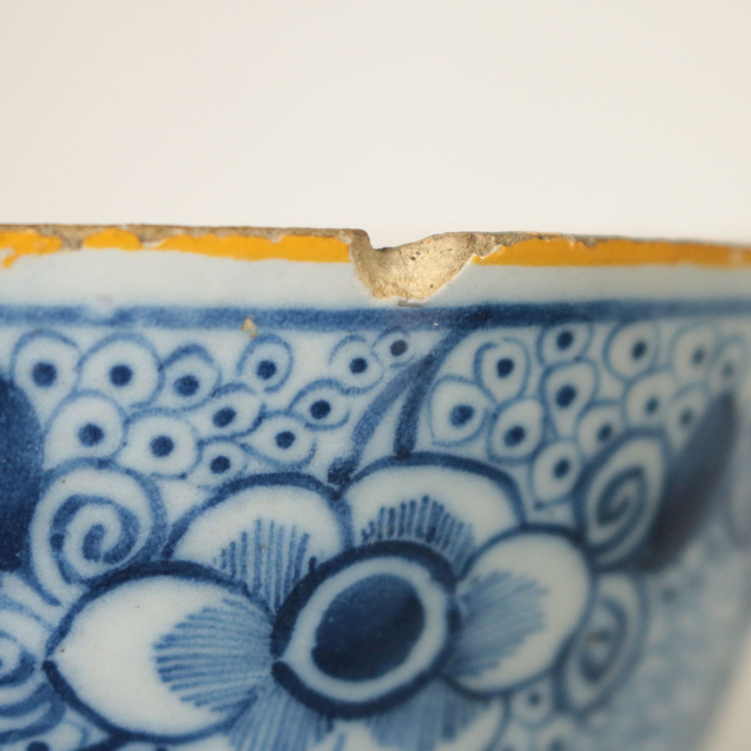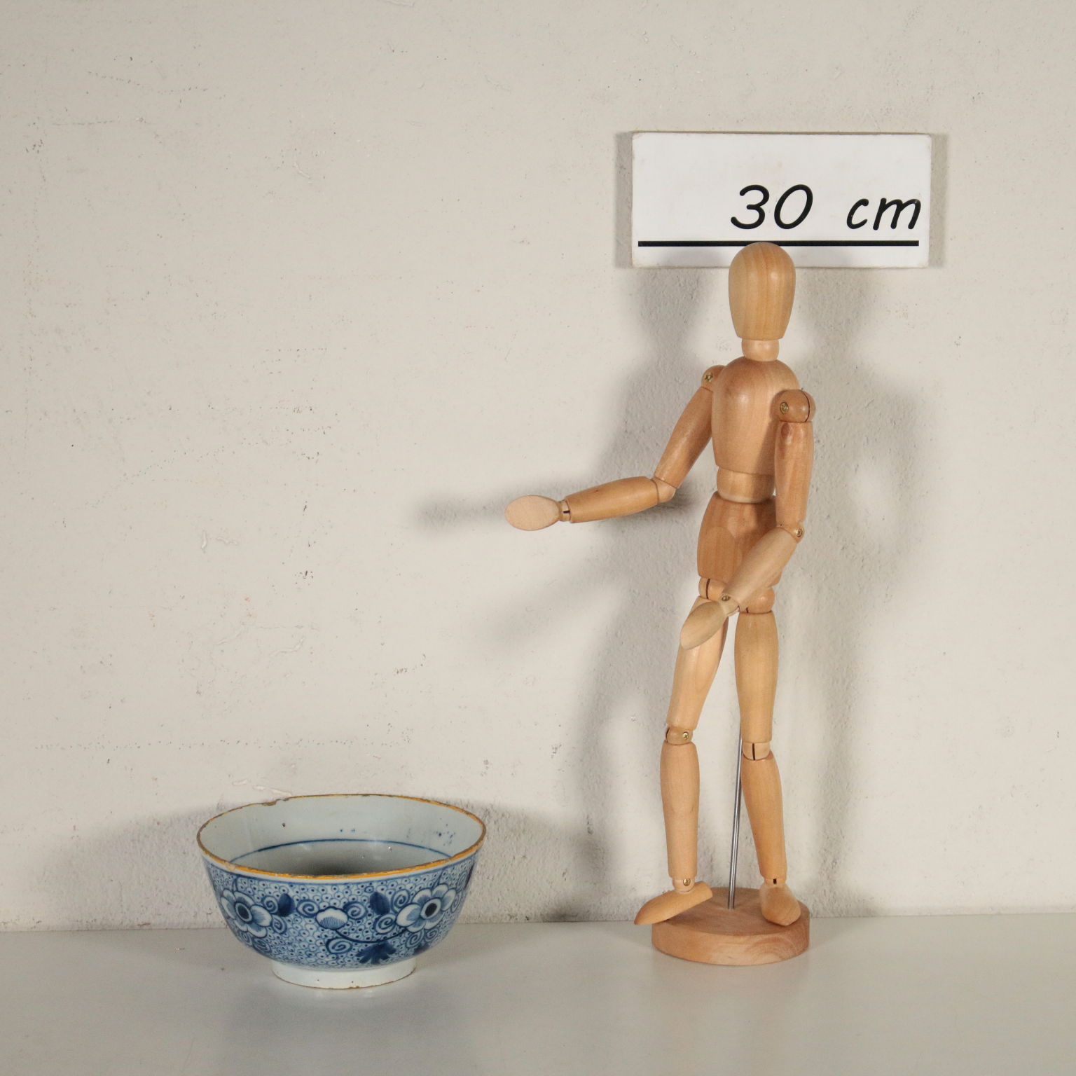 Tazón de cerámica esmaltada con decoración en azul con motivos vegetales. Marca debajo de la base.