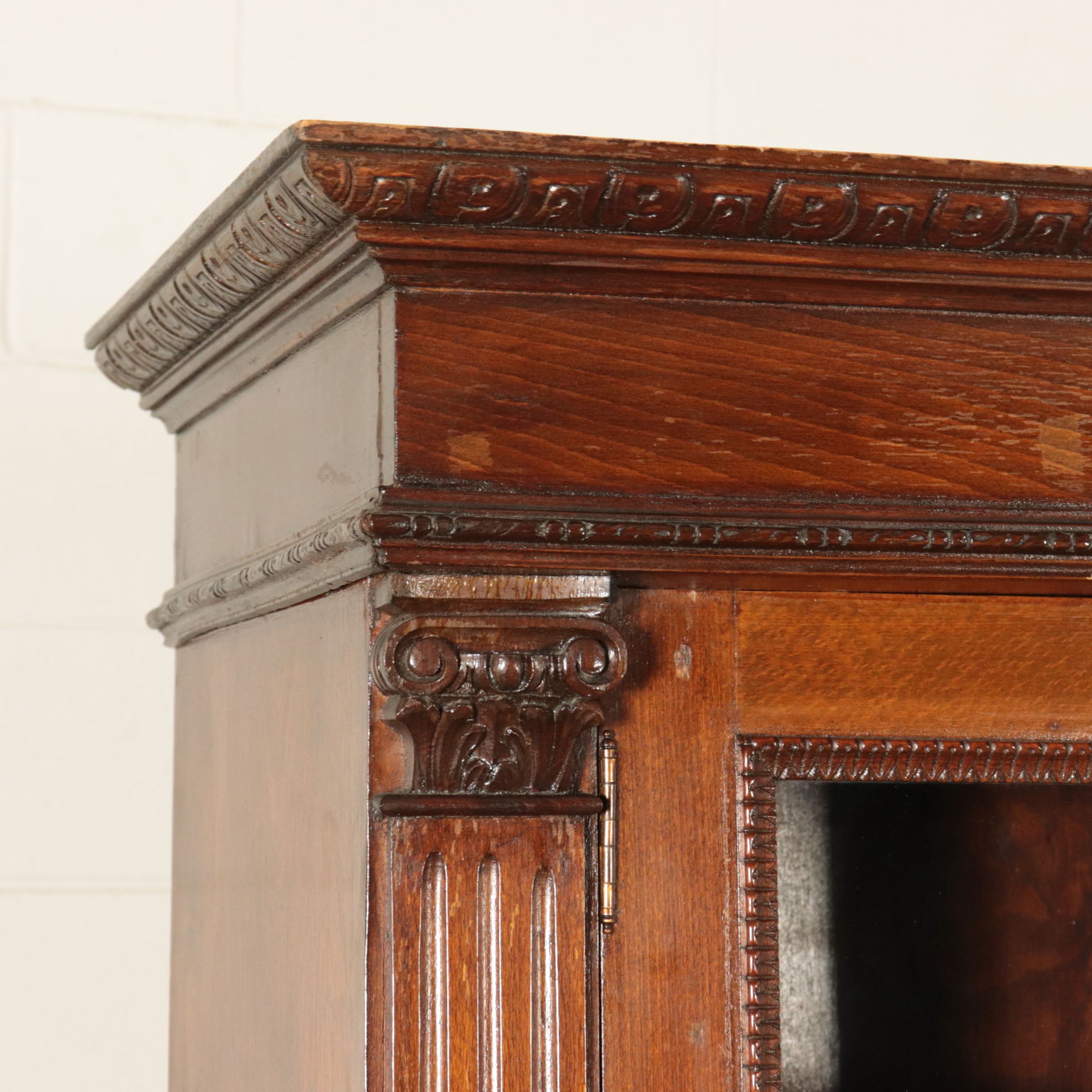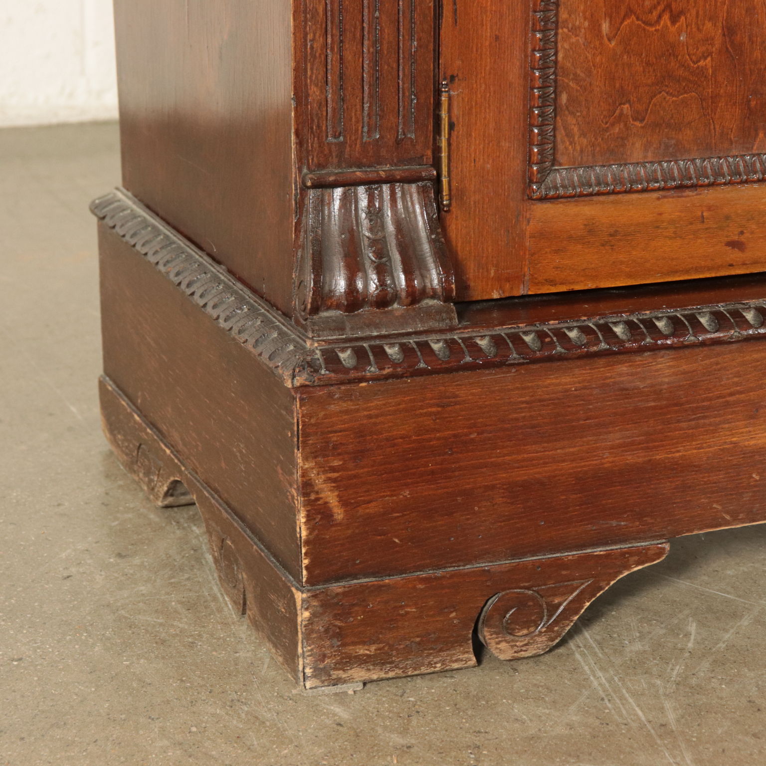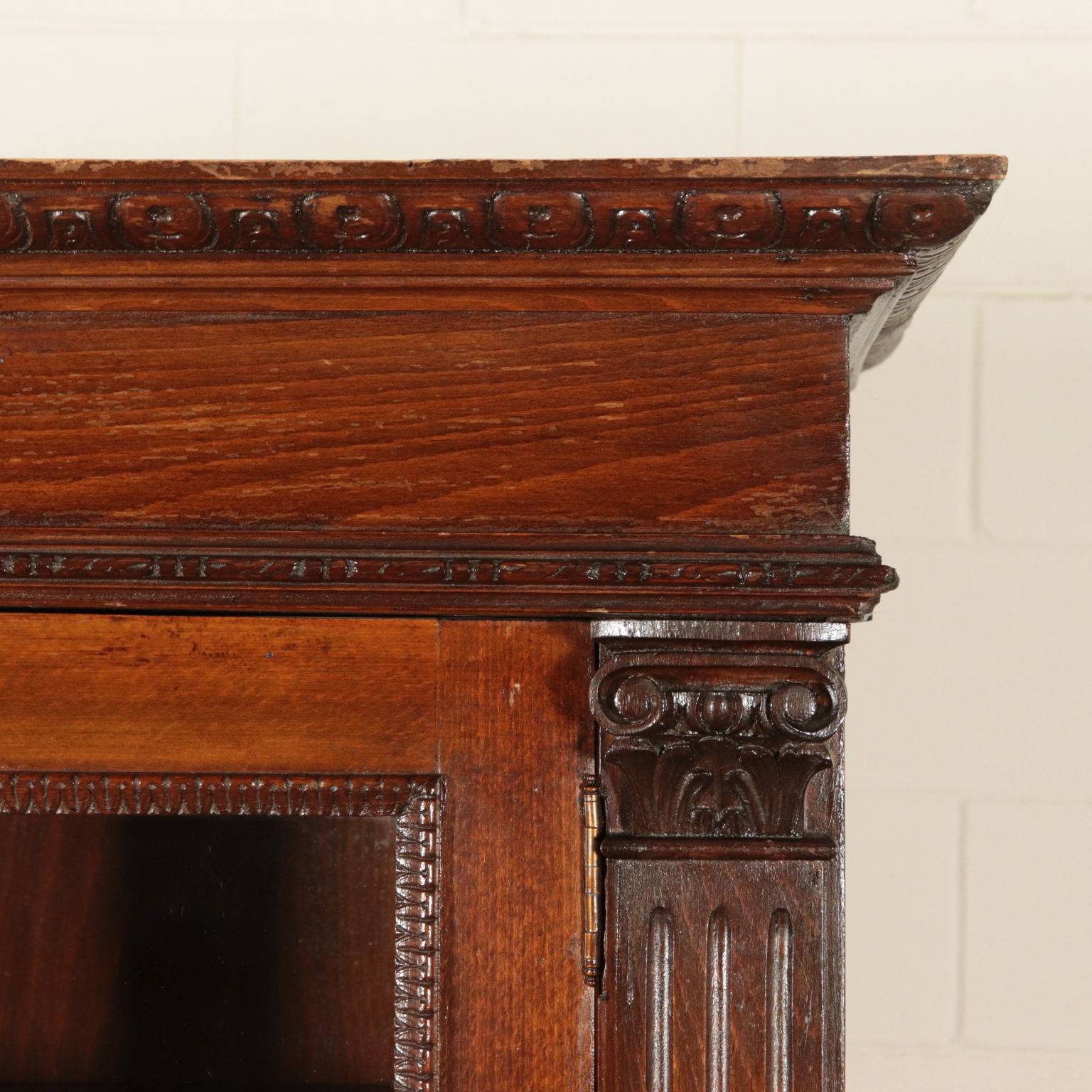 Ventana de puertas de estilo con dos paneles de vidrio, y una rosa en la ventana de la tallada. Puestos rudentati, cornisas y capiteles tallados.