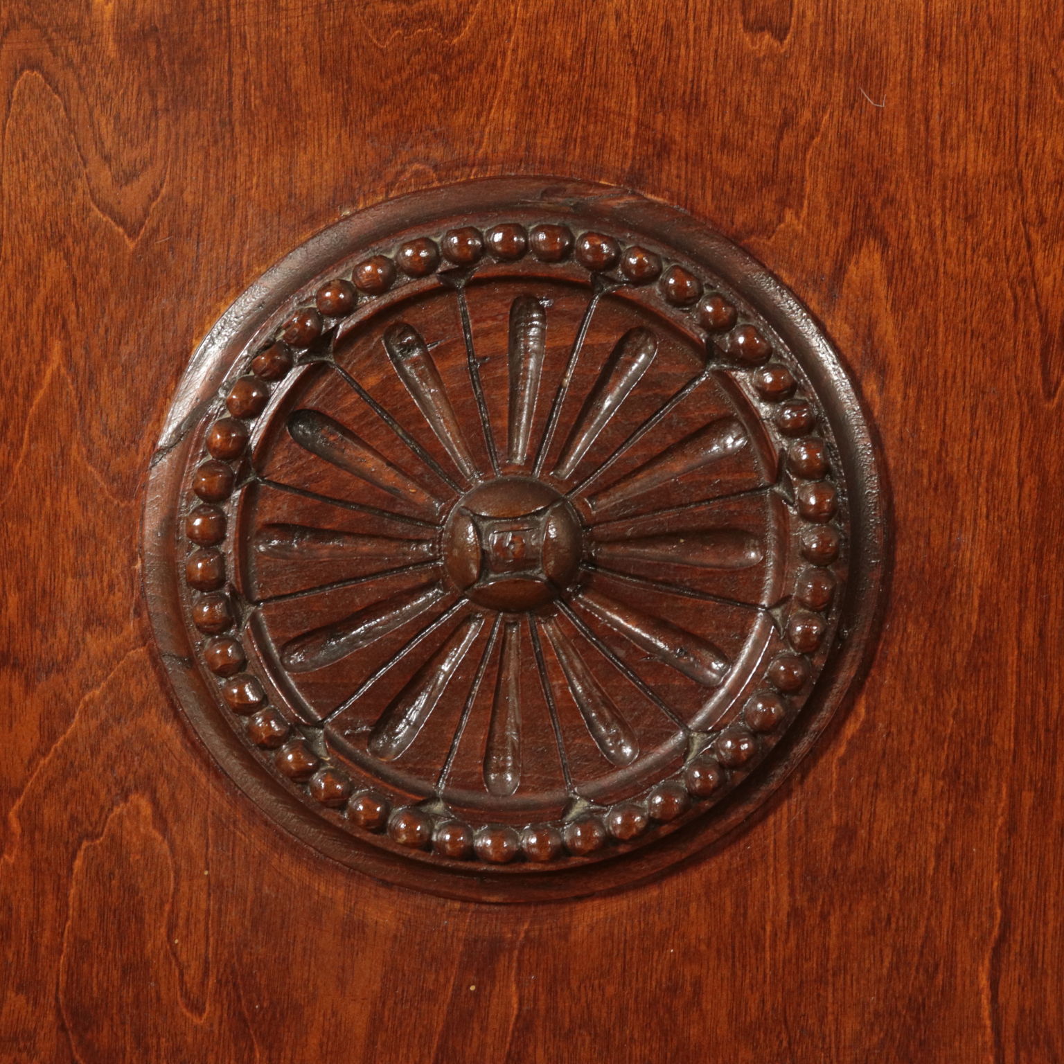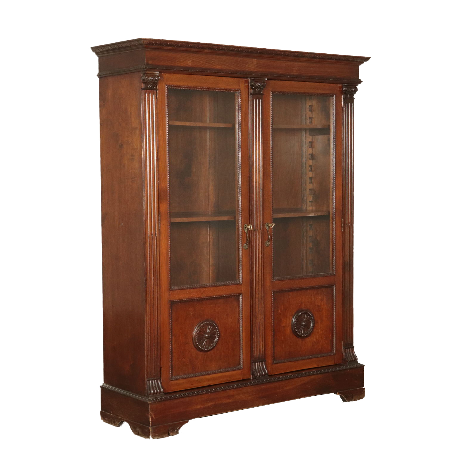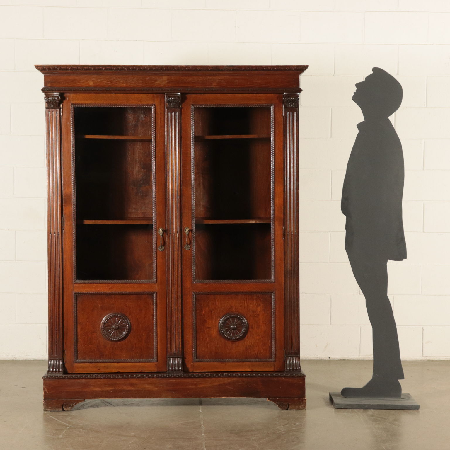 Ventana de puertas de estilo con dos paneles de vidrio, y una rosa en la ventana de la tallada. Puestos rudentati, cornisas y capiteles tallados.