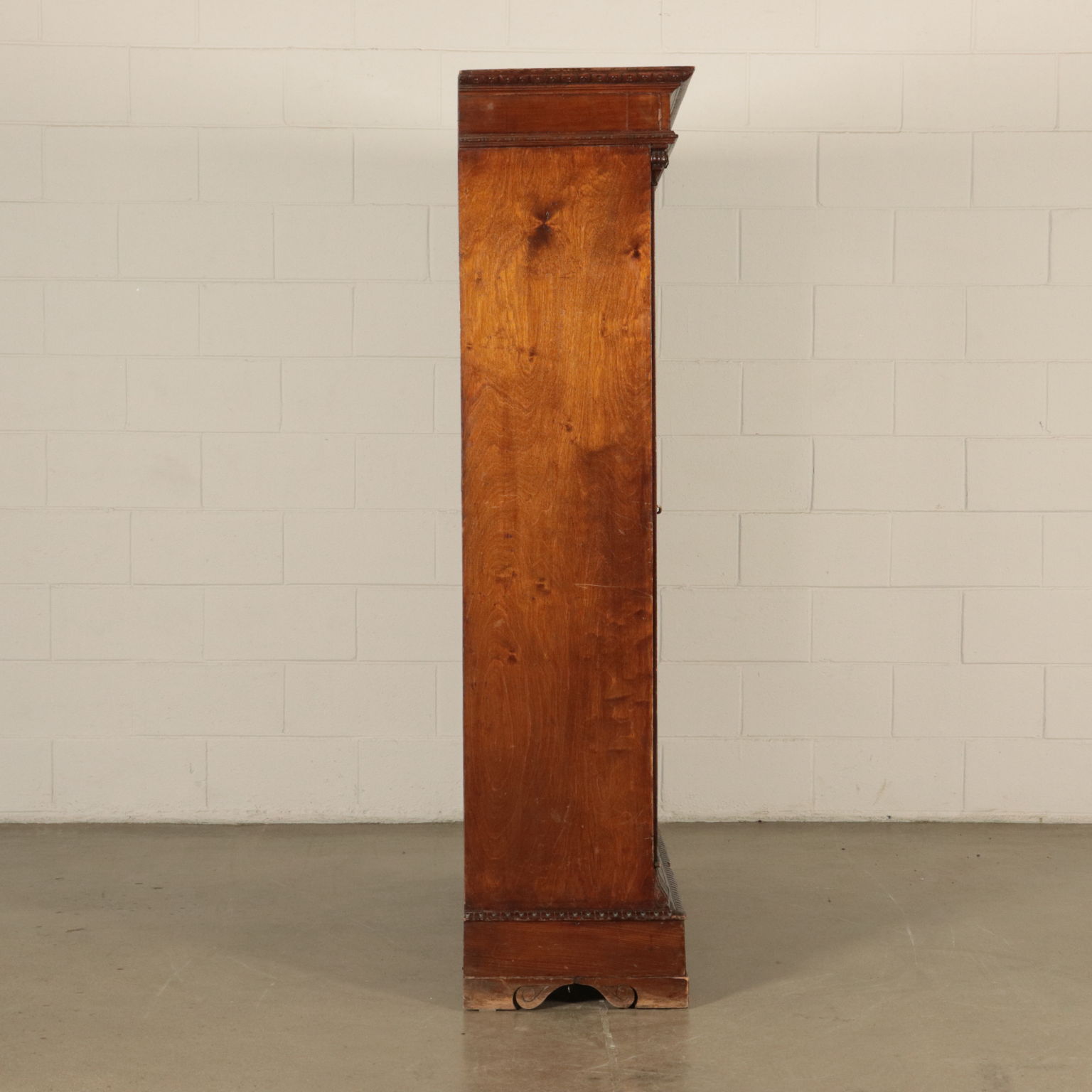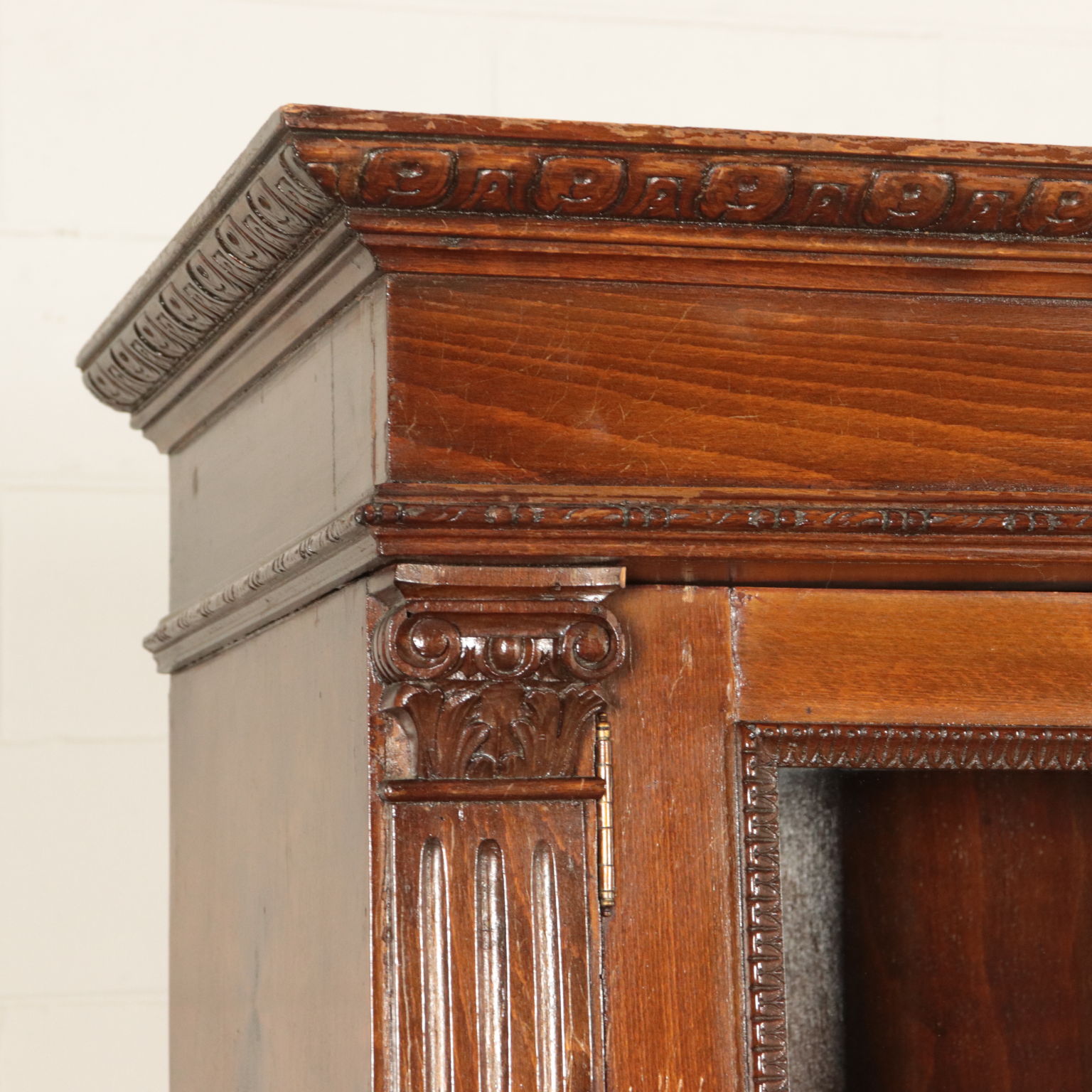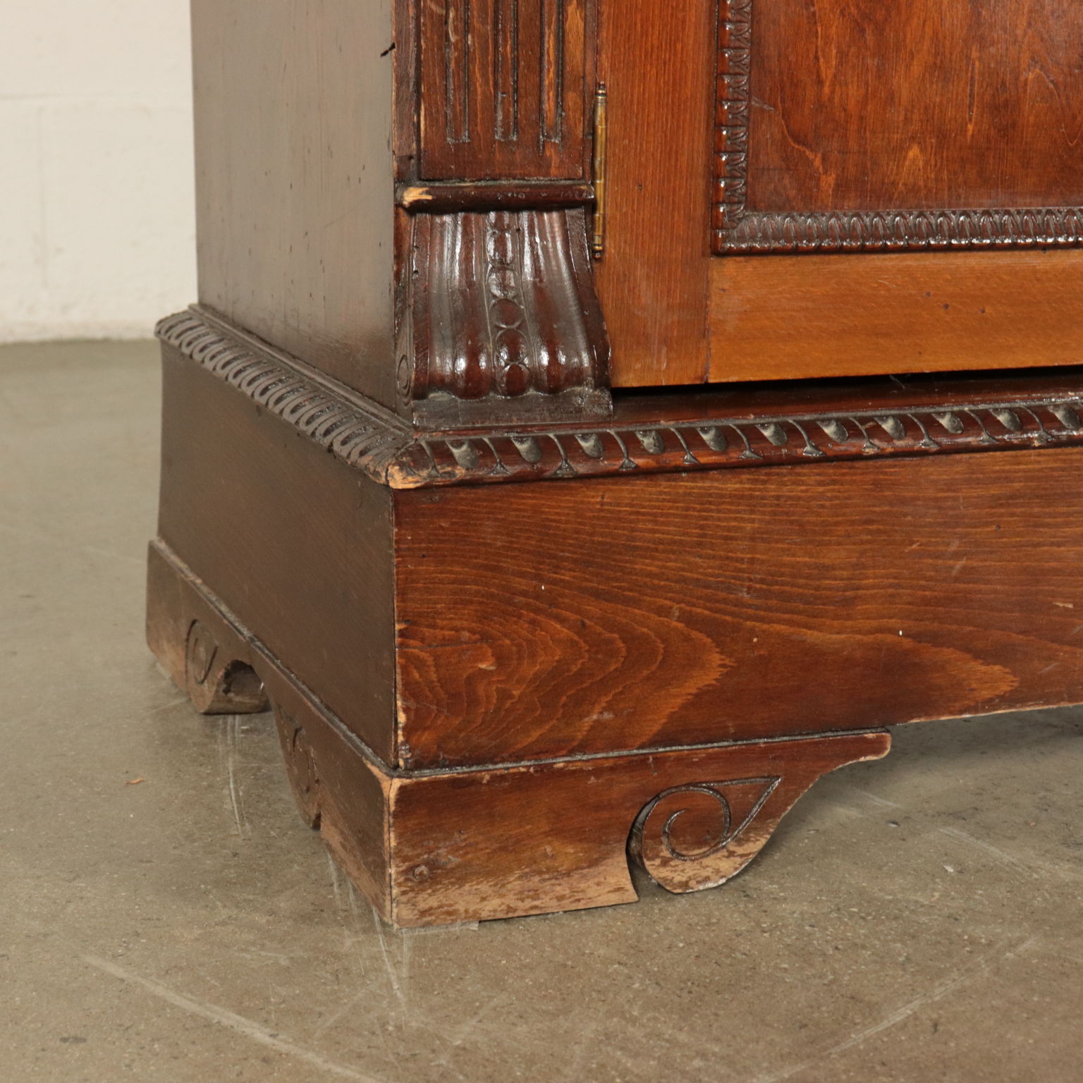 Ventana de puertas de estilo con dos paneles de vidrio, y una rosa en la ventana de la tallada. Puestos rudentati, cornisas y capiteles tallados.